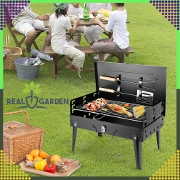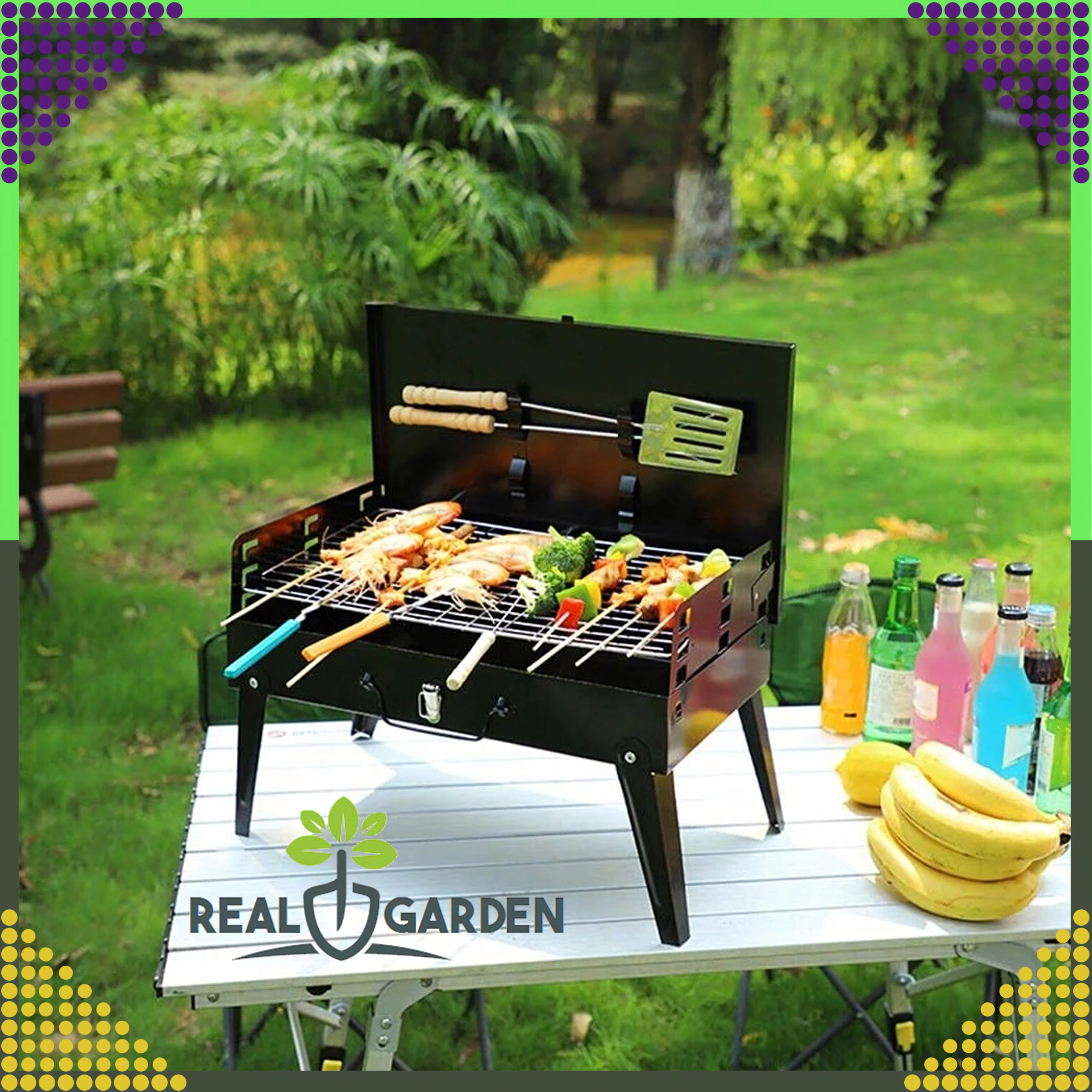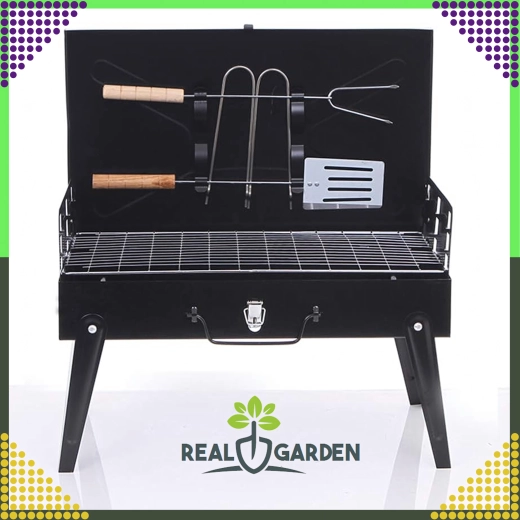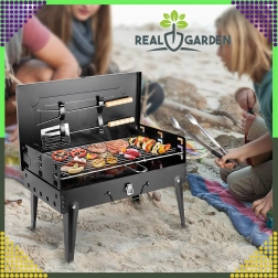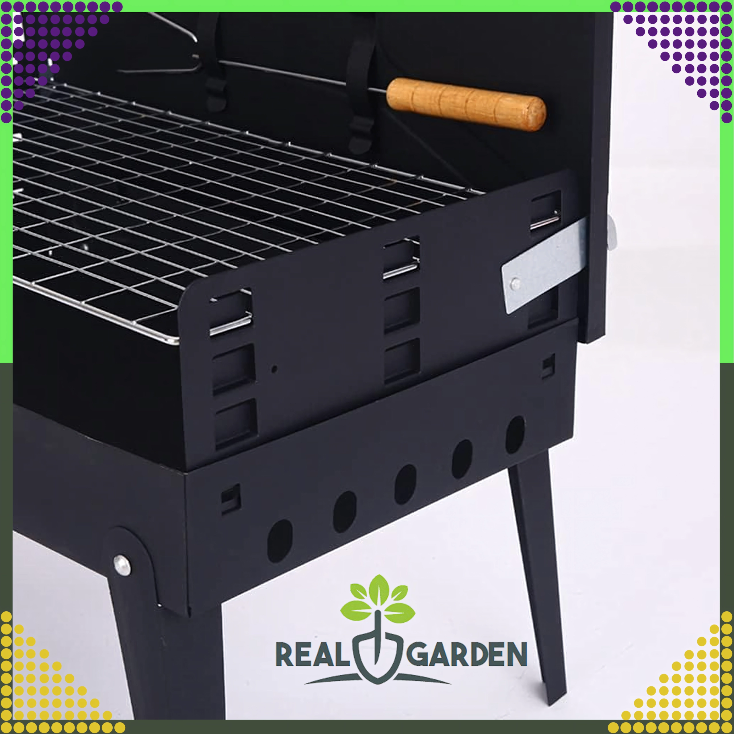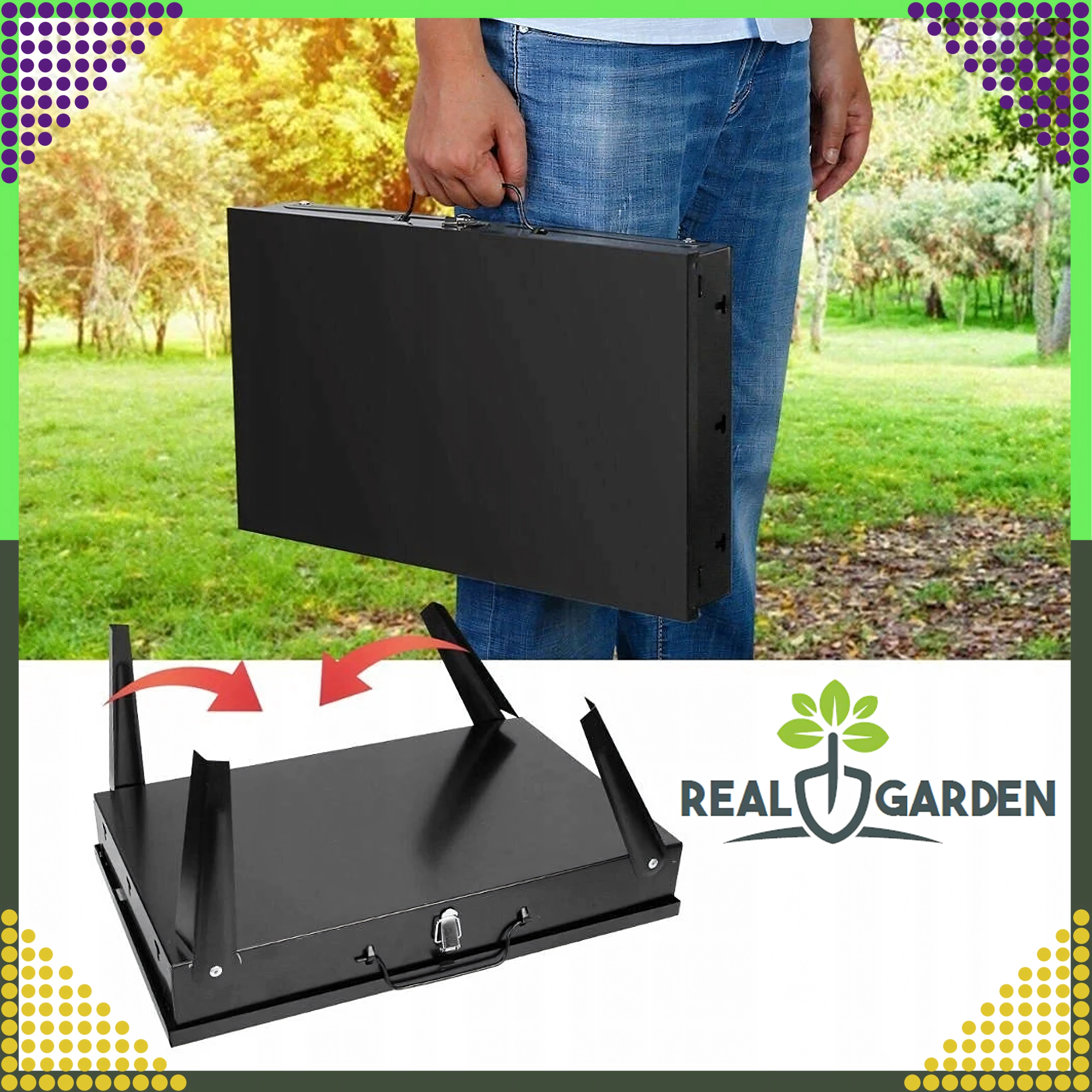 Élvezze a grillezést bárhol ezzel a összecsukható és hordozható faszenes grillsütővel, praktikus bőrönd formájú kivitelben. Gyors összeszerelés szerszámok nélkül, stabil konstrukció és kompakt méretek 44 × 27 × 47 cm – ideális választás kempinghez, kertbe és piknikre. A csomag része a rost és az alap grillszerszám-készlet (lapát, fogó, nyárs). A szellőzőnyílások hatékonyabb égést és gyorsabb ételkészítést biztosítanak.