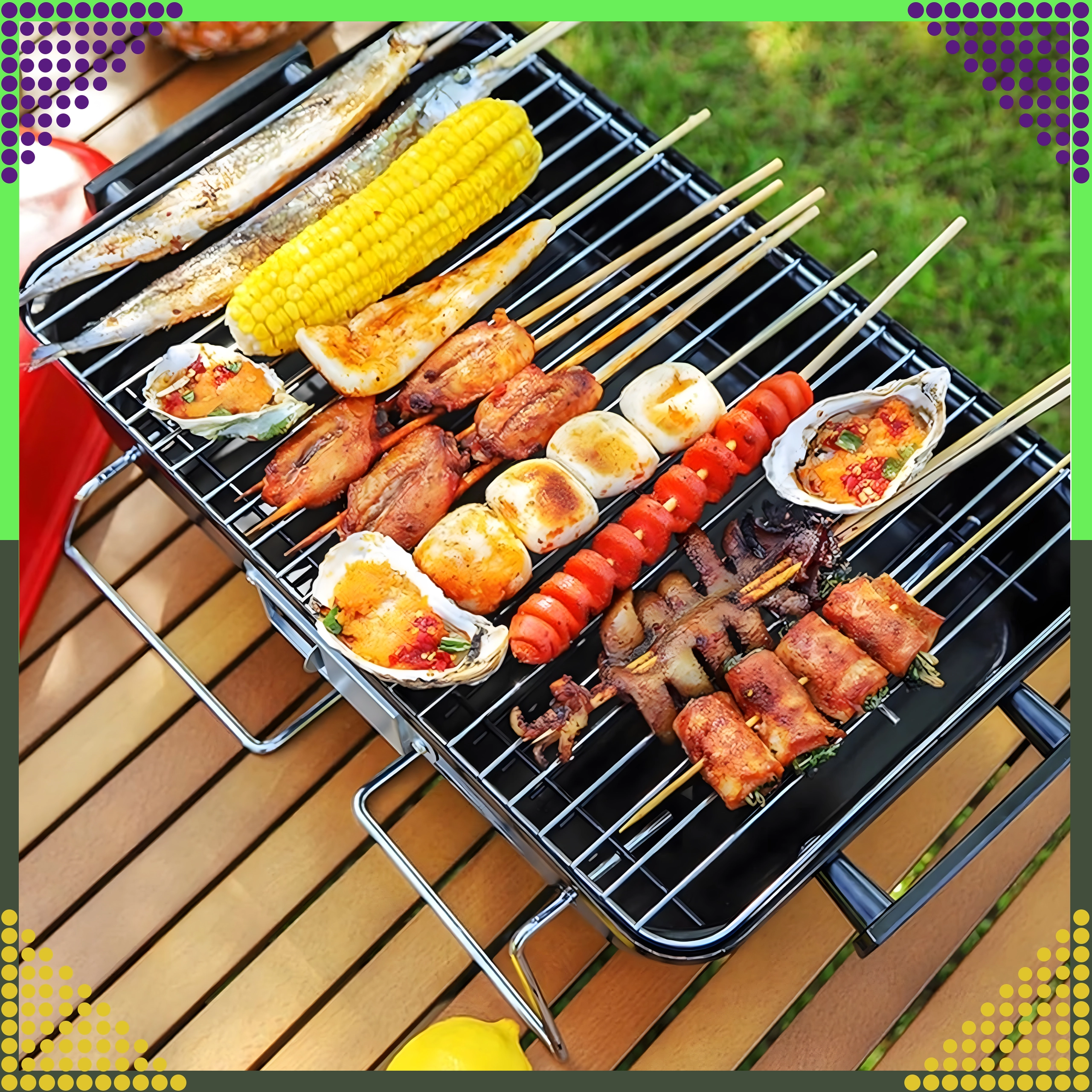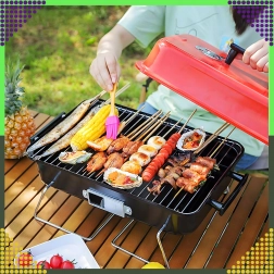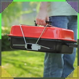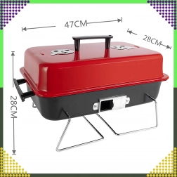 A kompakt, fedeles asztali faszenes grill ideális kempingezéshez, piknikhez, strandra és kertbe. A összecsukható lábaknak és a fedélzárnak köszönhetően könnyen hordozható, elfér az autó csomagtartójában, és kényelmes hőszabályozást kínál a szellőzőnyílások segítségével. A krómozott rács egyenletes grillezést biztosít, a 43 × 28 × 26 cm-es kompakt méretek pedig megkönnyítik a tárolást.