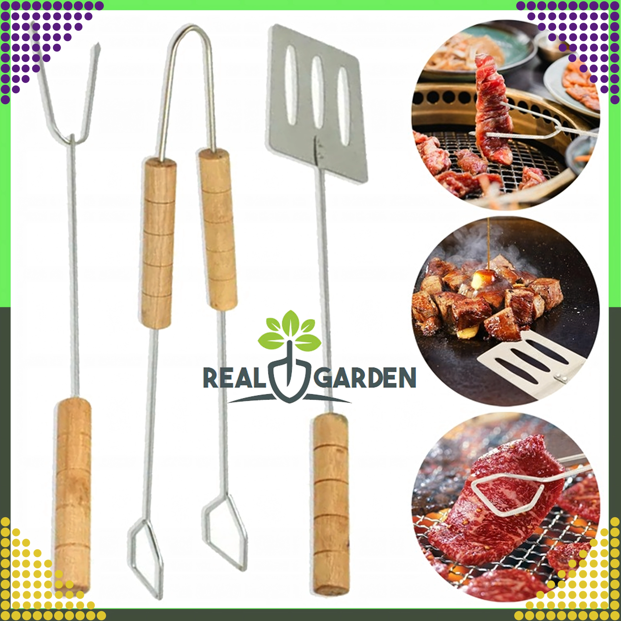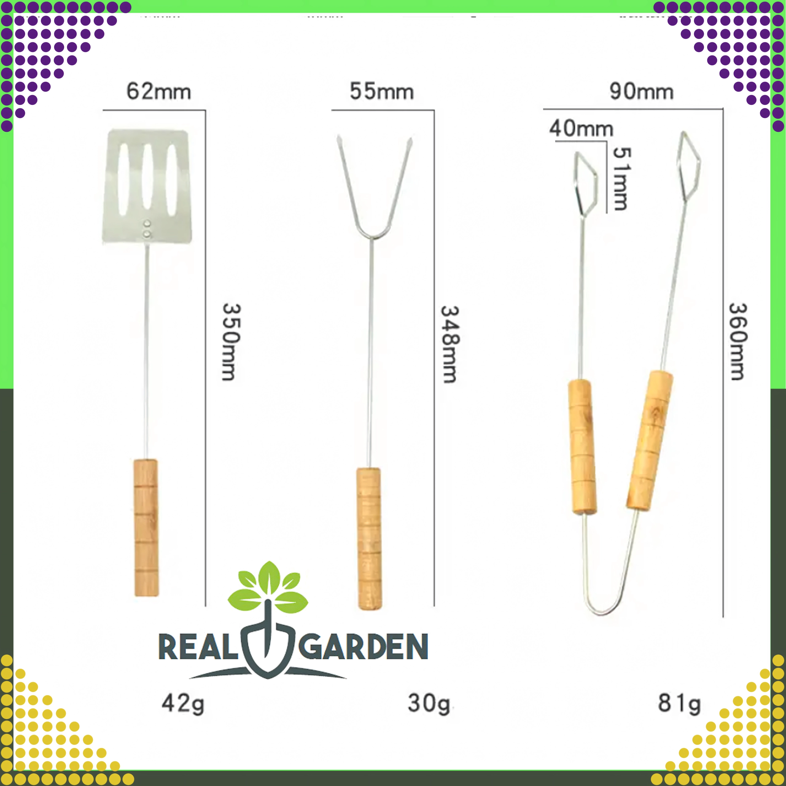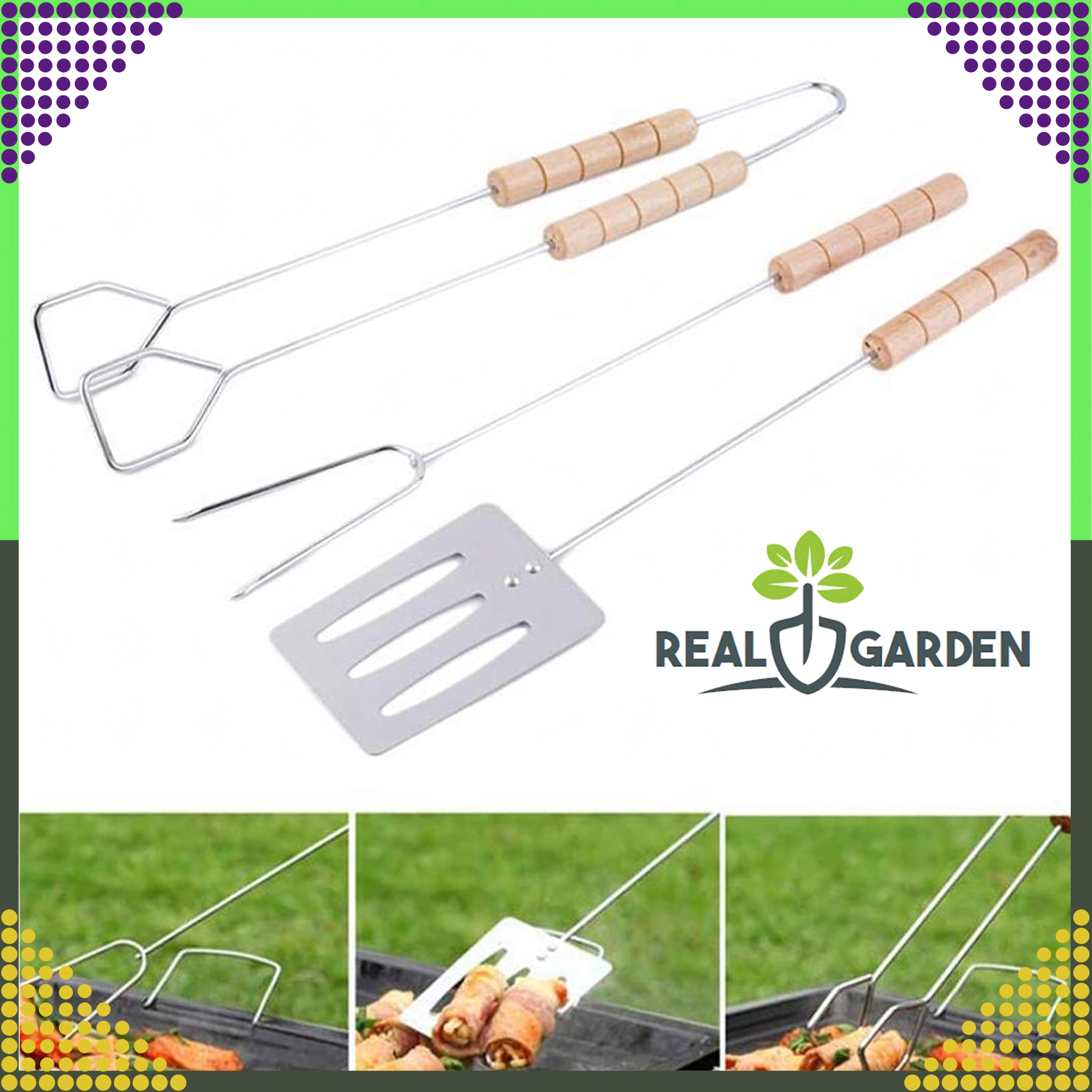 A praktikus 3 az 1-ben grillező eszközkészlet örömmé tesz minden grillezést. Tartalmaz fogót, lapátot és villát rozsdamentes acélból, kényelmes fa nyéllel a biztos fogásért és a biztonságos kezelésért hús és zöldség készítésekor.