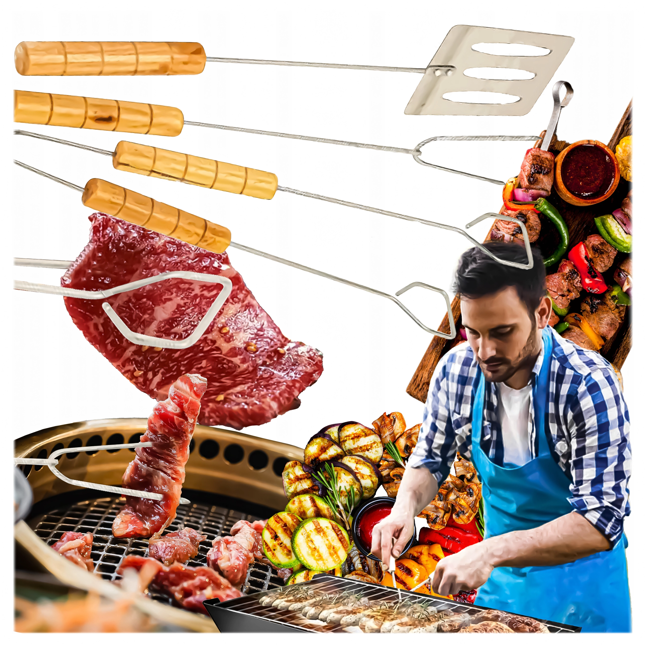 Ez az univerzális szett ideális minden grillkedvelő számára. A minőségi rozsdamentes acél tartósságot és könnyű karbantartást biztosít, míg az ergonomikusan formázott fa nyél kényelmet nyújt hosszabb használat során is. Készíts hamburgert, nyársat vagy zöldséget profi módon – könnyedén és magabiztosan.
