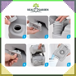 Praktikus, hordozható, öblíthető toalett kempingezéshez, nyaralóba, kertbe és utazáshoz. A 10 l-es víztartály és a 20 l-es szennyvíztartály révén kényelmet és higiéniát biztosít bármilyen körülmények között.