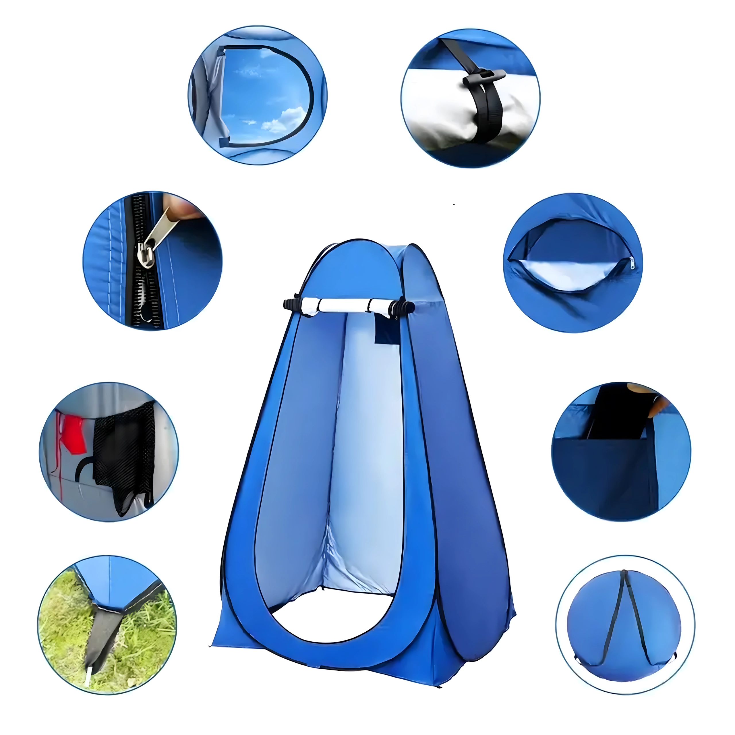 Gyors, automatikus felállításának köszönhetően pár másodperc alatt kész, használat után pedig könnyen összehajtható lapos táskába. A belső zseb és az akasztószíj/horog ideális a tisztálkodási eszközöknek, törölközőnek vagy zuhanytasaknak.
