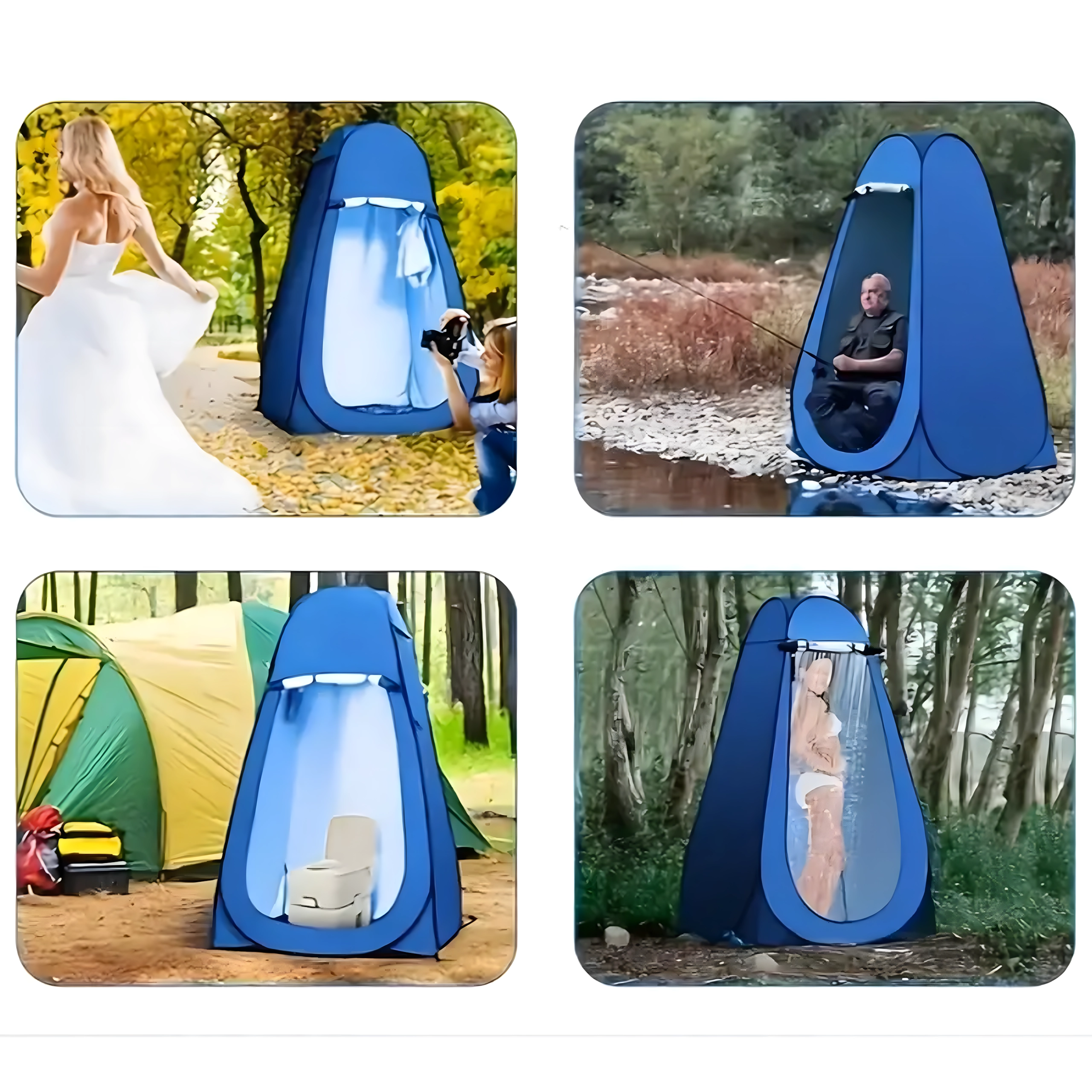 Magas, zárható kabin, amely diszkrét hátteret biztosít átöltözéshez, zuhanyzáshoz vagy hordozható WC használatához még forgalmas helyeken is.