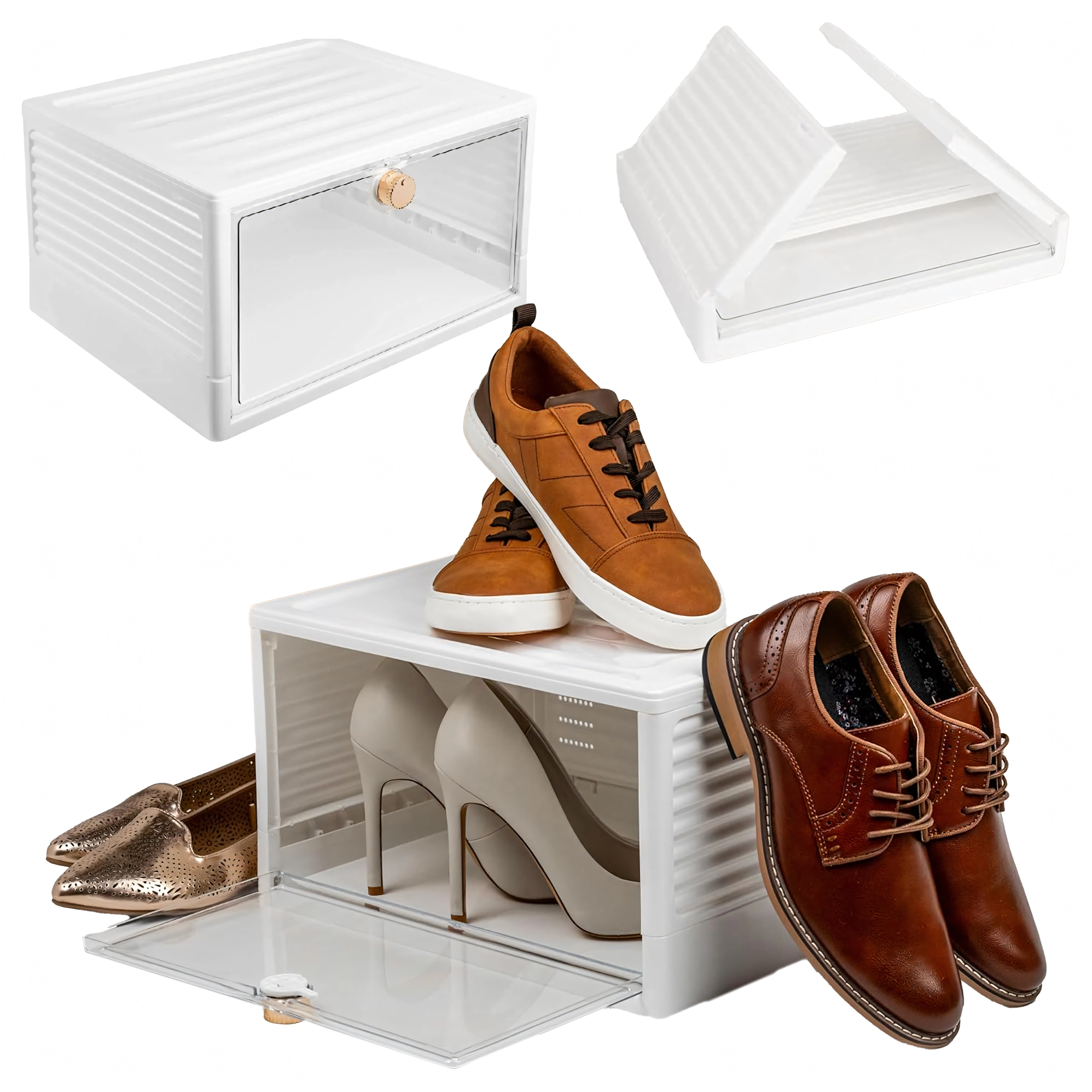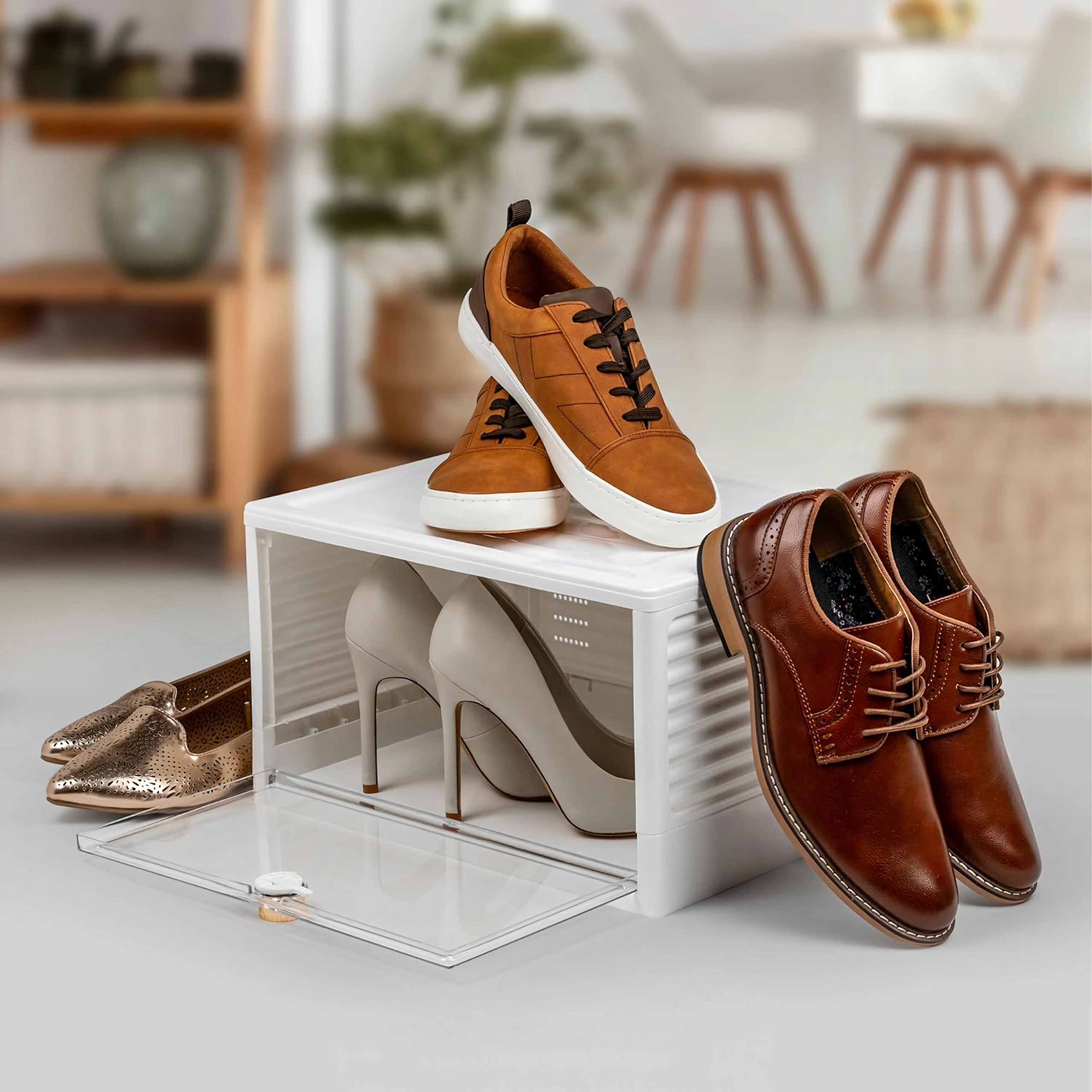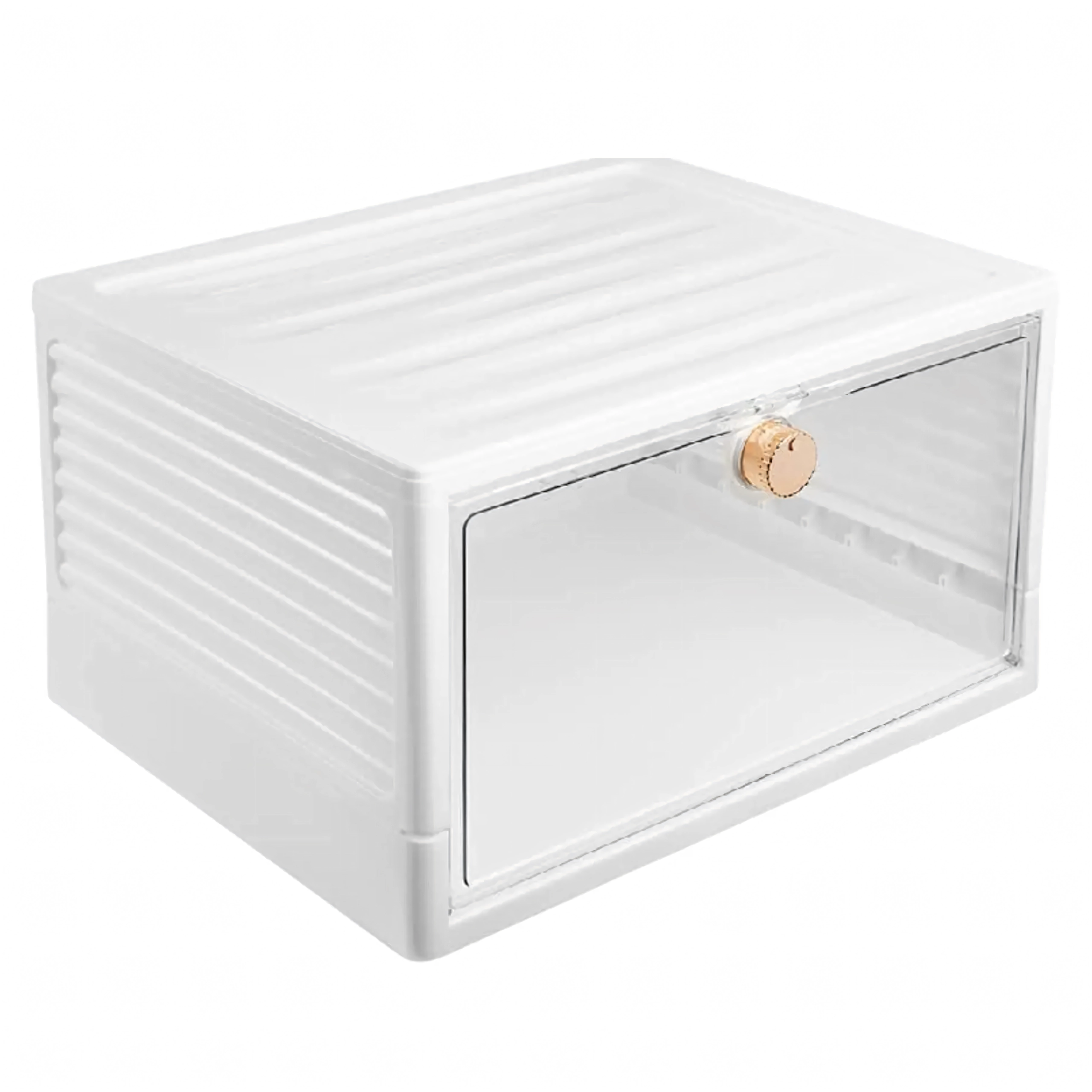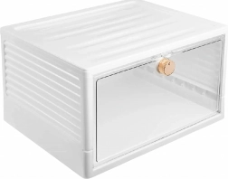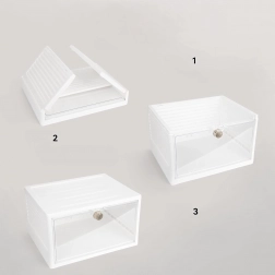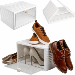 Elegáns és praktikus cipősdoboz elülső, átlátszó lehajtható klapnival, amely segít rendet tartani a gardróbban és az előszobában. A zárt kialakításnak köszönhetően cipői tiszták és védettek maradnak, miközben az átlátszó ajtó lehetővé teszi a tartalom azonnali ellenőrzését nyitás nélkül.