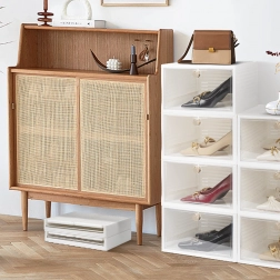 A dobozok biztonságosan egymásra helyezhetők, így a rendelkezésre álló térhez igazodó, áttekinthető cipőpolc hozható létre.