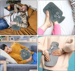 A praktikus, bojtokkal díszített huzat jobb szigetelést, tisztaságot és kényelmet biztosít a testtel való érintkezéskor. A belső, texturált gumipalack egyenletesen oszlatja el a hőt, és csökkenti a helyi túlmelegedés kockázatát. A melegvizes palack kiváló otthoni relaxáláshoz, menstruációs fájdalmakhoz, izomfeszültséghez, valamint melegedéshez hűvös időben.