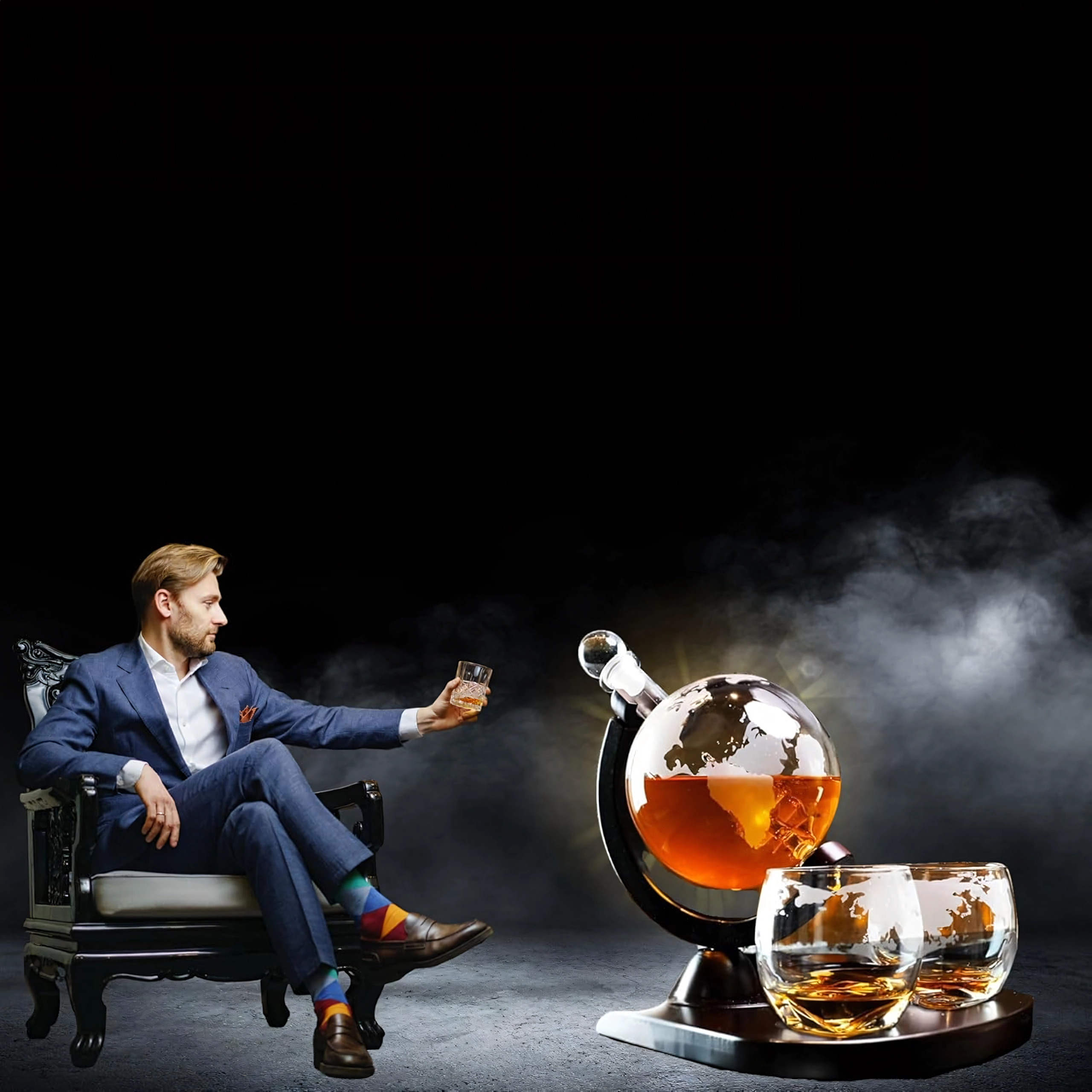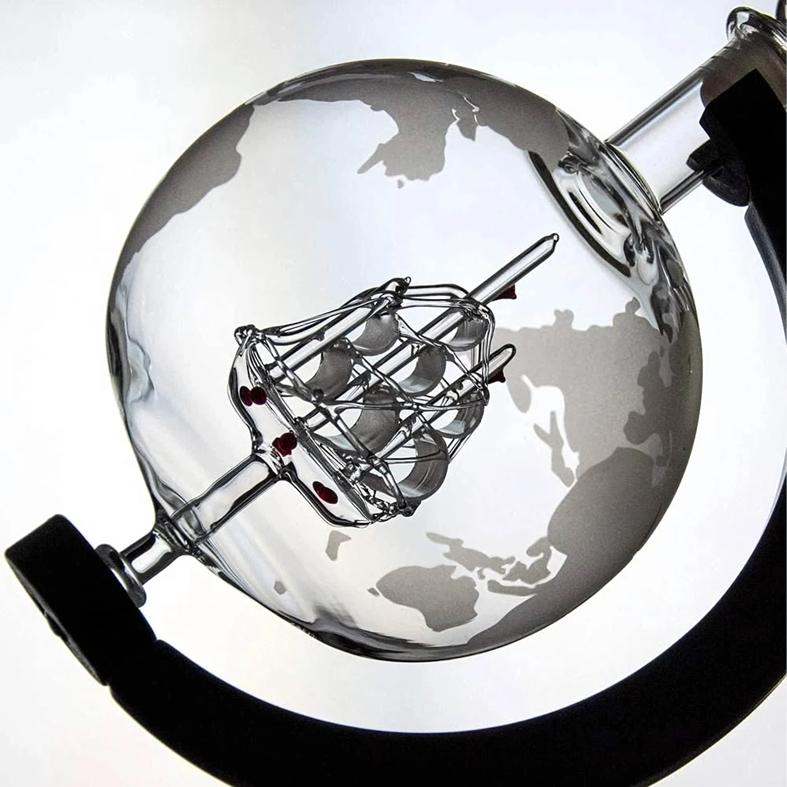 A földgömb alakú karafa elegánsan forog, és az állvány stabil, látványos megjelenítést kínál bármely bárpulton vagy asztalon.