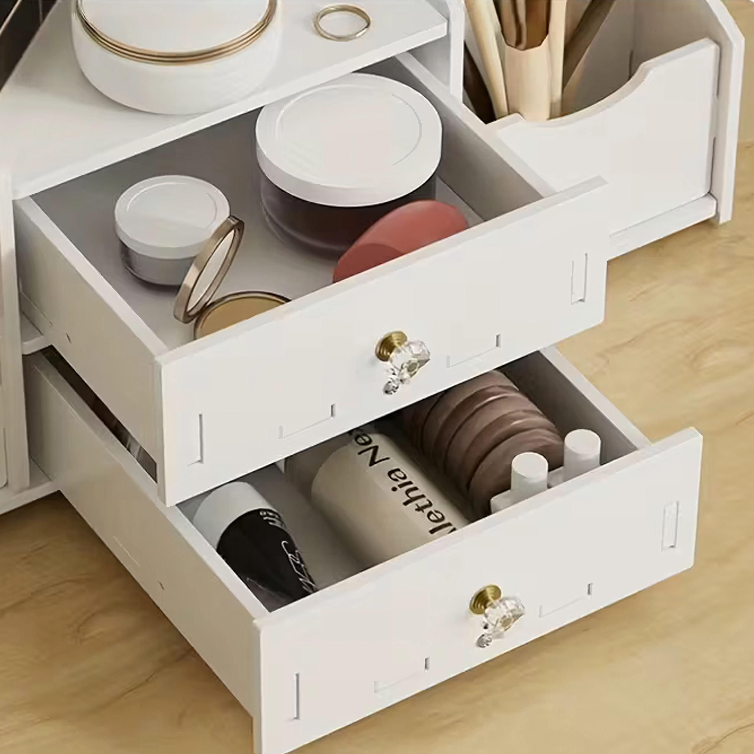Az elegáns fehér mini fésülködőasztal helytakarékos a komódon vagy asztalon, és stílusosan kiegészíti a hálót, a fürdőt vagy a gardróbot.