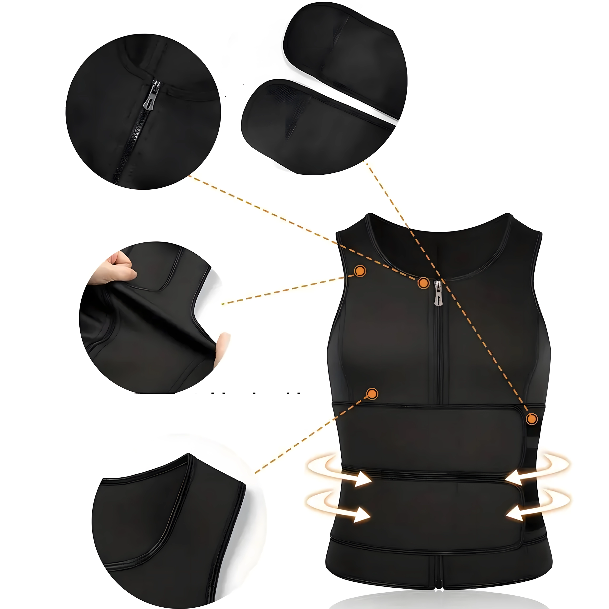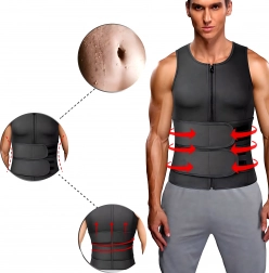 Ez a prémium neoprénből készült férfi kompressziós szauna mellény megemeli a törzs hőmérsékletét, így fokozza az izzadást és a kalóriaégetést. Stabilizálja a törzset, javítja a testtartást és csökkenti a hátfáradtságot erősítés, futás és kardió során. Az elülső cipzár és a széles, állítható pántok gyors felvételt és pontos meghúzást tesznek lehetővé.