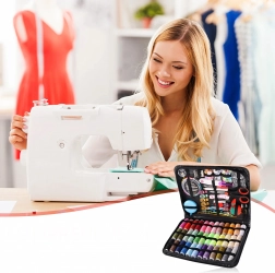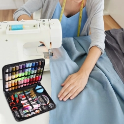 Professzionális varrókészlet 229 darabbal elegáns, cipzáras tokban, amely komplett felszerelést kínál varráshoz, javításhoz és ruházati igazításhoz otthon és utazás közben. Találsz benne színes cérnákat, tűket, ollót, bontókést, mérőszalagot, gyűszűket, gombostűket, csipeszeket és gombokat – mindent áttekinthetően, gumipántokkal rögzítve a gyors és biztonságos hozzáférésért.
