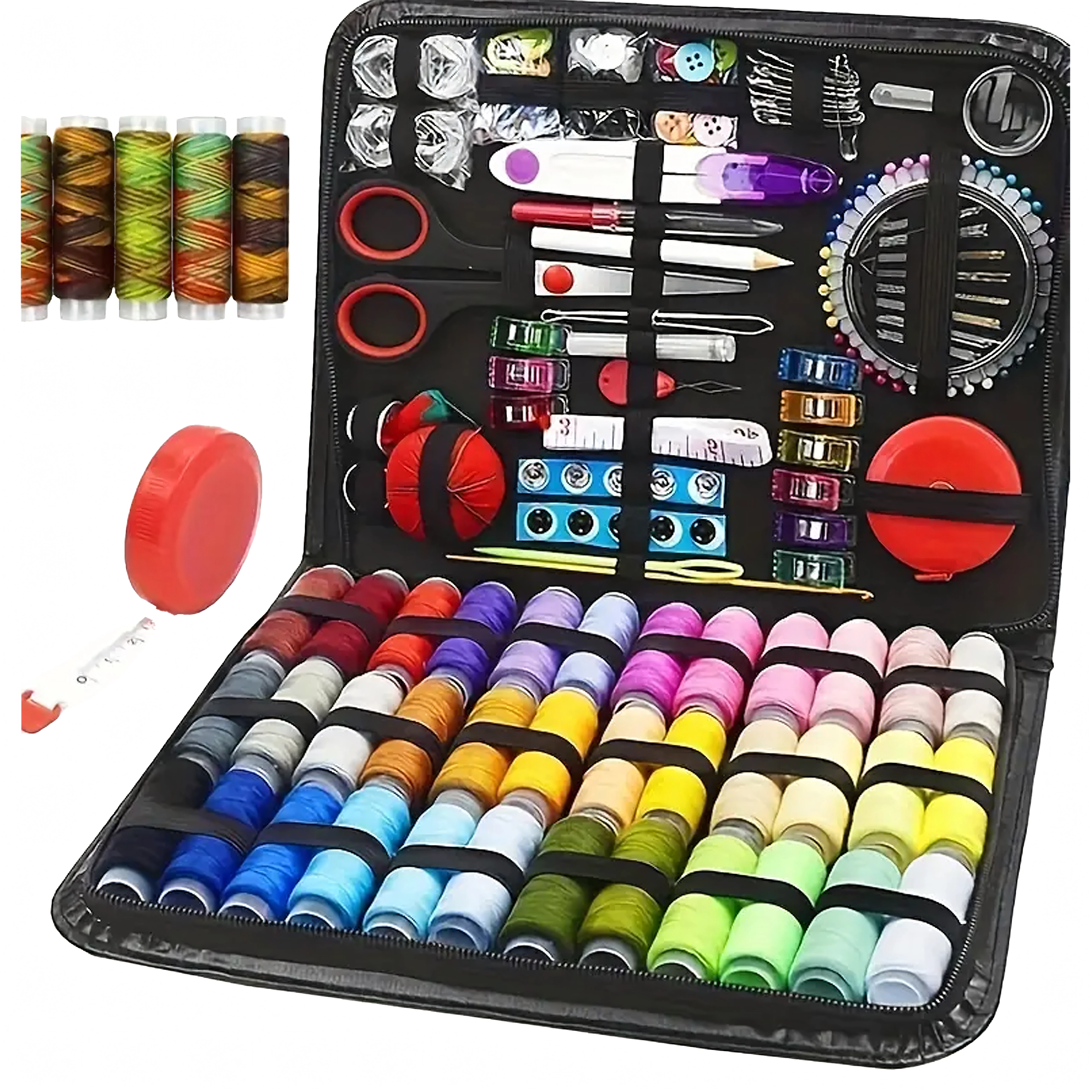 A szett mindent tartalmaz, amire szükséged lehet: tűk és befűzők a kényelmes varráshoz, éles bontókés a pontos varratbontáshoz, mérőszalag a precíz méretekhez, olló, gyűszűk az ujjak védelmére, gombostűk és csipeszek az anyag rögzítéséhez, valamint gombok a gyors javításokhoz.