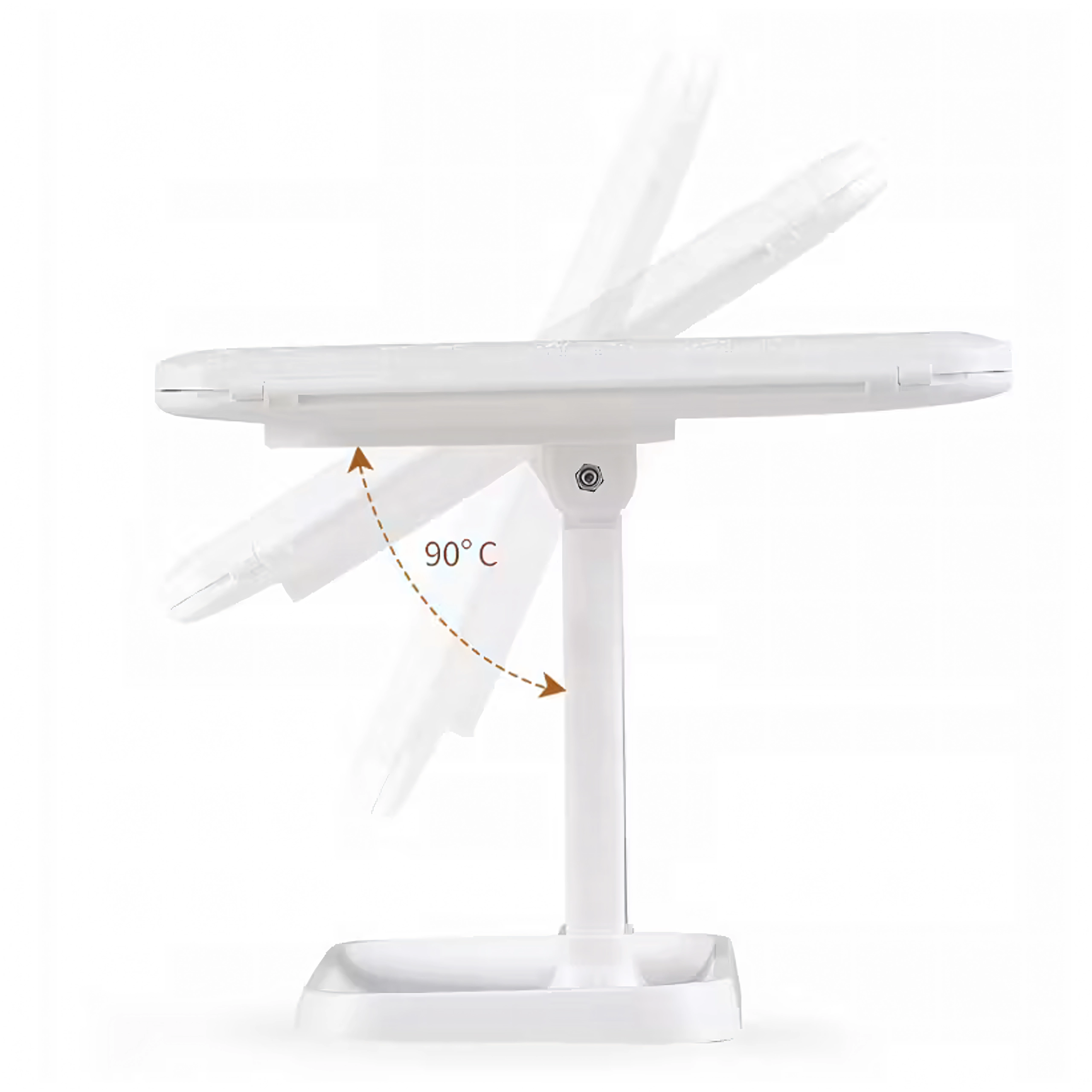 A érintésérzékelőnek köszönhetően könnyedén válthat a 3 színhőmérséklet (hideg/meleg/semleges) között, és beállíthatja a fény intenzitását a környezethez igazítva. A tükör összecsukható és forgatható, így helytakarékos, szállításkor védi a felületeket, és minden művelethez ideális szöget biztosít.