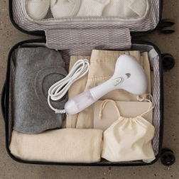 Könnyű, helytakarékos és egyszerűen hordozható. Elfér a bőröndben, és bárhol készen áll a ruhák gyors igazítására utazás közben.