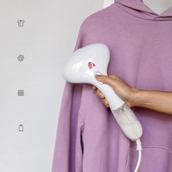 Takarítson meg időt és helyet ezzel a praktikus kézi gőzölővel, amely könnyedén megbirkózik a mindennapi ruhafrissítéssel. Az erős gőzsugár hatékonyan csökkenti a gyűrődéseket, felfrissíti a szálakat és segít megszüntetni a szagokat – vasalódeszka nélkül.