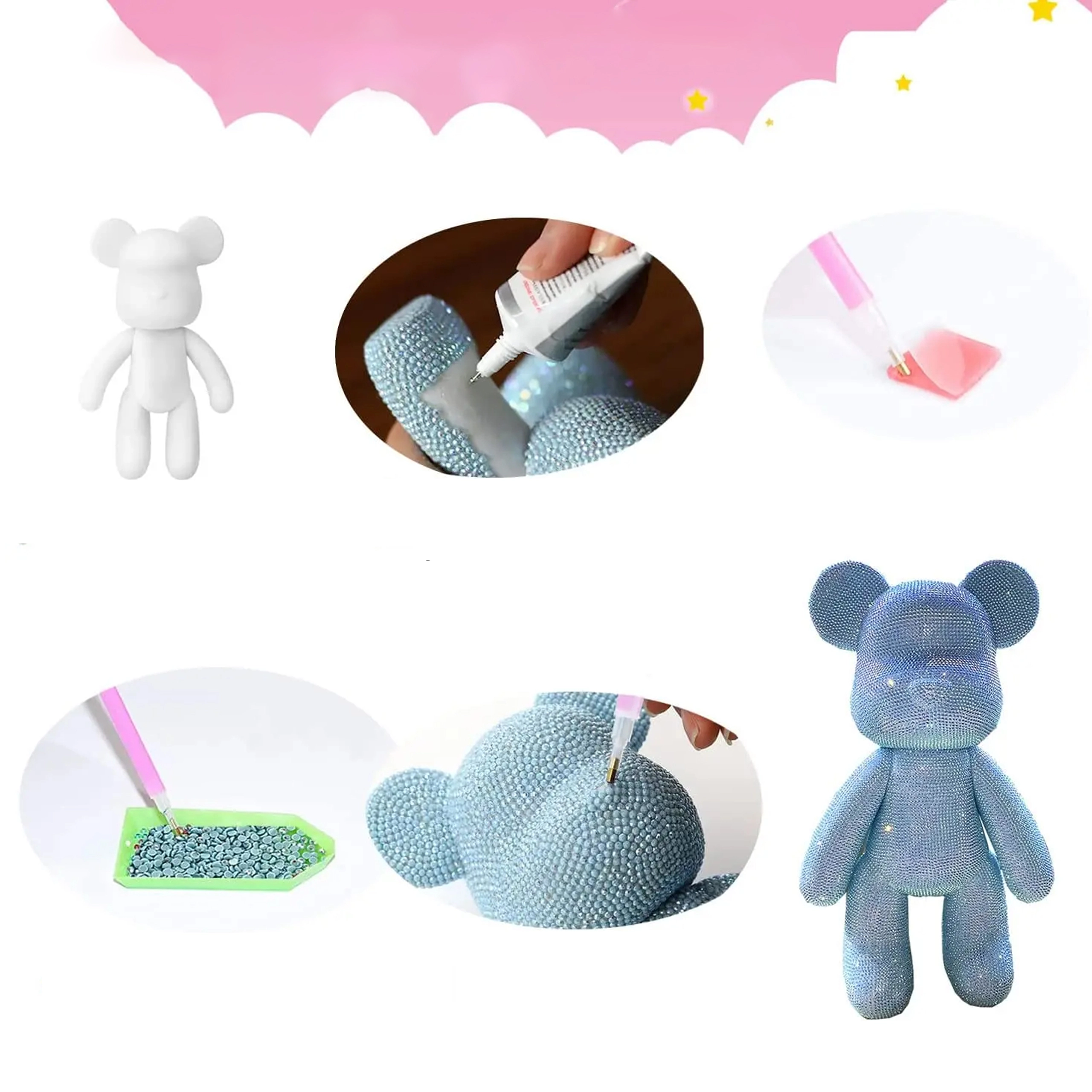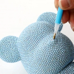 A csomagban mindent megtalálsz: speciális ragasztót a kövekhez, applikátort/tollat a kényelmes felvételhez, tálcát a szortírozáshoz és minőségi gyémánt kövecskéket különböző színekben. Segítségükkel egyedi fényt és személyes stílust adhatsz a macinak. Remek ajándékötlet születésnapra, névnapra vagy gyerekzsúrra.