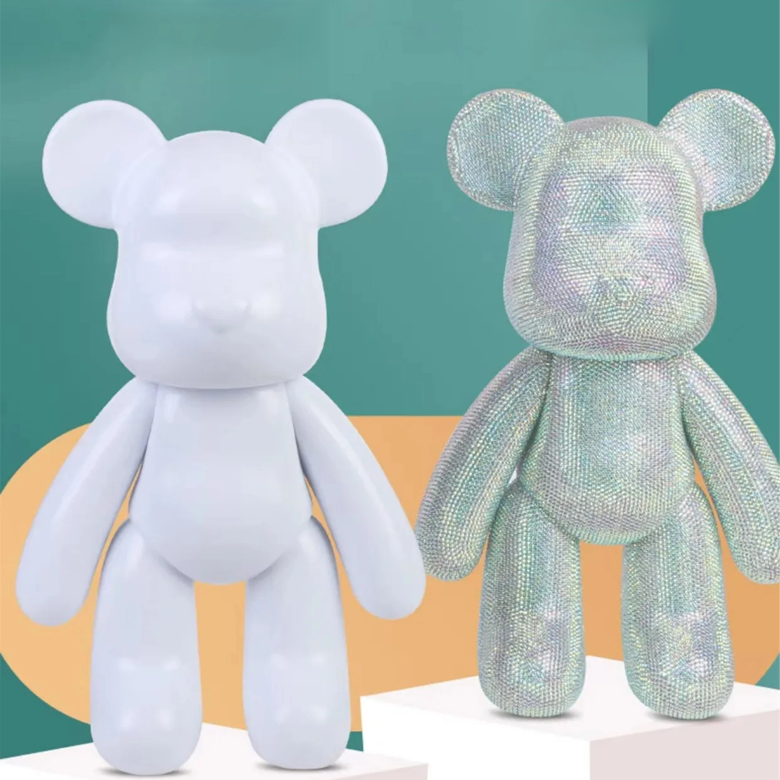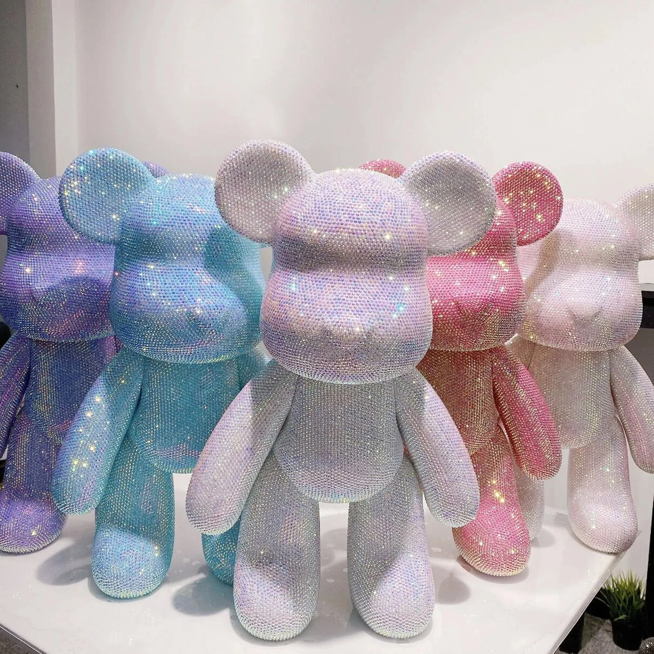 A sokoldalúan csiszolt kövecskék beragyogják a maci figurát, luxus megjelenést kölcsönözve, amely bármely enteriőrben figyelemfelkeltő.