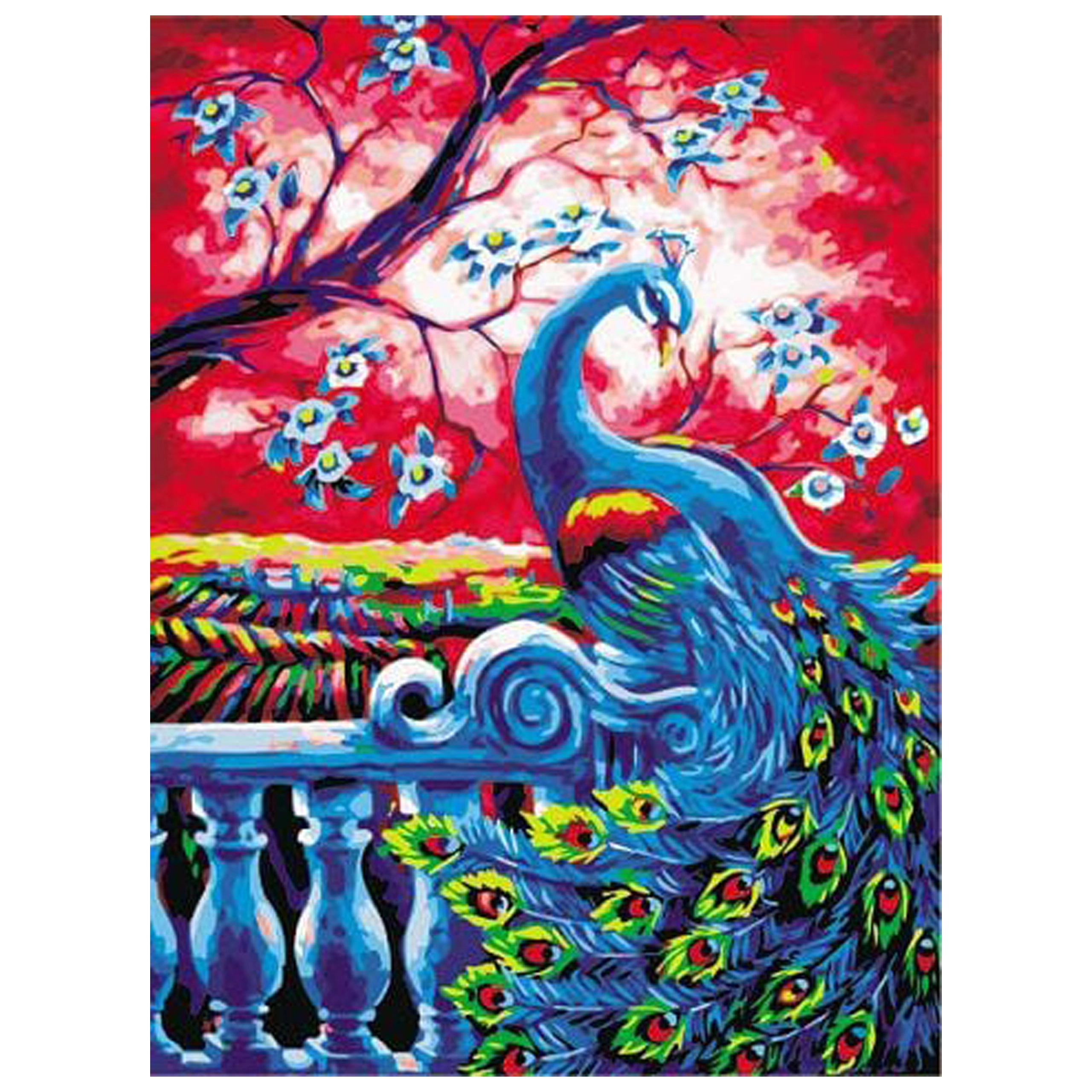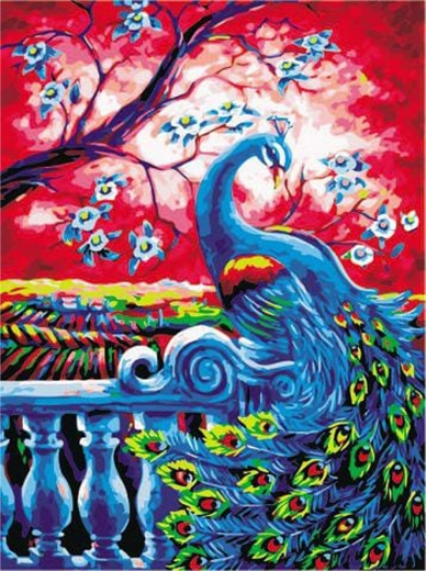 Komplett szett keretre feszített vászonnal, festékekkel és ecsetekkel. Befejezés után a páva motívumú képet azonnal fel is akaszthatja.