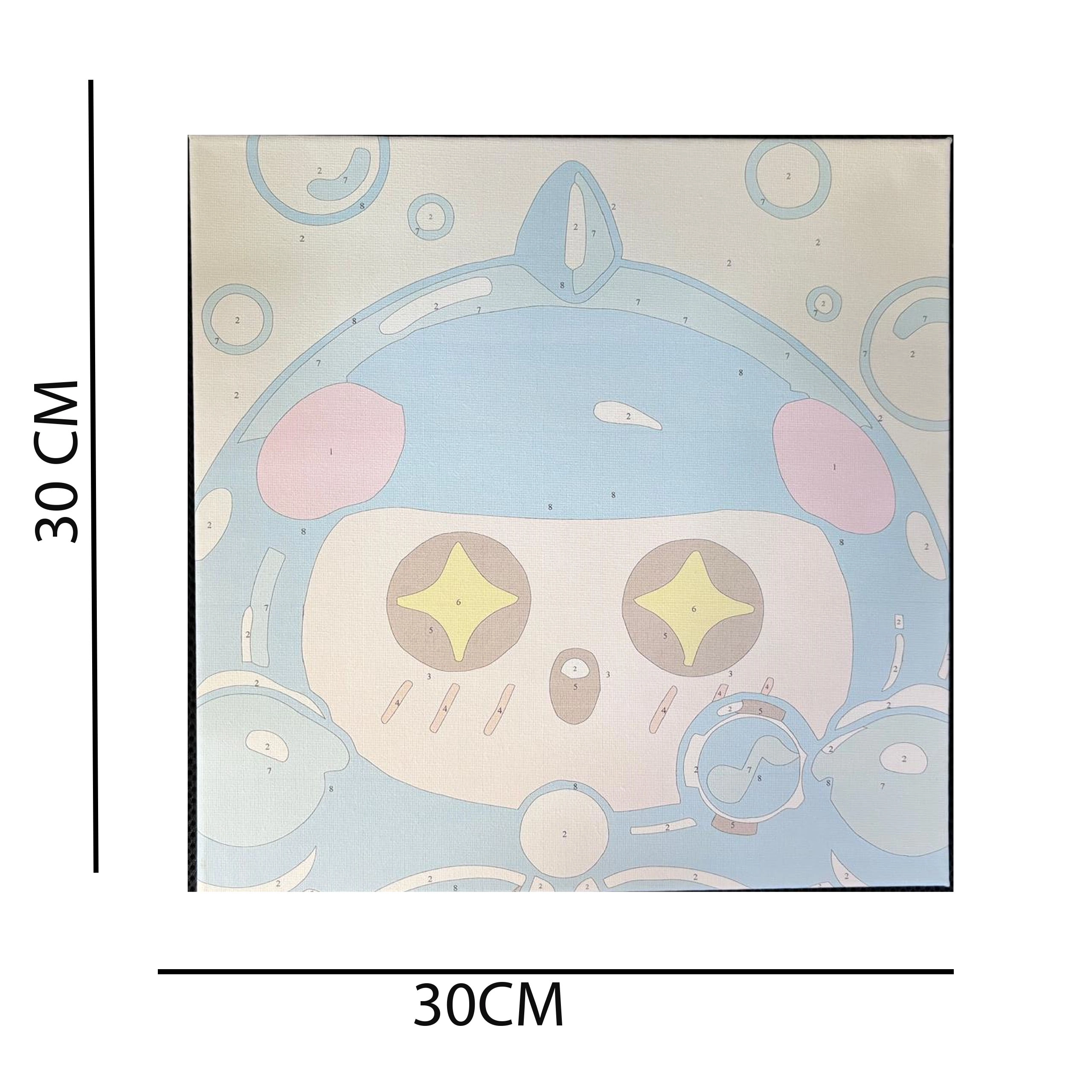 - Teljes készlet: 30 × 30 cm-es vászon kereten, számozott akrilfestékek, 2 ecset, akasztó tartozékok.