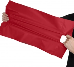 Praktikus és tartós futár polietilén tasakok kivágott füllel elegáns piros színben a csomagok gyors és biztonságos csomagolásához. Erős LDPE fóliából készültek, vízálló védelmet, öntapadós zárást és védelmet nyújtanak a nem kívánt felnyitás ellen. A csomag 50 darabot tartalmaz 310 × 420 + 70 mm (fül) méretben, „Thank You” felirattal.