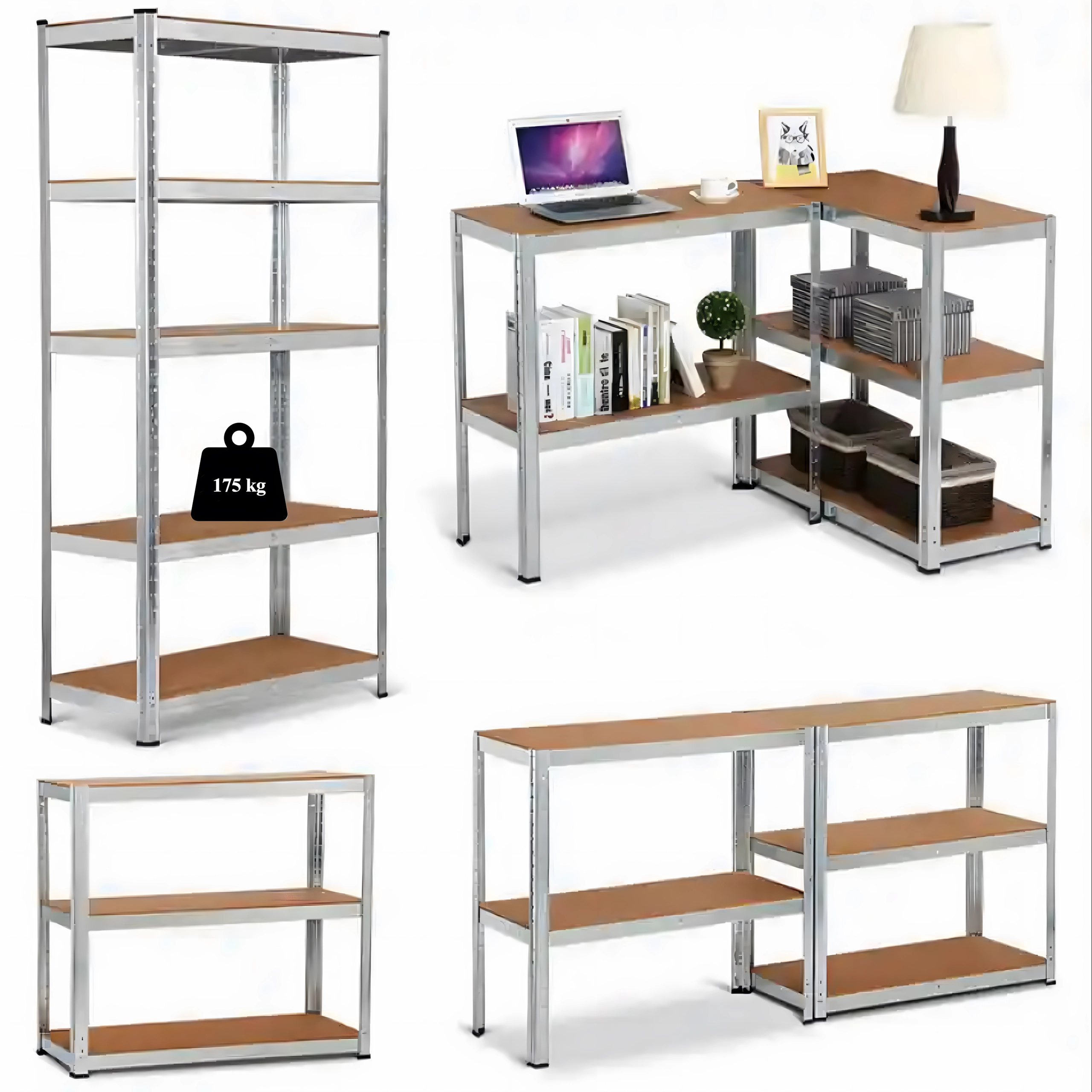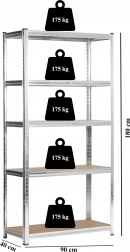 Minden polc akár 175 kg-ot elbír, ami nagy szilárdságot biztosít nehéz tárgyak és csomagok tárolásakor is. Ideális garázsokba, műhelyekbe és raktárakba.