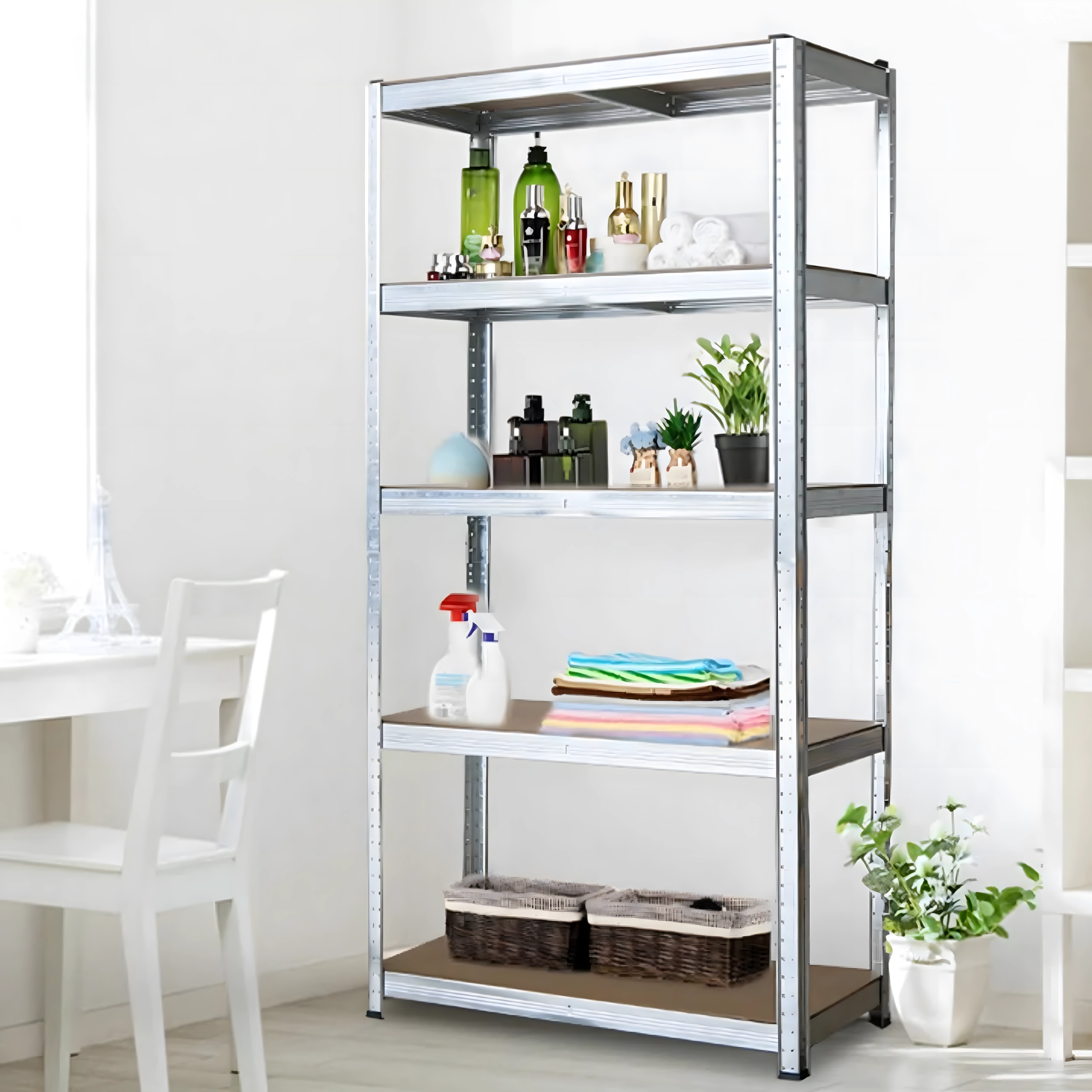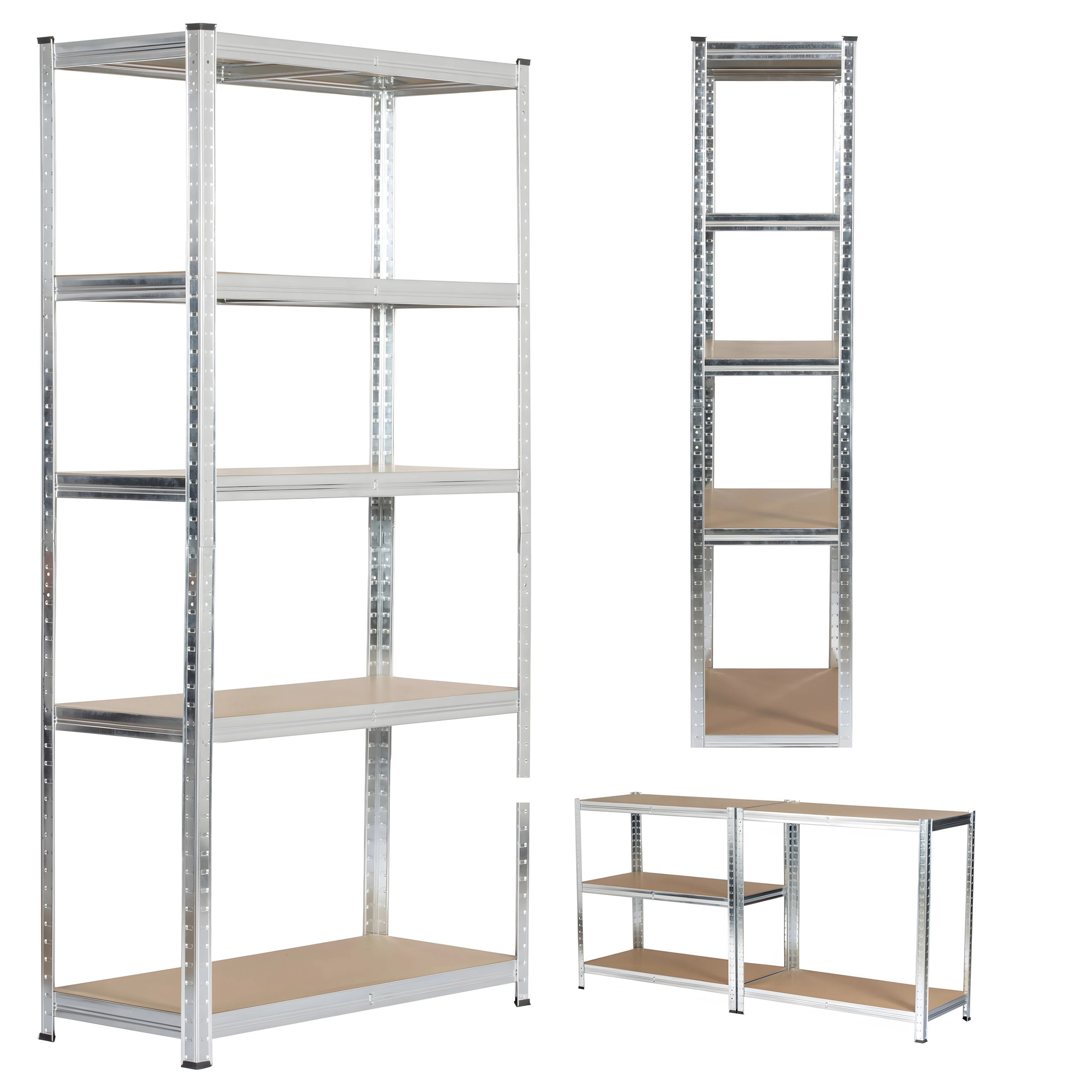 Masszív, horganyzott acélból készült állvány megbízható és biztonságos tárolást kínál szerszámoknak, dobozoknak és anyagoknak. Az öt magasságban állítható MDF polcnak köszönhetően könnyen a pillanatnyi igényekhez szabható a hely, így minden centiméter hatékonyan kihasználható.