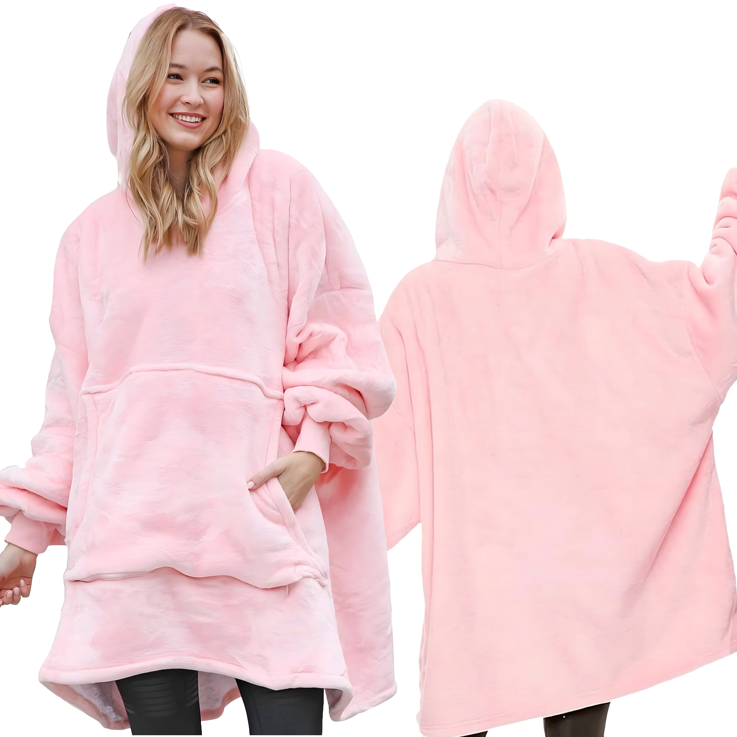 A univerzális méretnek köszönhetően a legtöbb alkatra jól passzol, a nagy kenguruzseb elnyeli a telefont, a távirányítót és az apróságokat, a rugalmas mandzsetták pedig a helyükön tartják az ujjakat. A rózsaszín szín stílust és meghittséget kölcsönöz.