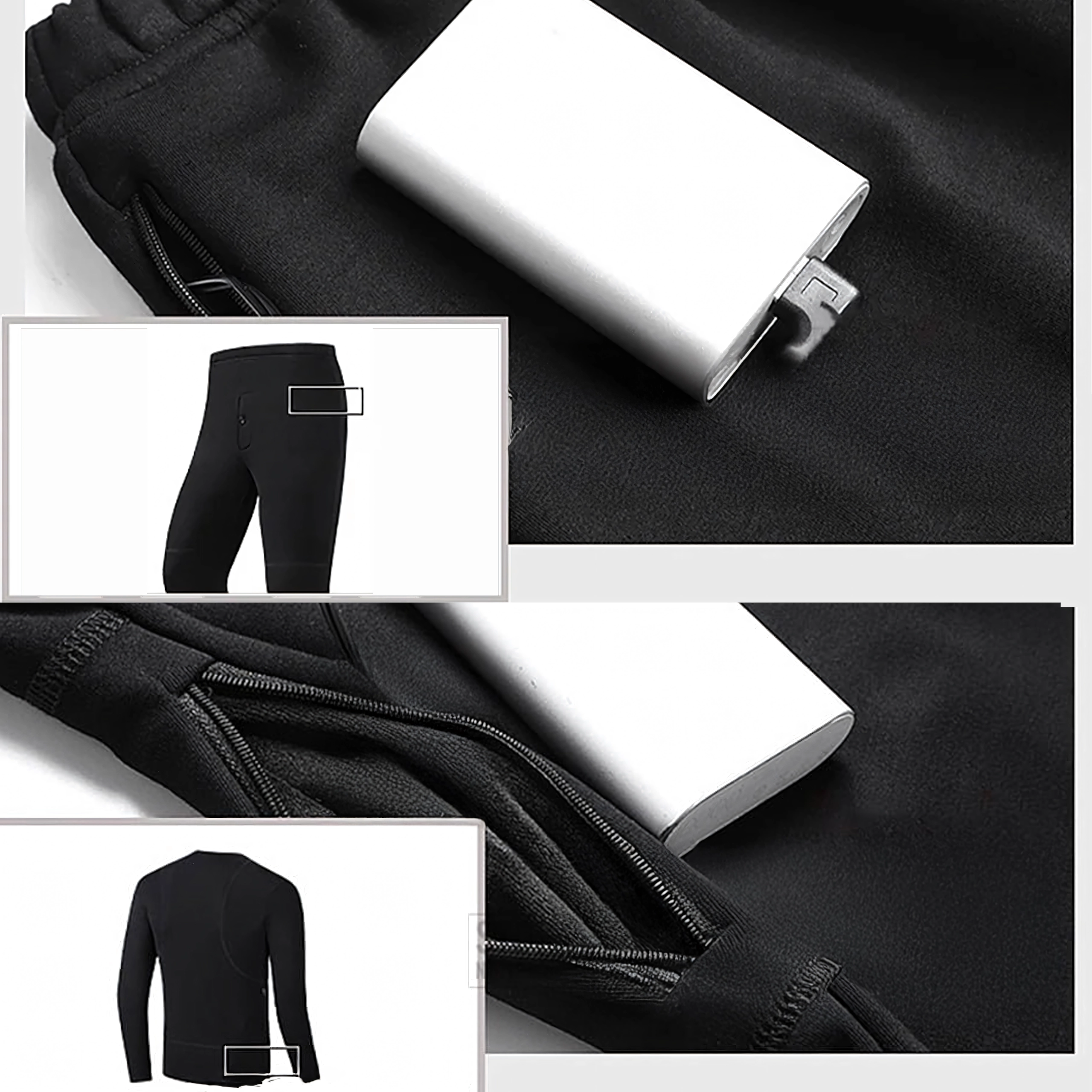 Élvezze a telet melegben ezzel a 2XL méretű fűthető thermoalsóval. A szett testhezálló, hosszú ujjú felsőt és leggingset tartalmaz 4 fűtési zónával (hát, derék, térdek), 3 hőmérséklet-fokozattal (45 °C, 55 °C, 65 °C) és USB-s tápellátással. Akár 7 órán át biztosít aktív meleget (10 000 mAh-s power bankkal), rugalmas, kényelmes és mosható – ideális síeléshez, túrázáshoz és hidegben végzett munkához.