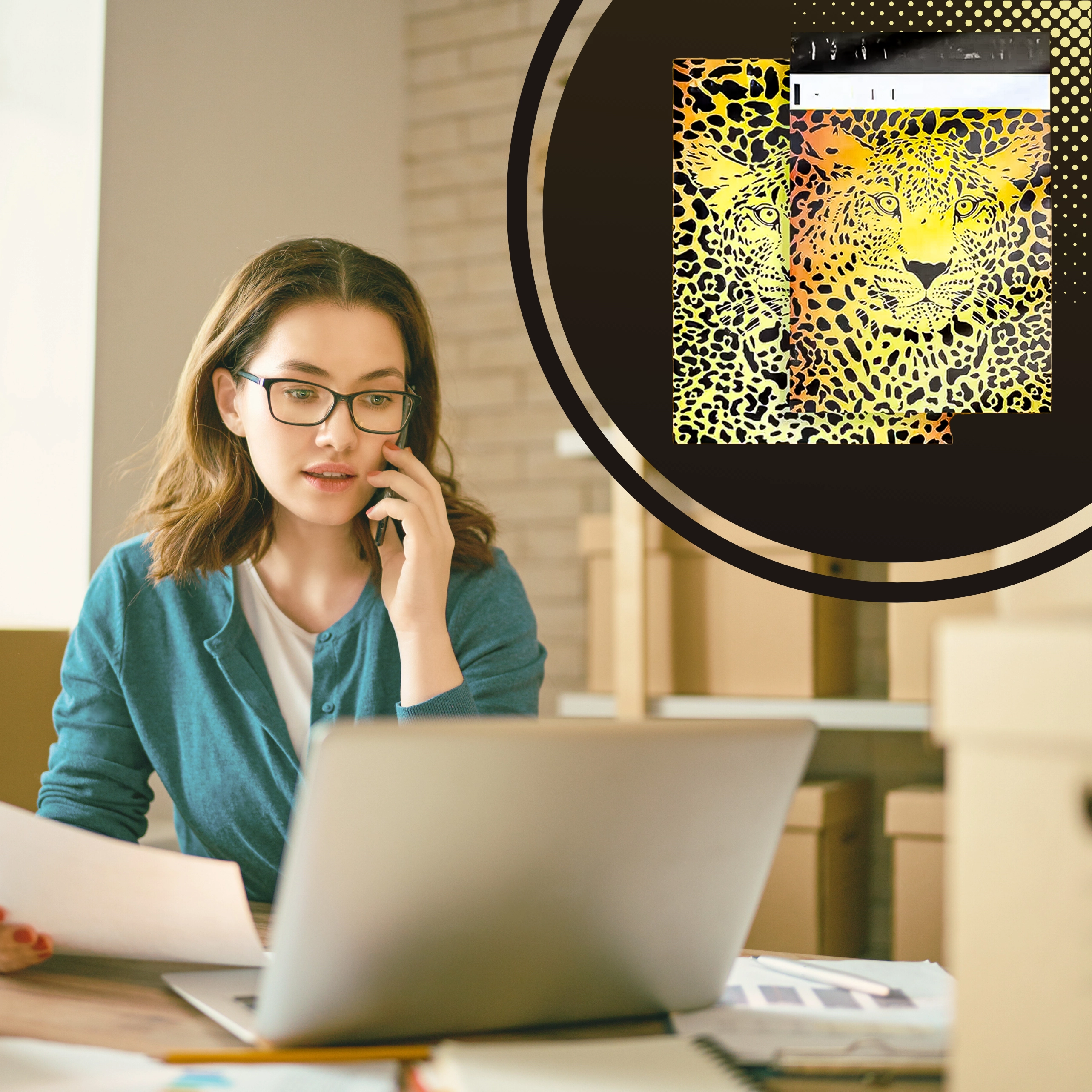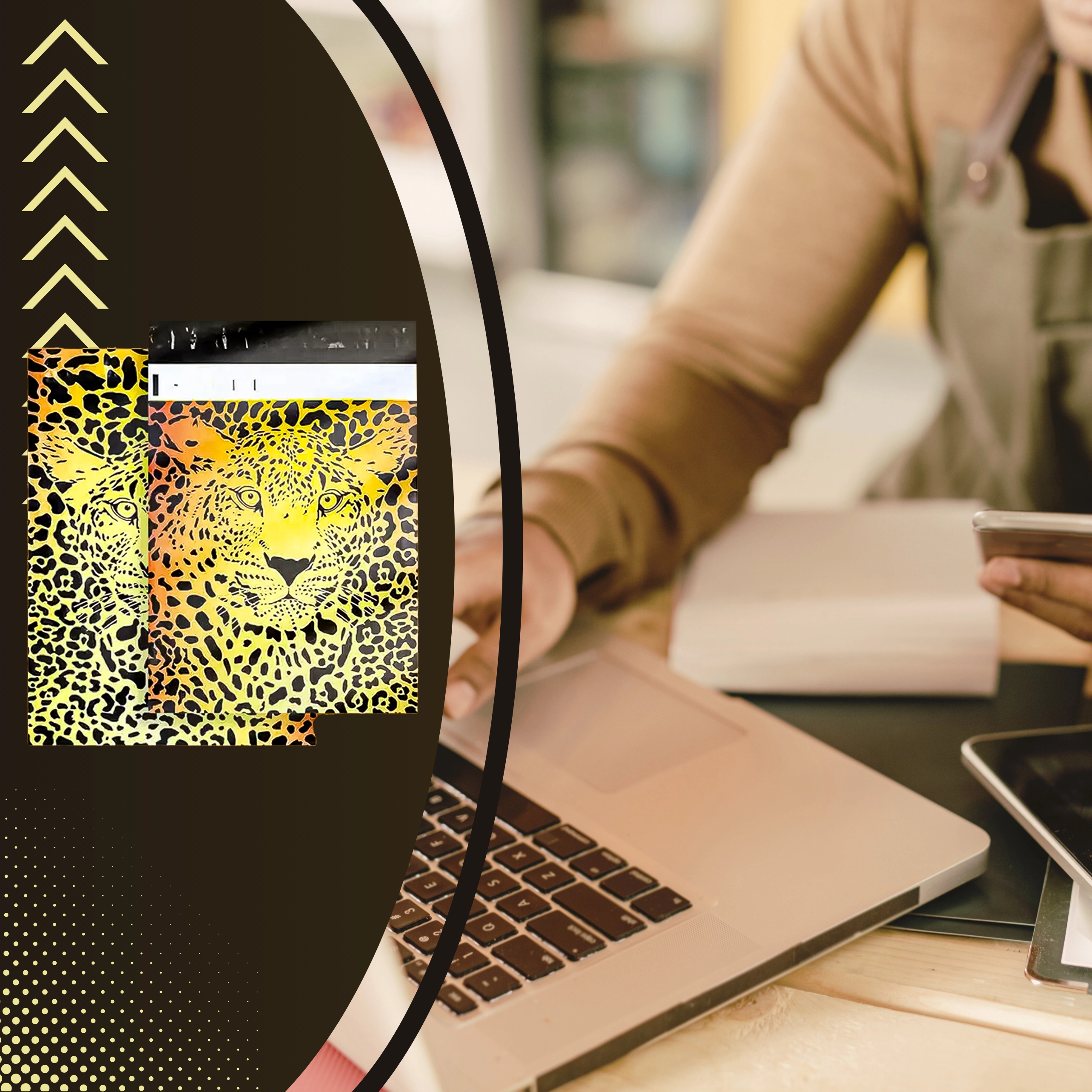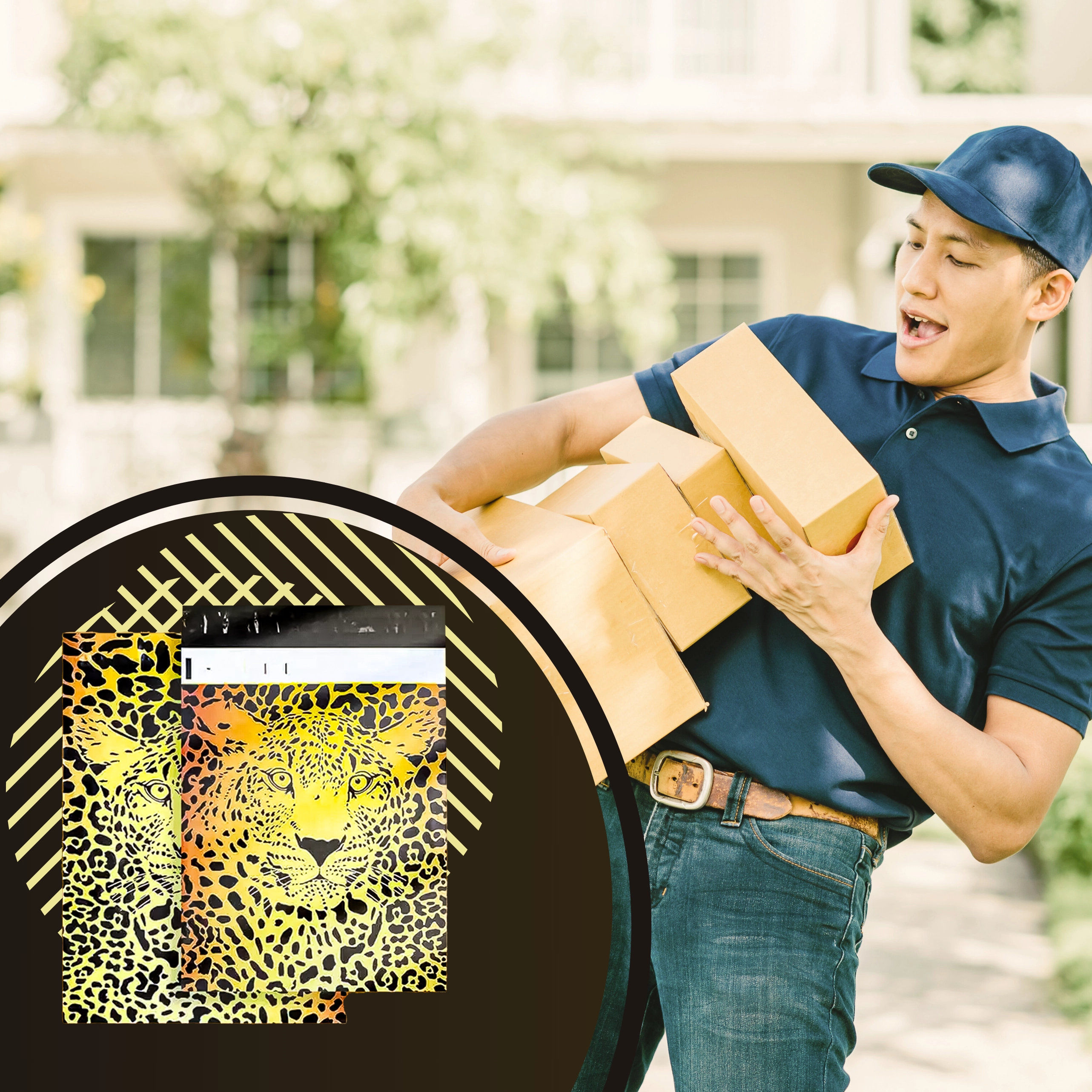 A markáns, gepárd motívumú nyomat felkelti a vásárlók figyelmét, és már első pillantásra megkülönbözteti küldeményeit.