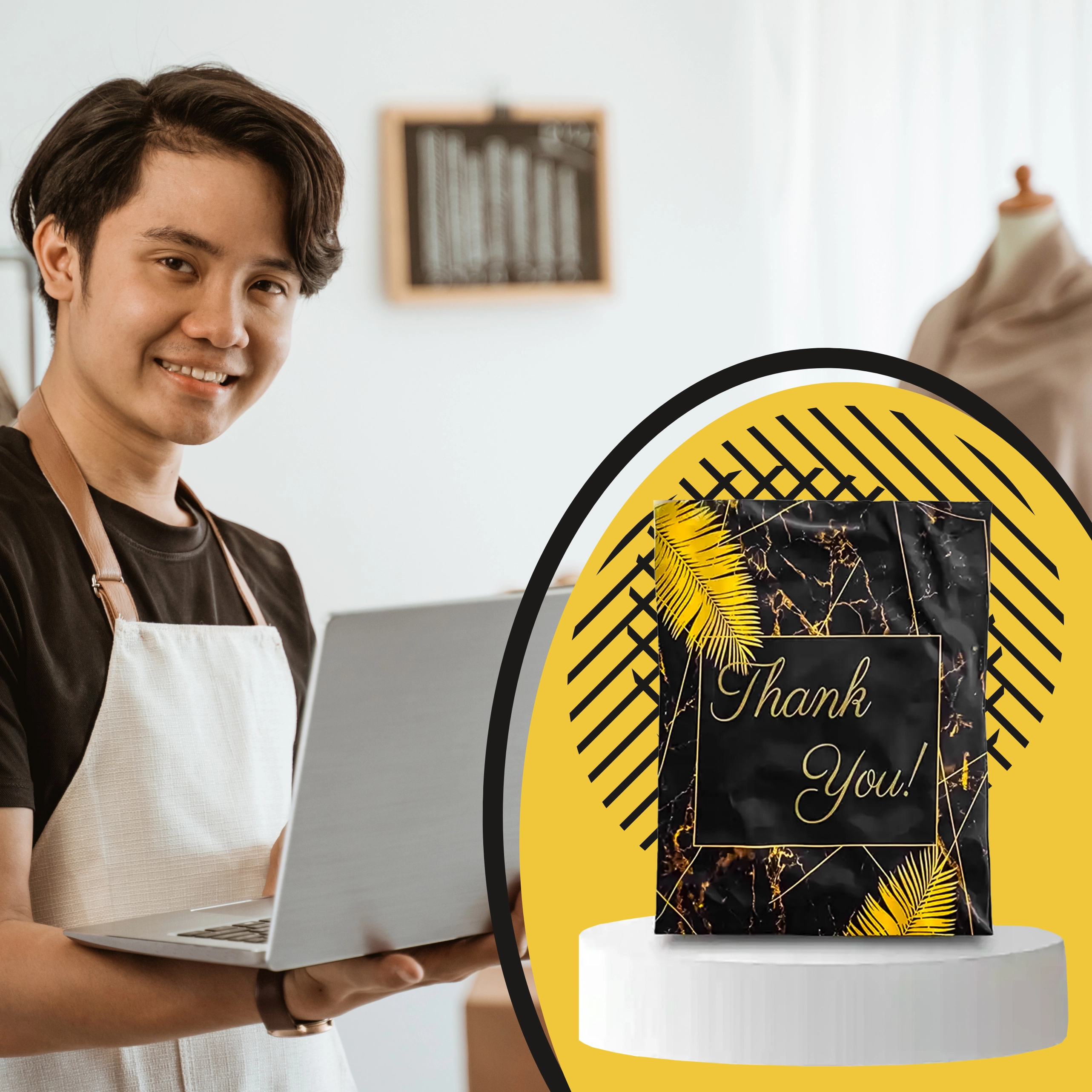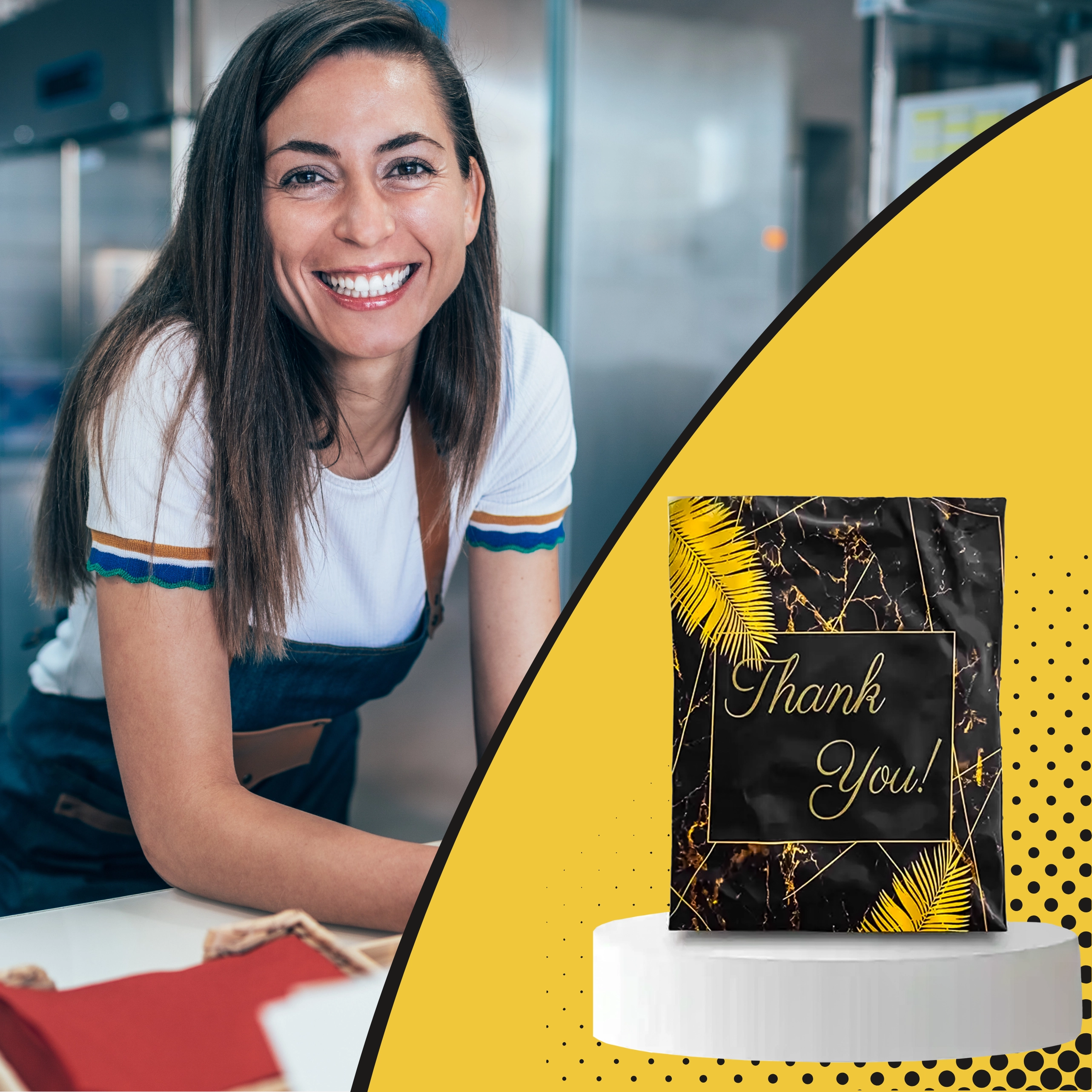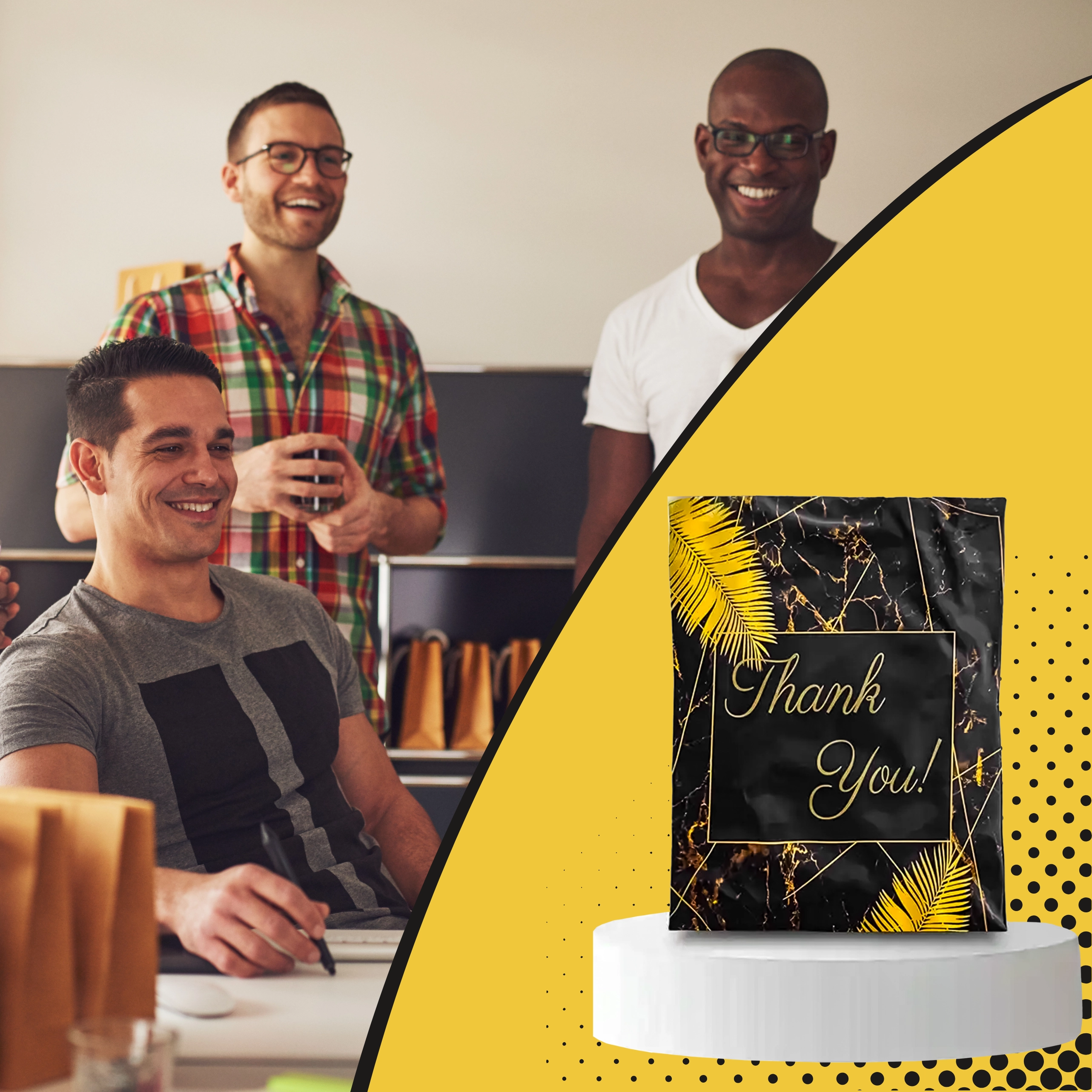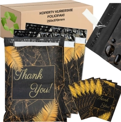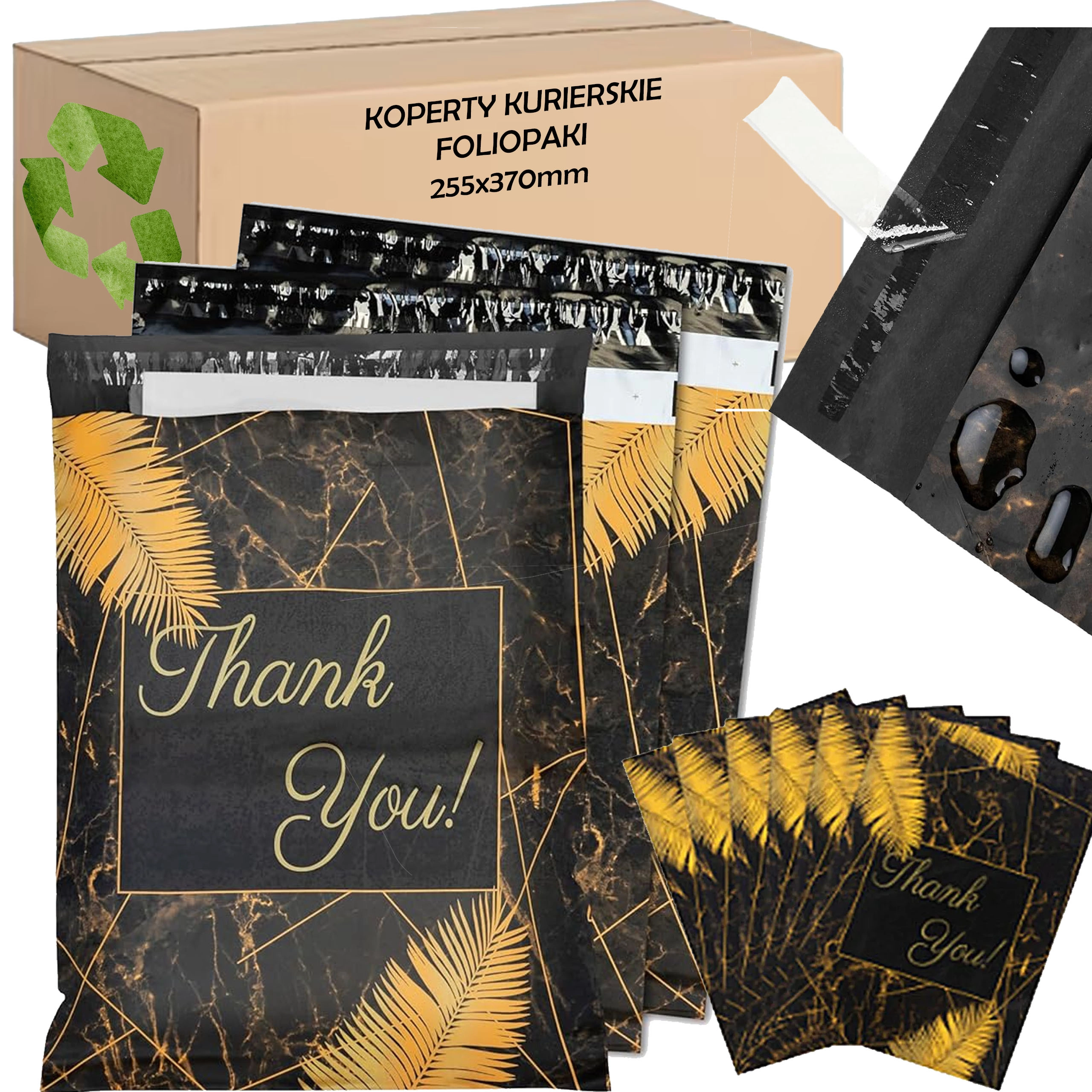 Megbízható csomagolóanyagot keres webáruházhoz vagy rendszeres küldeményekhez? Ezek a strapabíró fóliás futárborítékok 255 × 370 mm méretben kiválóak kisebb és közepes tárgyakhoz. A fekete felület visszafogott Thank You felirattal professzionális hatást kelt és javítja a kézbesítés élményét.