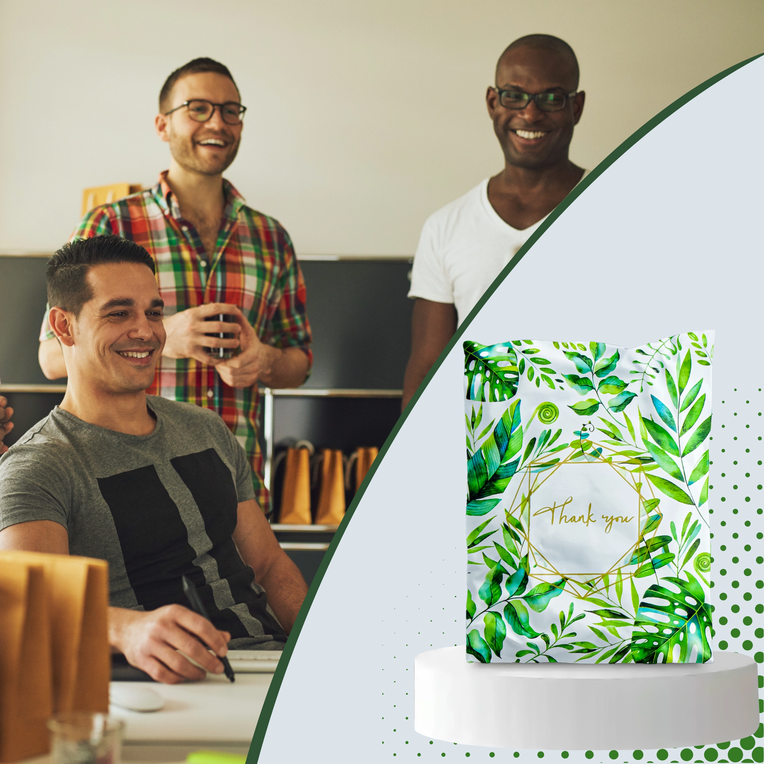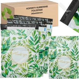 Ezek a futár fóliatasakok ideálisak webáruházak számára és mindenkinek, aki a küldeményeit gyorsan, biztonságosan és professzionálisan szeretné csomagolni. A 310 × 420 mm-es méret kiváló kisebb és közepes termékekhez, ruházathoz, kiegészítőkhöz vagy dobozokhoz. A „Thank You” feliratú elegáns külső pozitív benyomást kelt a vásárlóban.