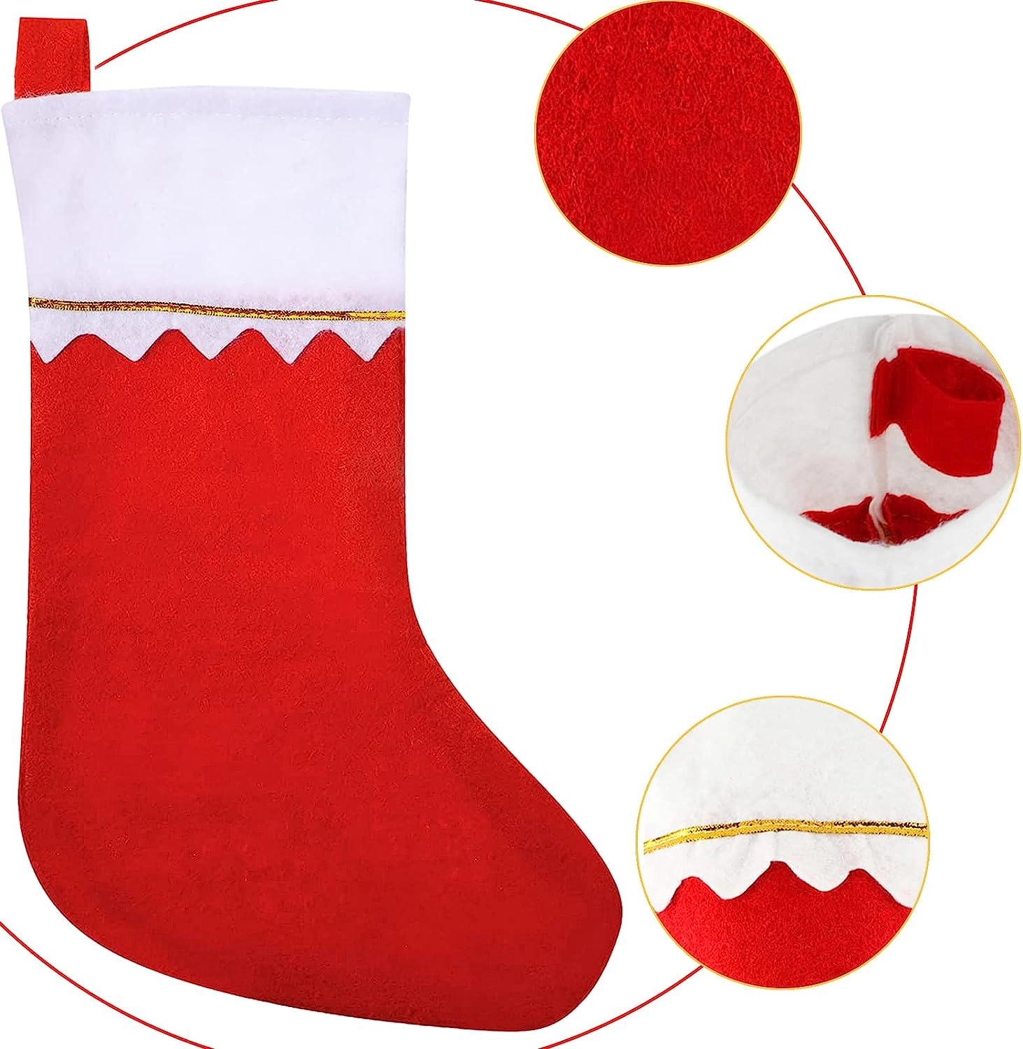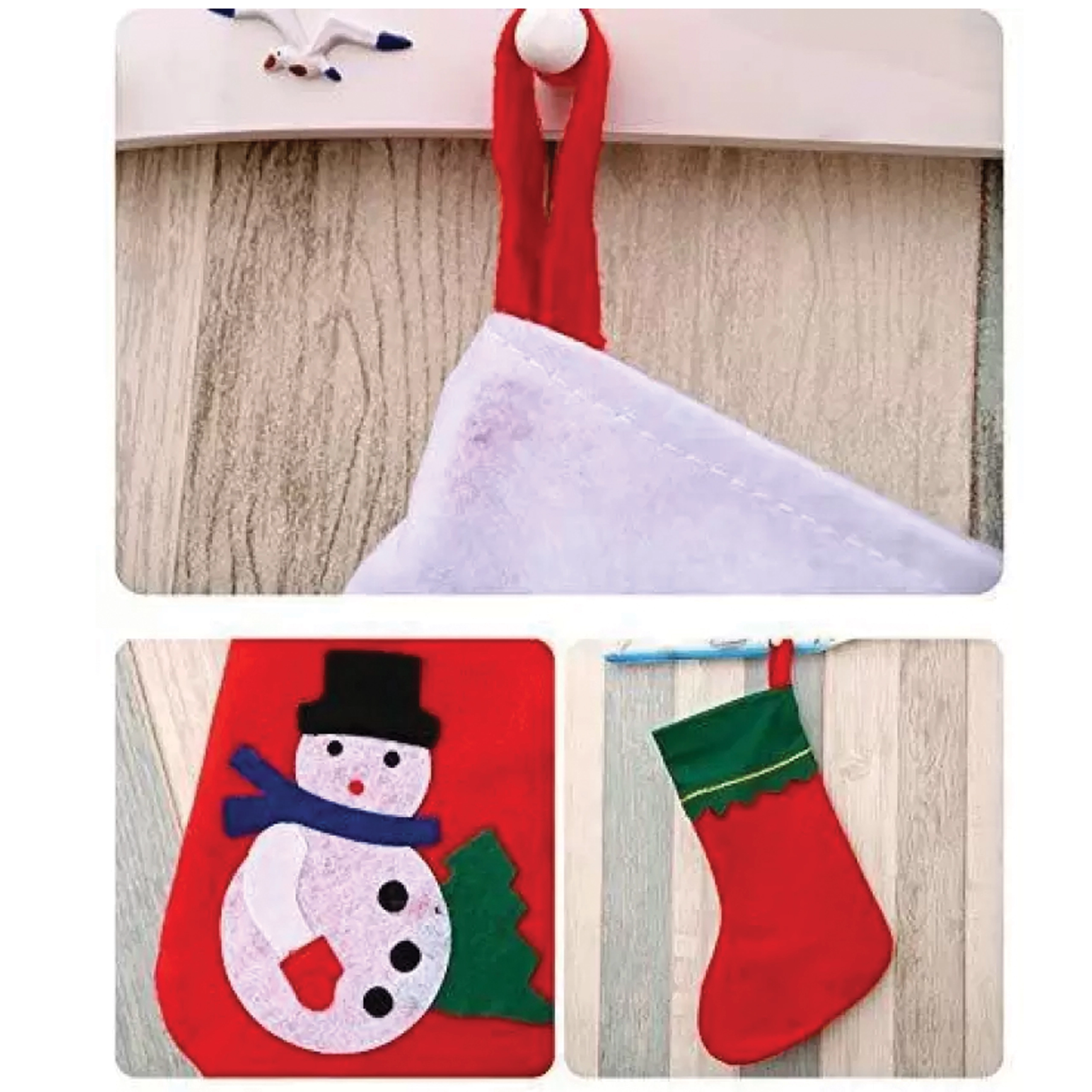 Minden zokni kellemes filcből készül, amely könnyű, újra felhasználható és tartós a szezonális díszítés ismételt használatához. A akasztófülnek köszönhetően a felrakás egy pillanat műve – legyen szó kandallópárkányról, korlátról vagy díszlécől.