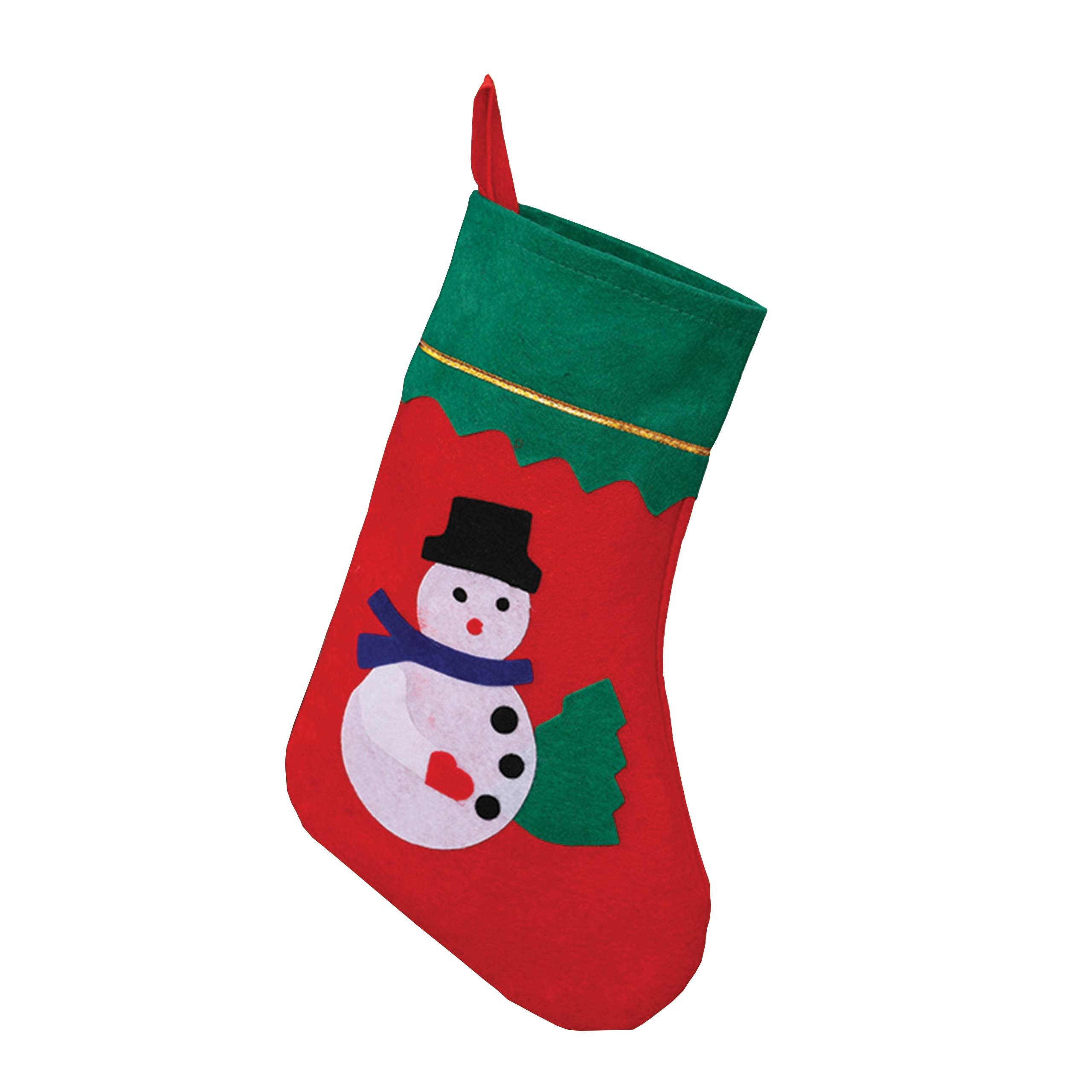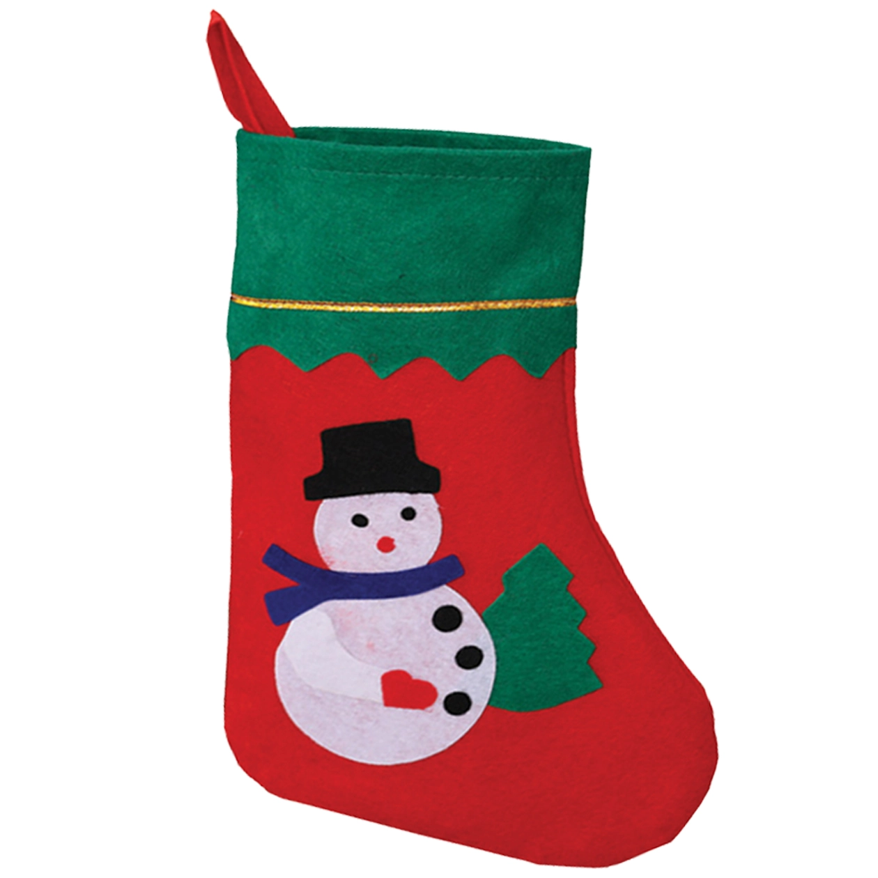 Vidám, applikált hóember részletekkel, amely egyediséget kölcsönöz a zokninak, és kiemeli a karácsonyi hangulatot a kandallónál vagy a fánál.