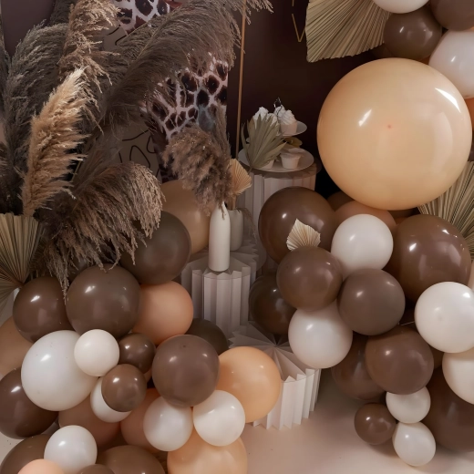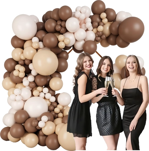 Adj elegáns atmoszférát az ünnepléshez a trendi arany-barna tónusú léggömb girlanddal. A szett gyors és egyszerű telepítésre lett tervezve, így néhány perc alatt hatásos díszítést készíthetsz különleges szaktudás nélkül.