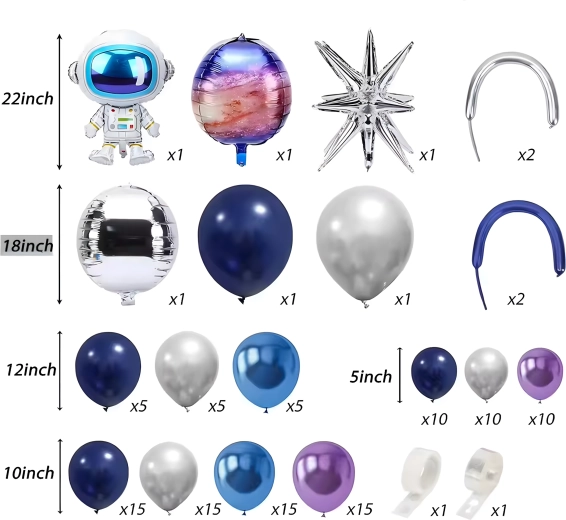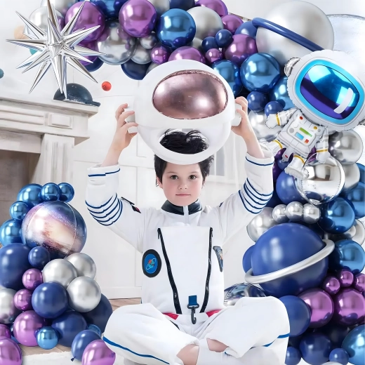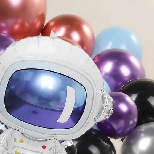 Az Űrhajós léggömbgirland tökéletes választás születésnapokra, tematikus bulikra és gyerekzsúrokra. Készíts látványos dekorációt, amely a díszítés középpontja lesz. A készletet gyors és egyszerű összeszerelésre tervezték, így pillanatok alatt vonzó installációt alkothatsz.