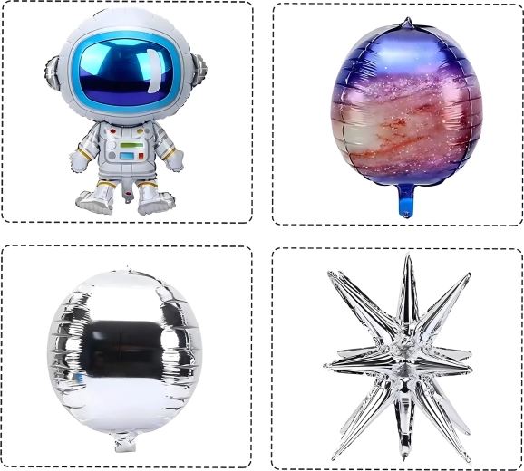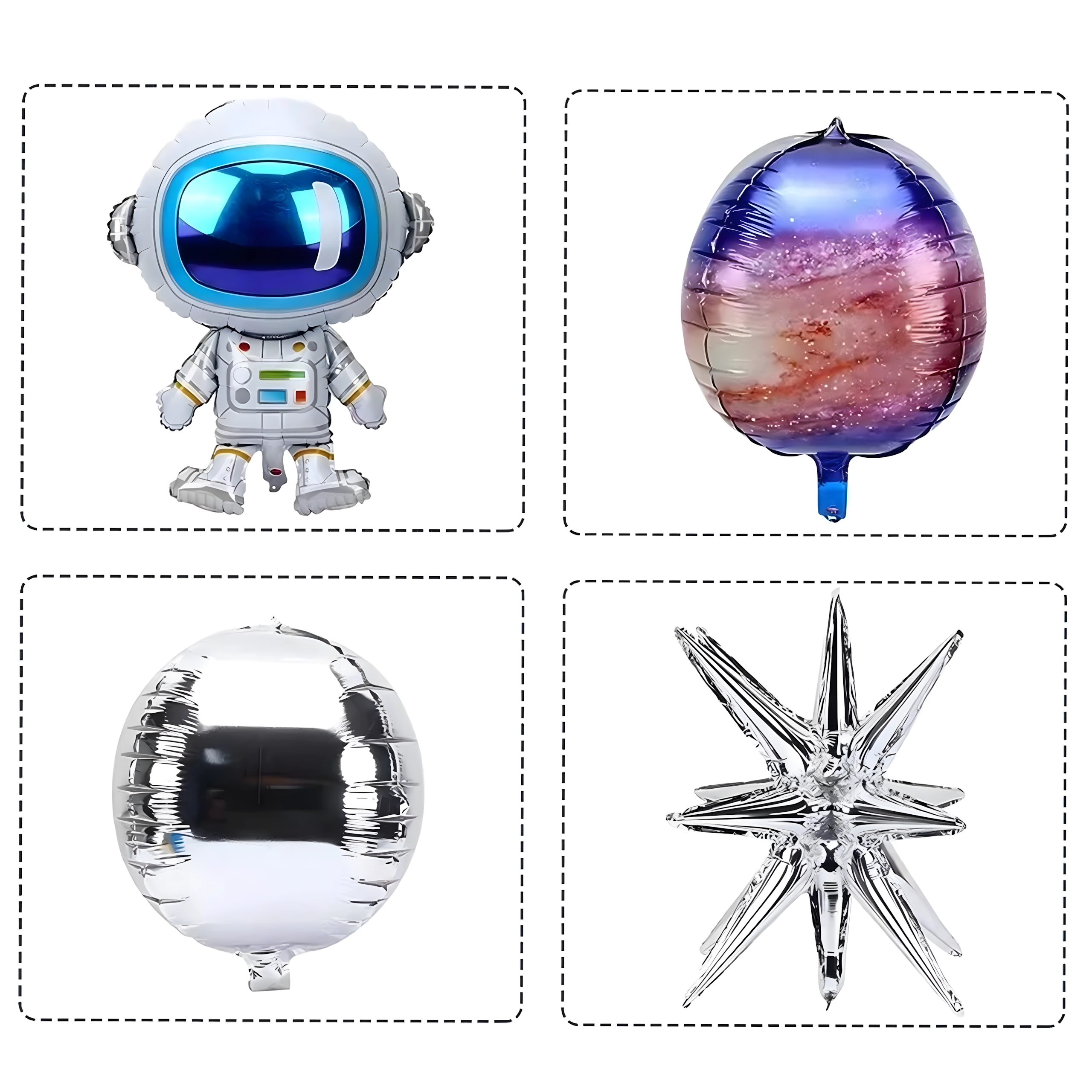 Ideális az űr és rakéták szerelmeseinek. A szett más dekorációkkal kombinálható, és könnyen igazítható a rendelkezésre álló térhez. A sokoldalú felhasználásnak és a számos elemnek köszönhetően feldíszítheted a bejáratot, a fotósarkot és a desszertsarkot is.