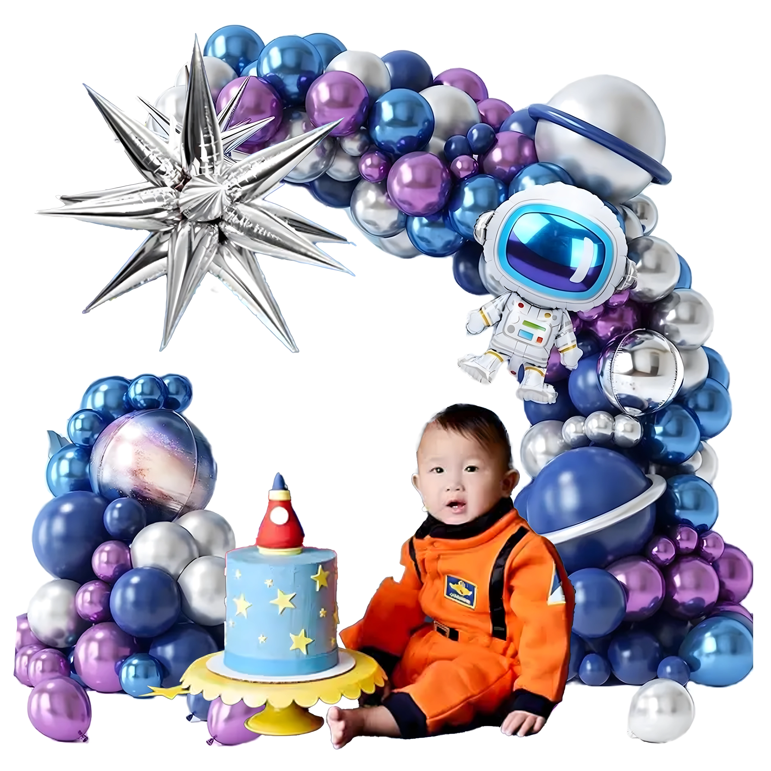 Teremts űrbéli hangulatot a születésnapi bulin az űrhajós stílusú léggömbgirlanddal. Ez a gazdag készlet mindent tartalmaz, amire szükséged van egy eredeti dekorációhoz, amely lenyűgözi a gyerekeket és a felnőtteket is. Az egyszerű összeszerelésnek és a színek, formák kombinációjának köszönhetően a partiját igazán felejthetetlenné és fotogénné varázsolja.