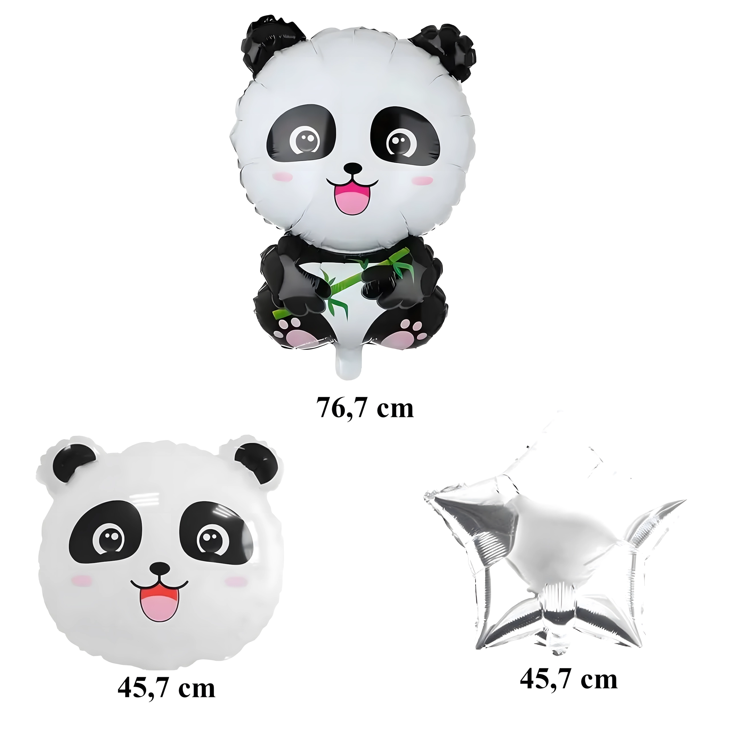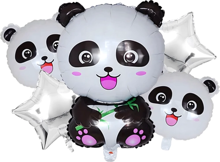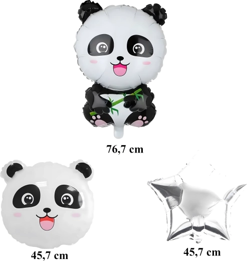A bájos panda mintás lufikészlet feldob bármelyik gyerekzsúrt. Találsz benne 1 nagy panda fólia lufit, 2 HAPPY BIRTHDAY feliratú lufit és 2 ezüst csillagot – ideális dekoráció állatkerti/szafari stílusú születésnapra.