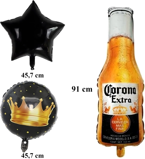 Ez a tematikus szett gyors és látványos dekorációt kínál az ikonikus Corona motívummal. A sörösüveg, a koronák és a fekete csillagok kombinációja feltűnő, modern megjelenést ad, amely jól illik felnőtt szülinapokhoz és kötetlen eseményekhez.