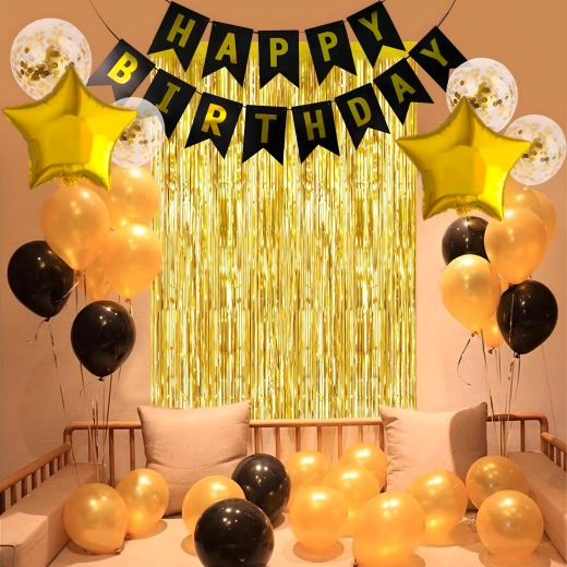 A modern fekete és arany kontraszt elegáns és ünnepélyes hatást kelt. A készletet egyszerű felfújásra és elrendezésre tervezték, így dekoratőri tapasztalat nélkül is professzionális eredményt érhet el.