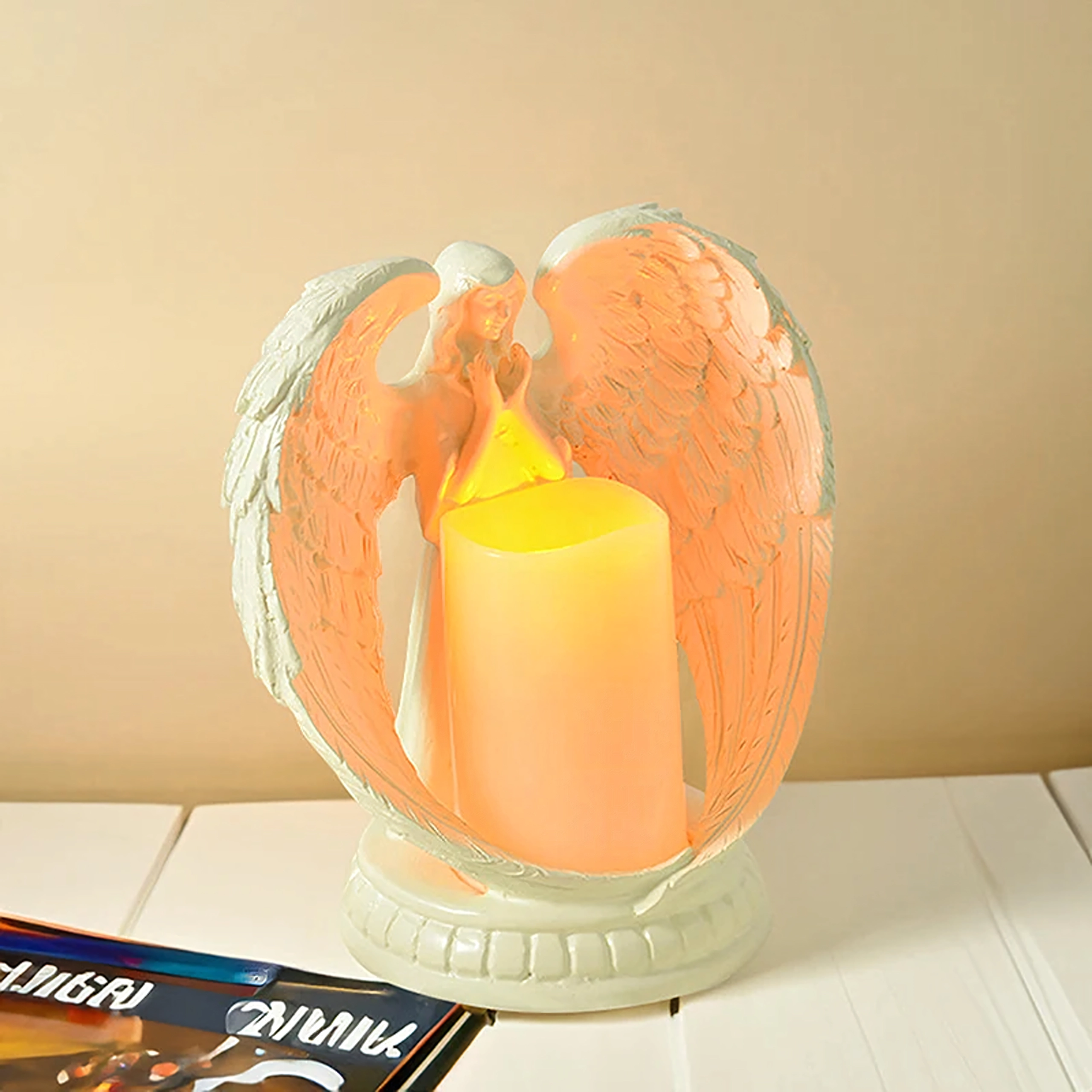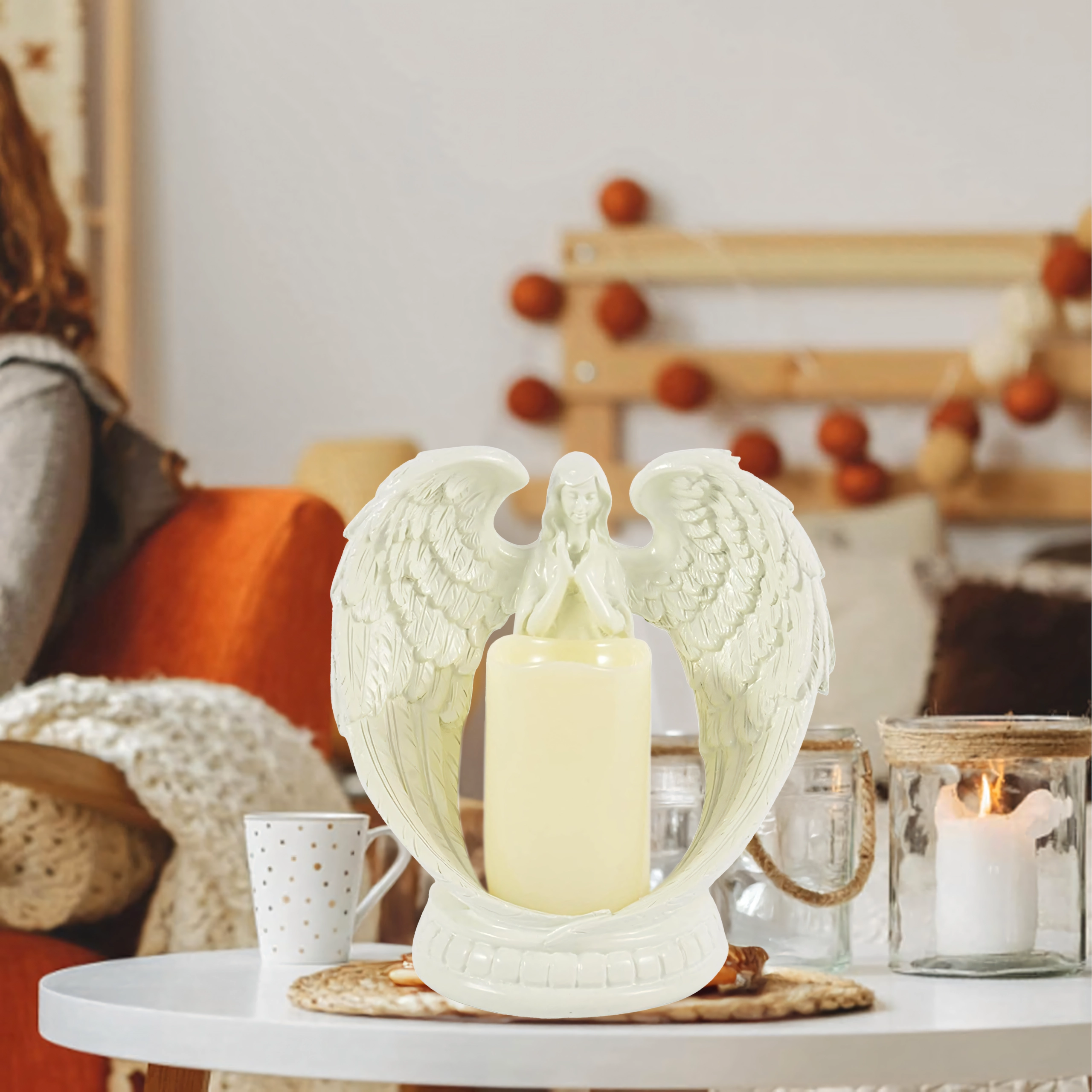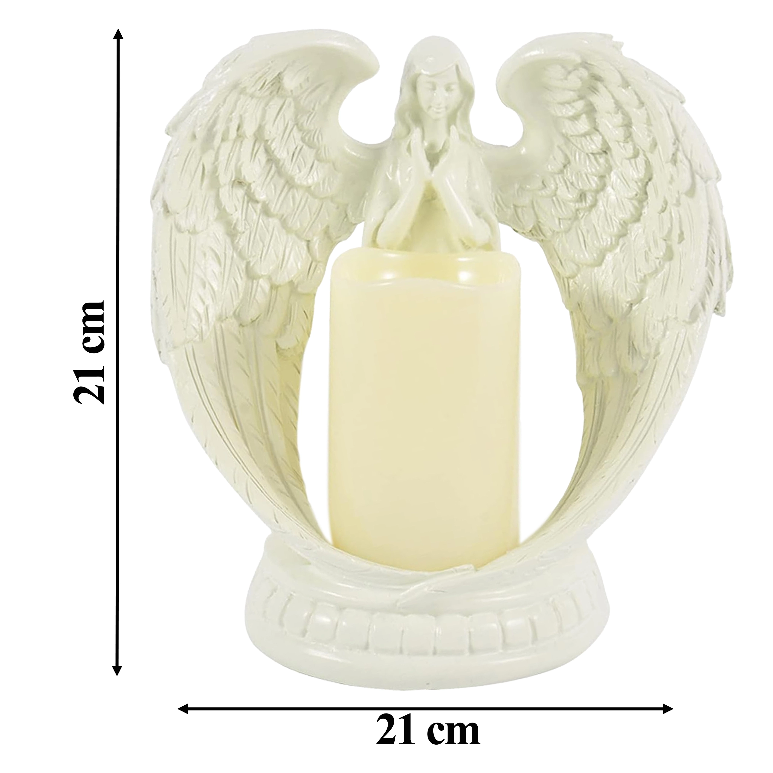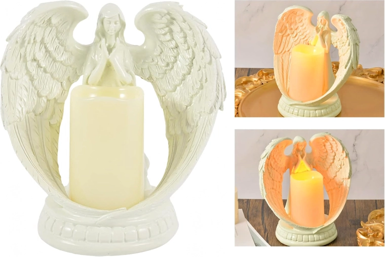 Dekoratív LED angyal gyertyával – figura és gyertyatartó, 21 cm