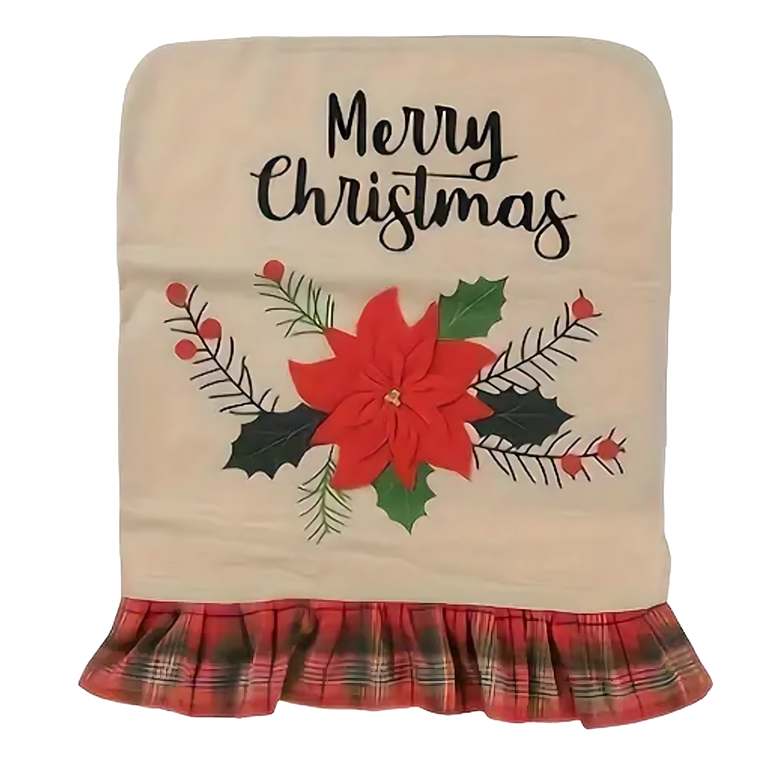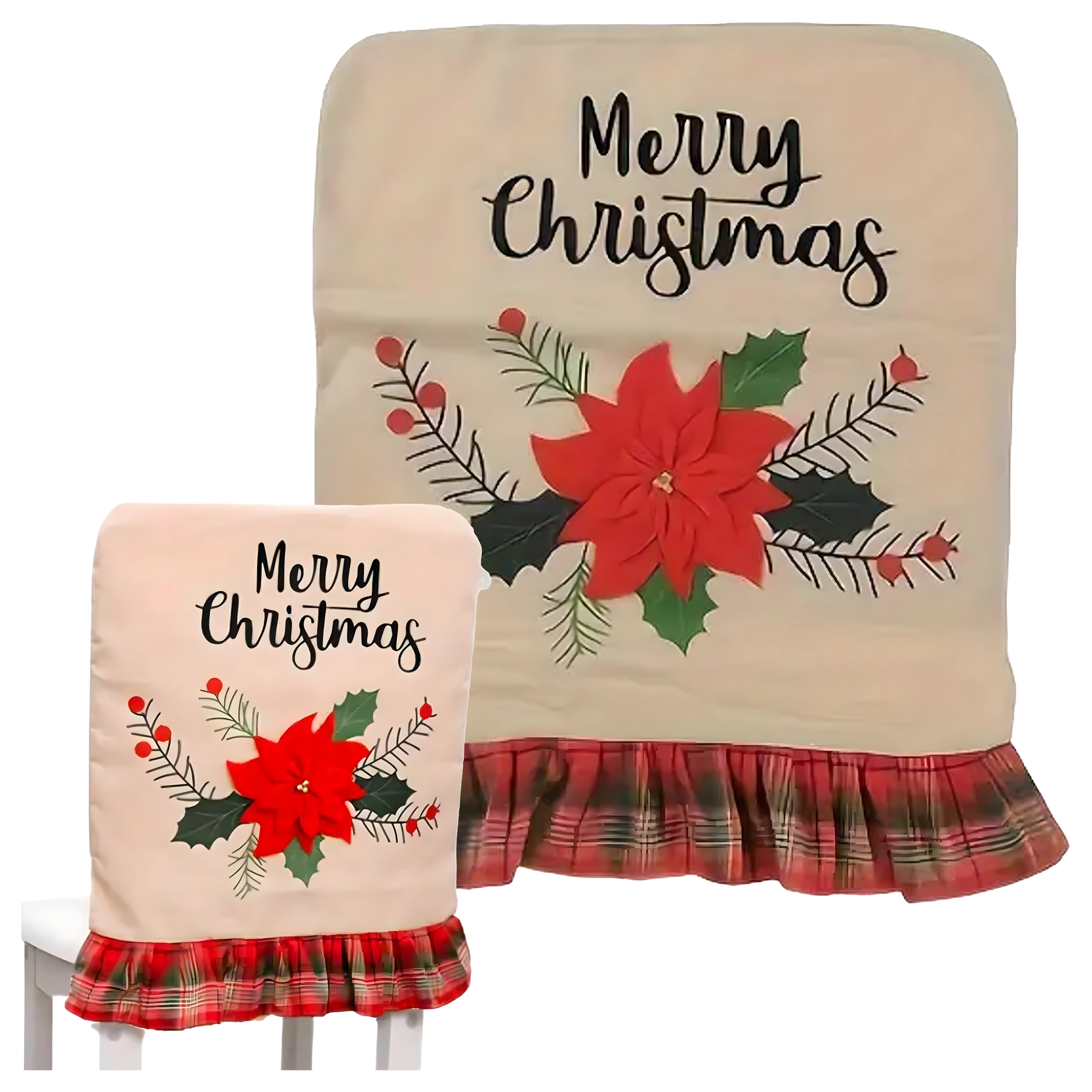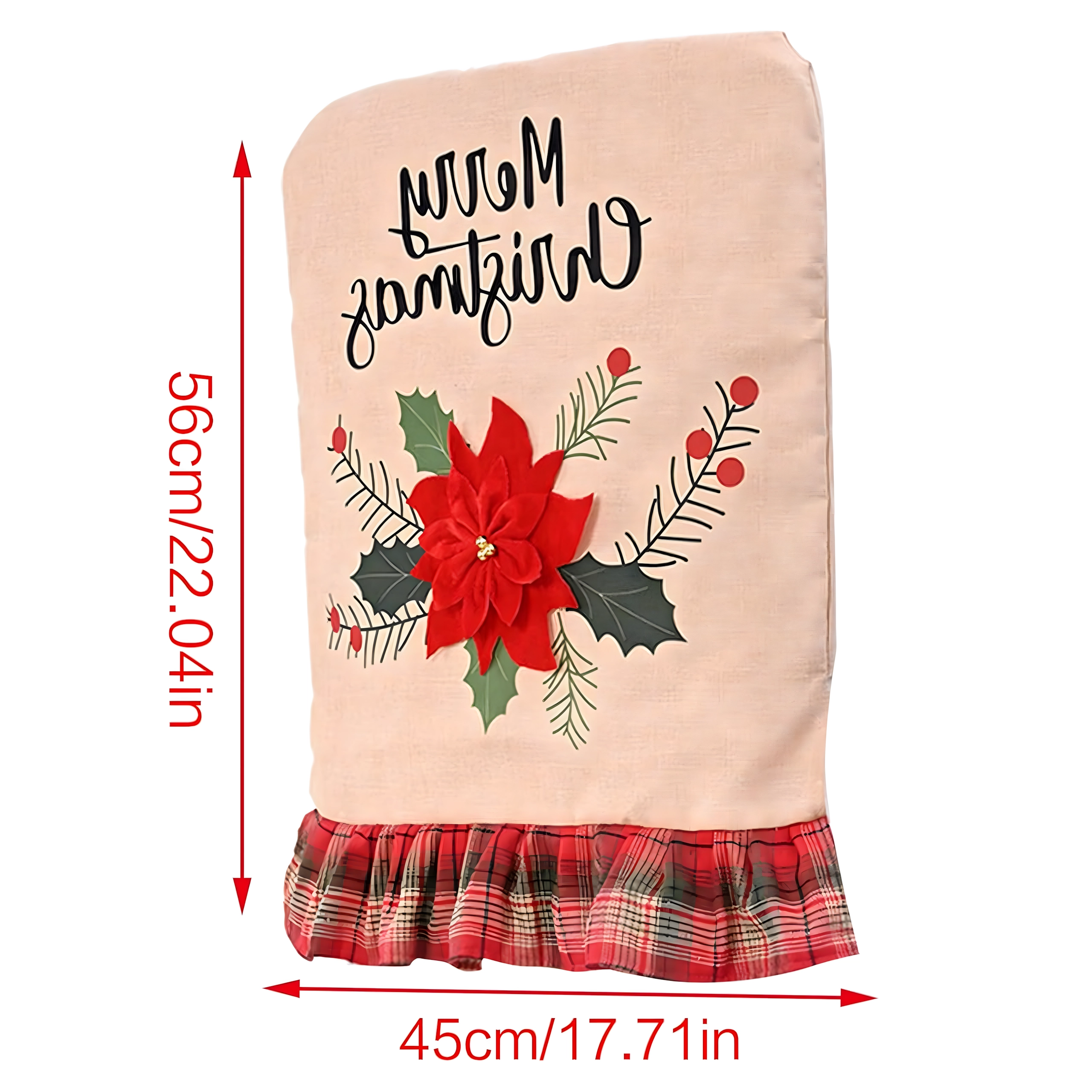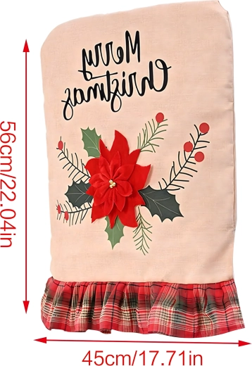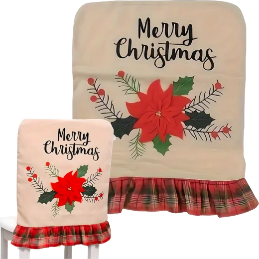 Varázsoljon pillanatok alatt karácsonyi hangulatot otthonába. Ez a karácsonyi széktámla- és ülőkehuzat erős textíliájával, rávarrt díszítő motívumával és univerzális szabásával tűnik ki, amely a legtöbb hagyományos székhez alkalmazkodik. Remekül kiegészíti az ünnepi terítéket és a szezonális lakásdekorációt.