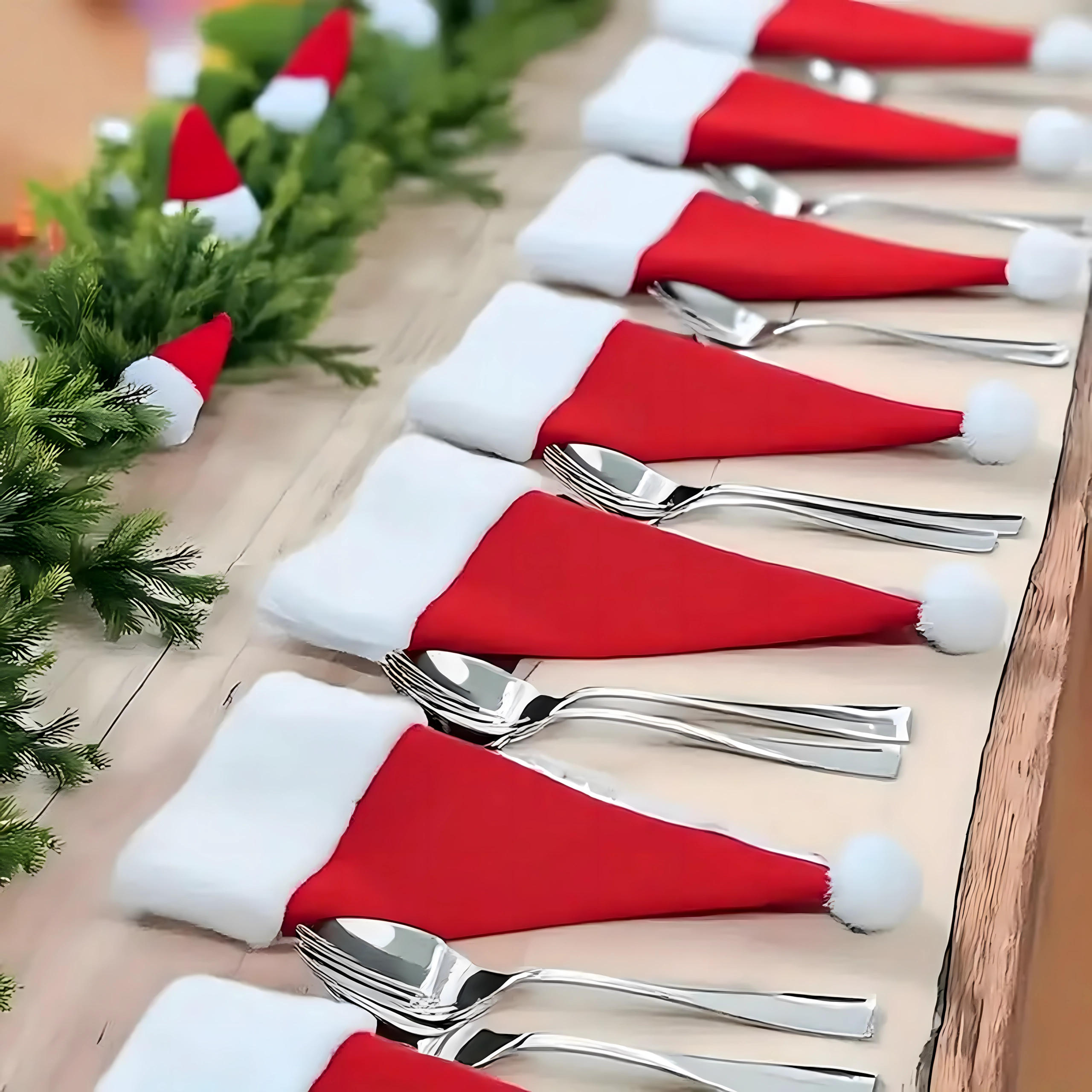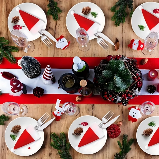 Teremts otthon ünnepi hangulatot a bájos SANTA sapkákkal, amelyek elegánsan rendszerezik az evőeszközöket, és egyben feldíszítik minden tányérod. A puha textil anyag kellemes tapintású, a zsebek tartósak és könnyen karbantarthatók mosással.