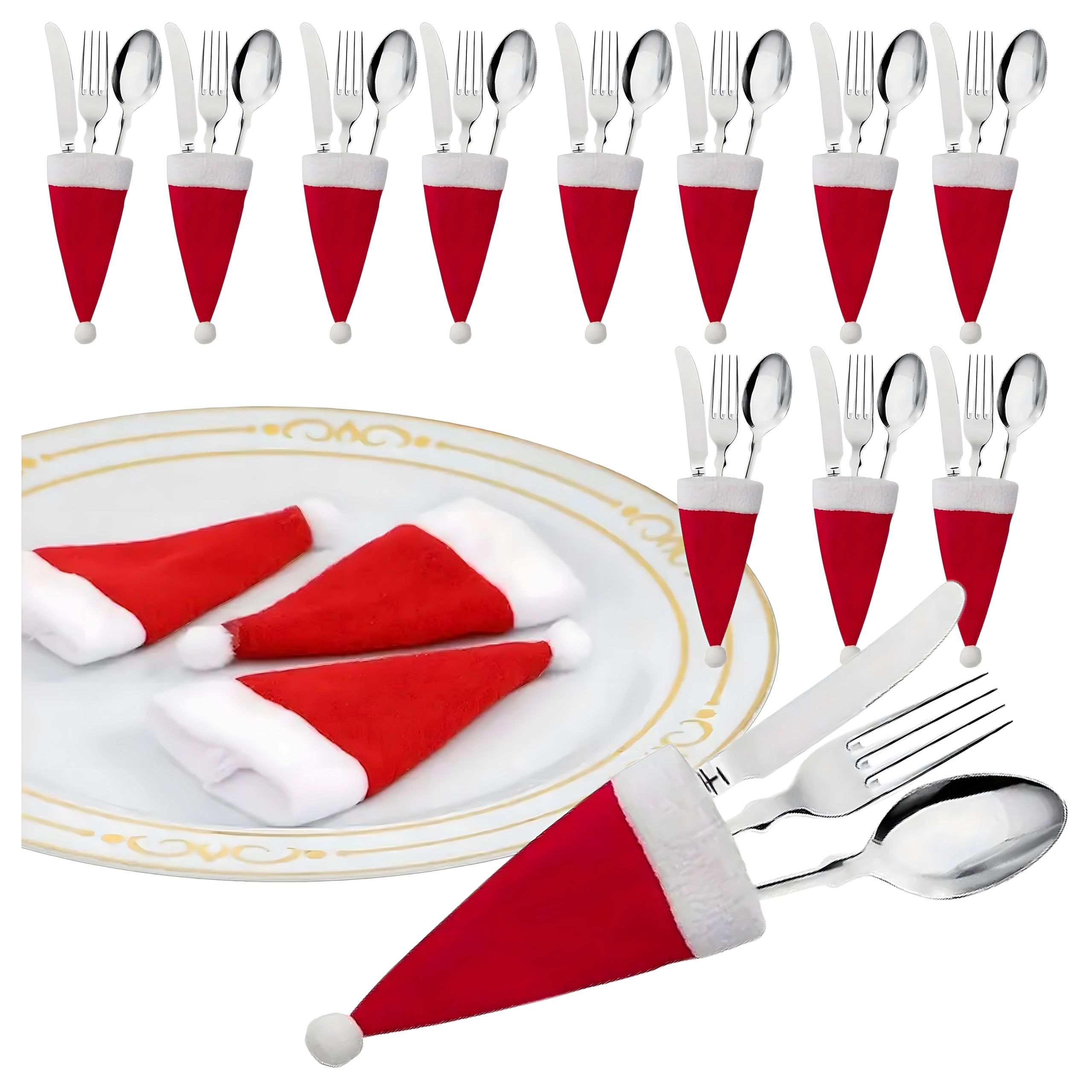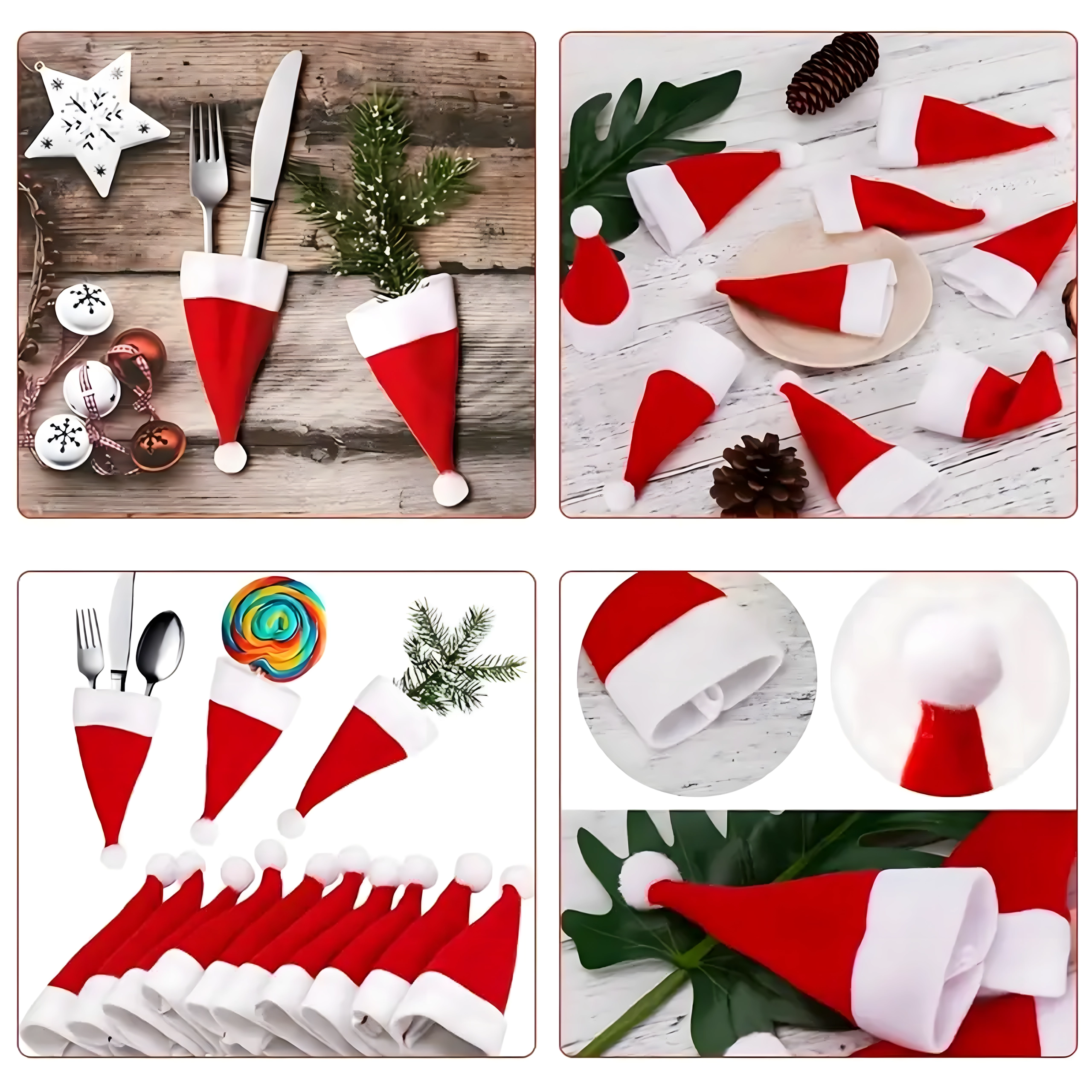 Kompakt méretüknek és univerzális formájuknak köszönhetően nemcsak a villa, kés és kanál számára ideálisak, hanem játékos huzatként palacknyakra vagy kis karácsonyi dekorációként is használhatók. Tökéletes családi vacsorákhoz, bulikhoz és ünnepi cateringhez.