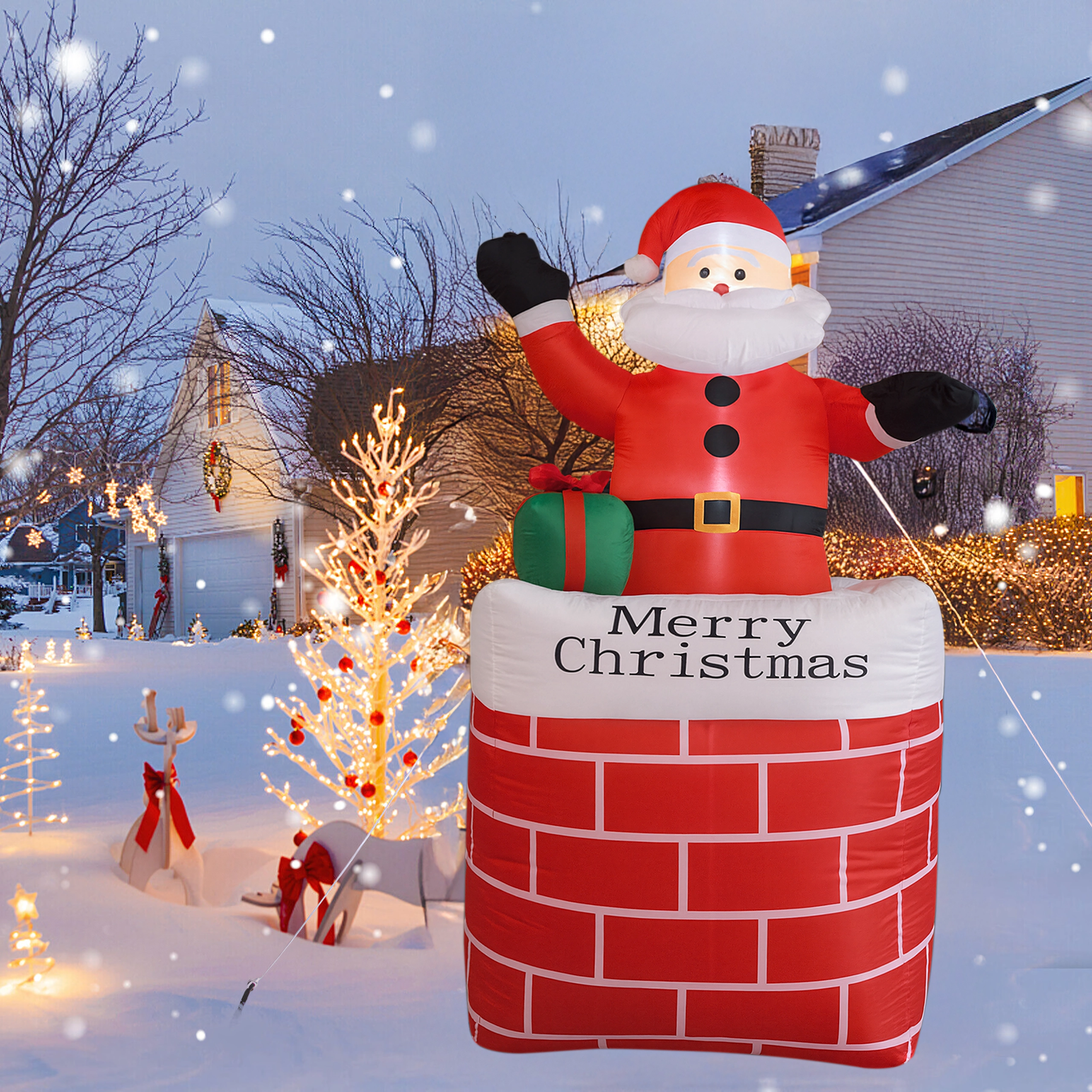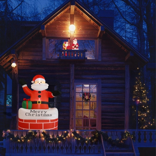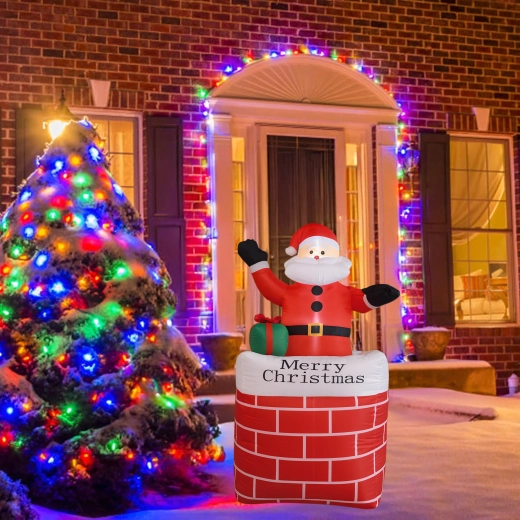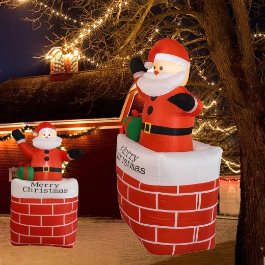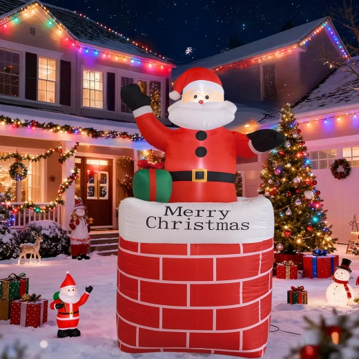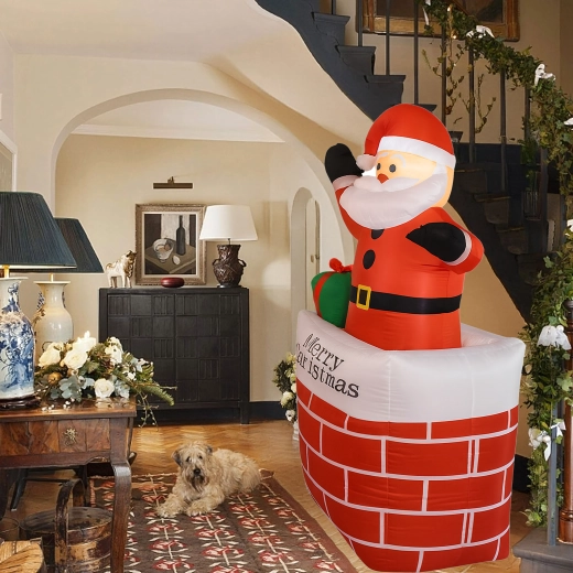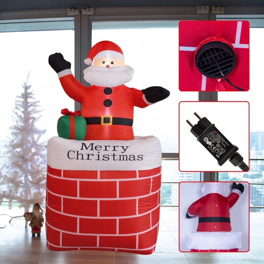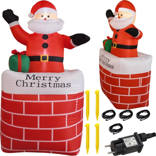 A kéményben lévő felfújható Mikulás stílusos karácsonyi dekoráció, amely azonnal ünnepi varázst kölcsönöz a térnek. A beépített LED világítás sötétedés után is látványos hatást nyújt, az automatikus felfújás pedig megkönnyíti a gyors, erőfeszítés nélküli telepítést.