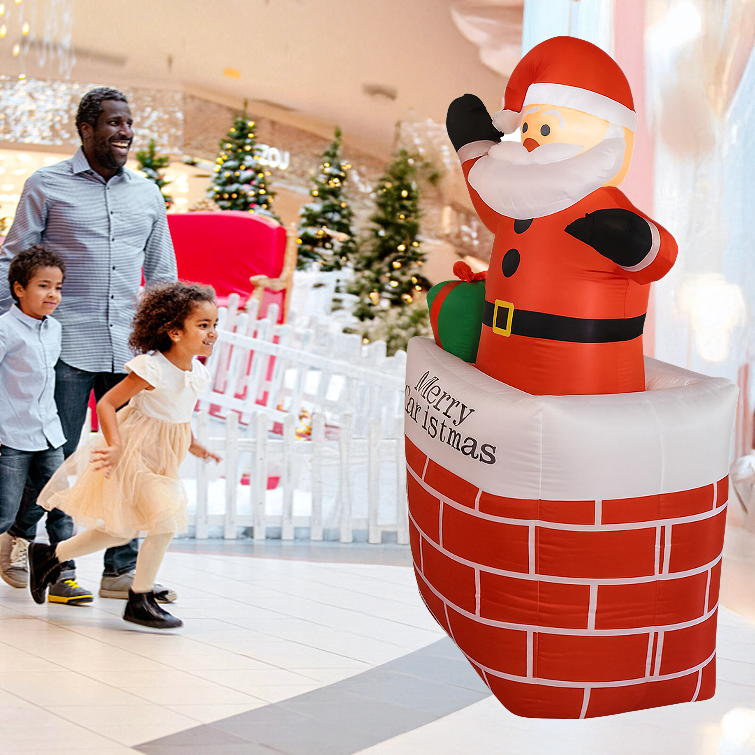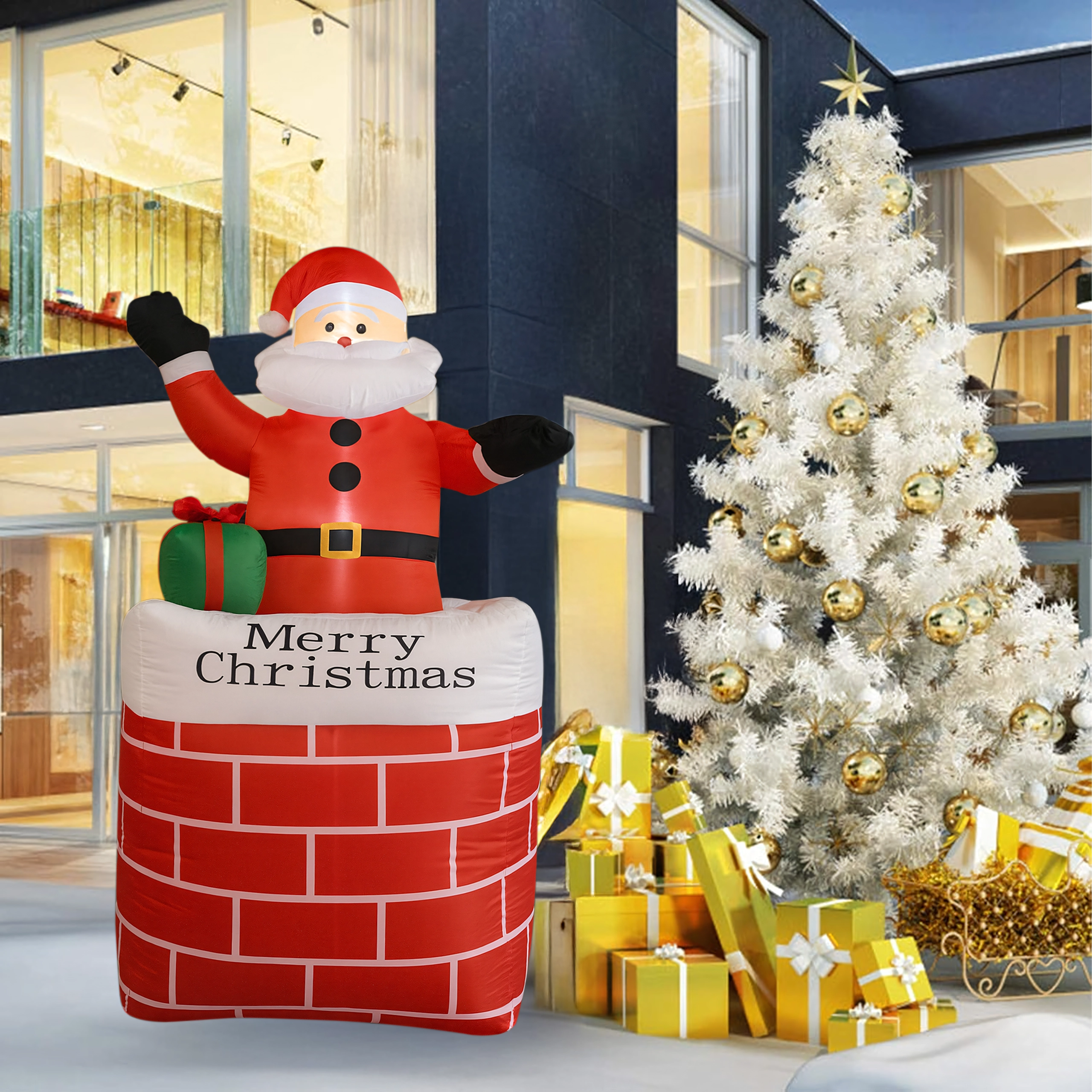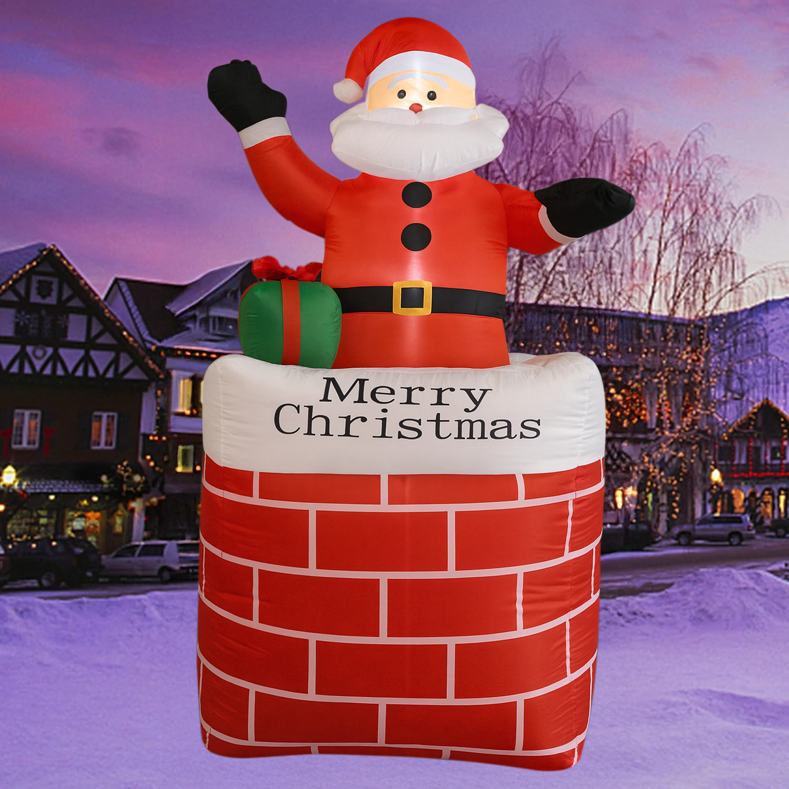 A kéményben lévő felfújható Mikulás stílusos karácsonyi dekoráció, amely azonnal ünnepi varázst kölcsönöz a térnek. A beépített LED világítás sötétedés után is látványos hatást nyújt, az automatikus felfújás pedig megkönnyíti a gyors, erőfeszítés nélküli telepítést.