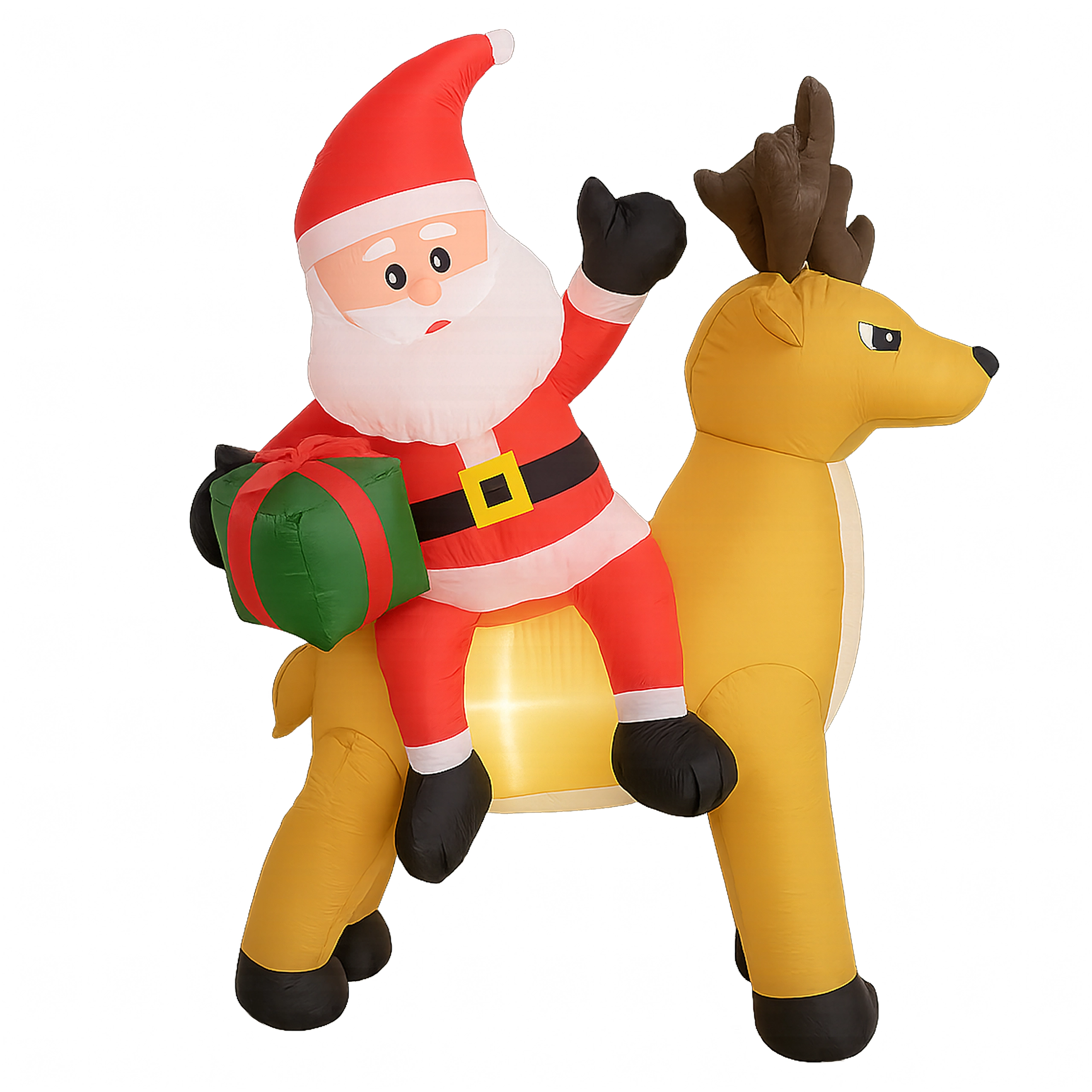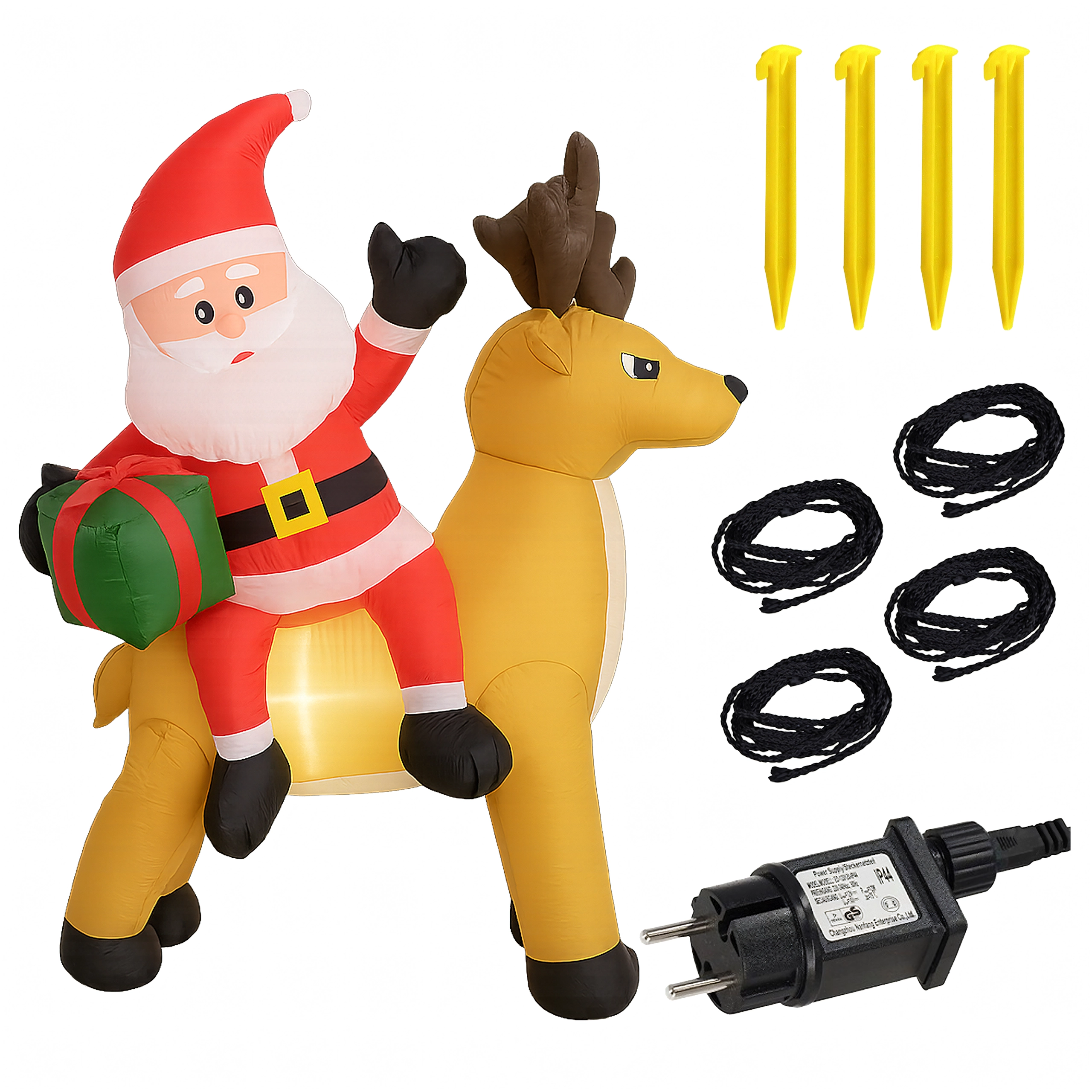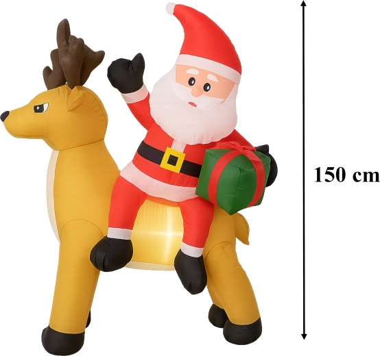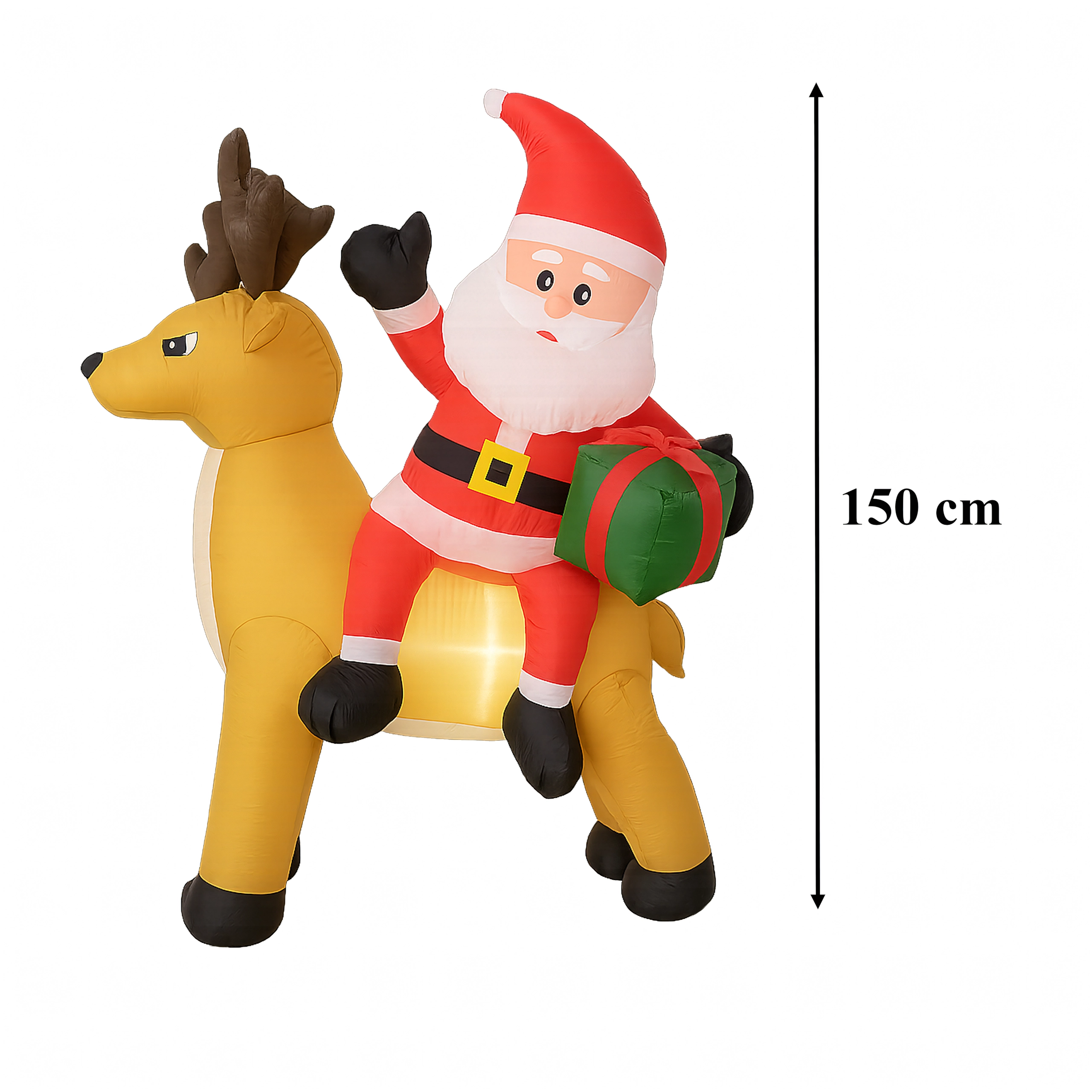 Stílusos karácsonyi dísz, amely felkelti a gyerekek és felnőttek figyelmét. A felfújható Mikulás rénszarvassal lenyűgöző látványt teremt a bejáratnál, a kertben vagy a nappaliban. A LED világítás gyönyörű hatást biztosít sötétedés után, míg a csendes automatikus ventilátor néhány percen belül felfújja.
