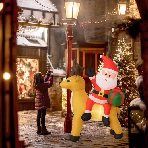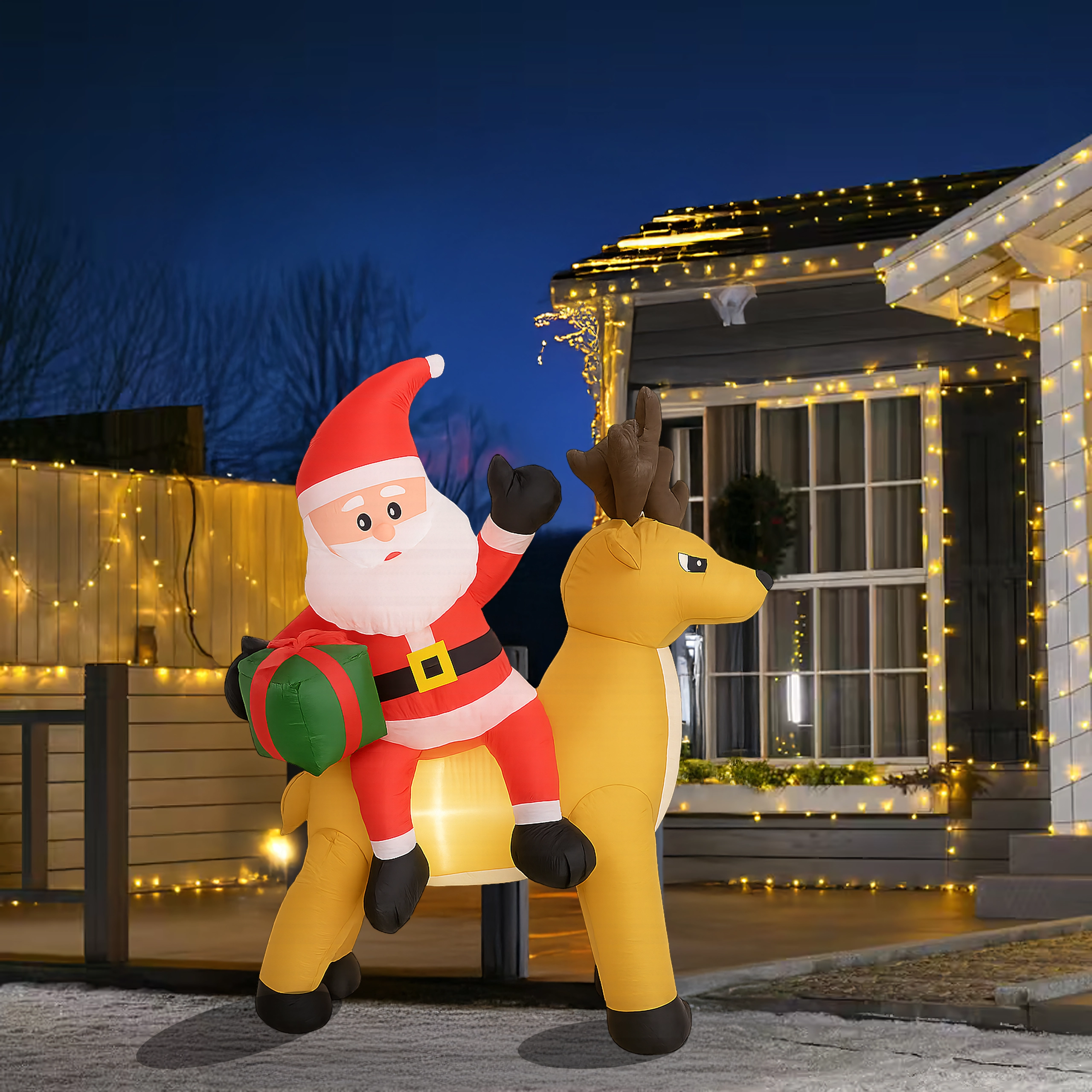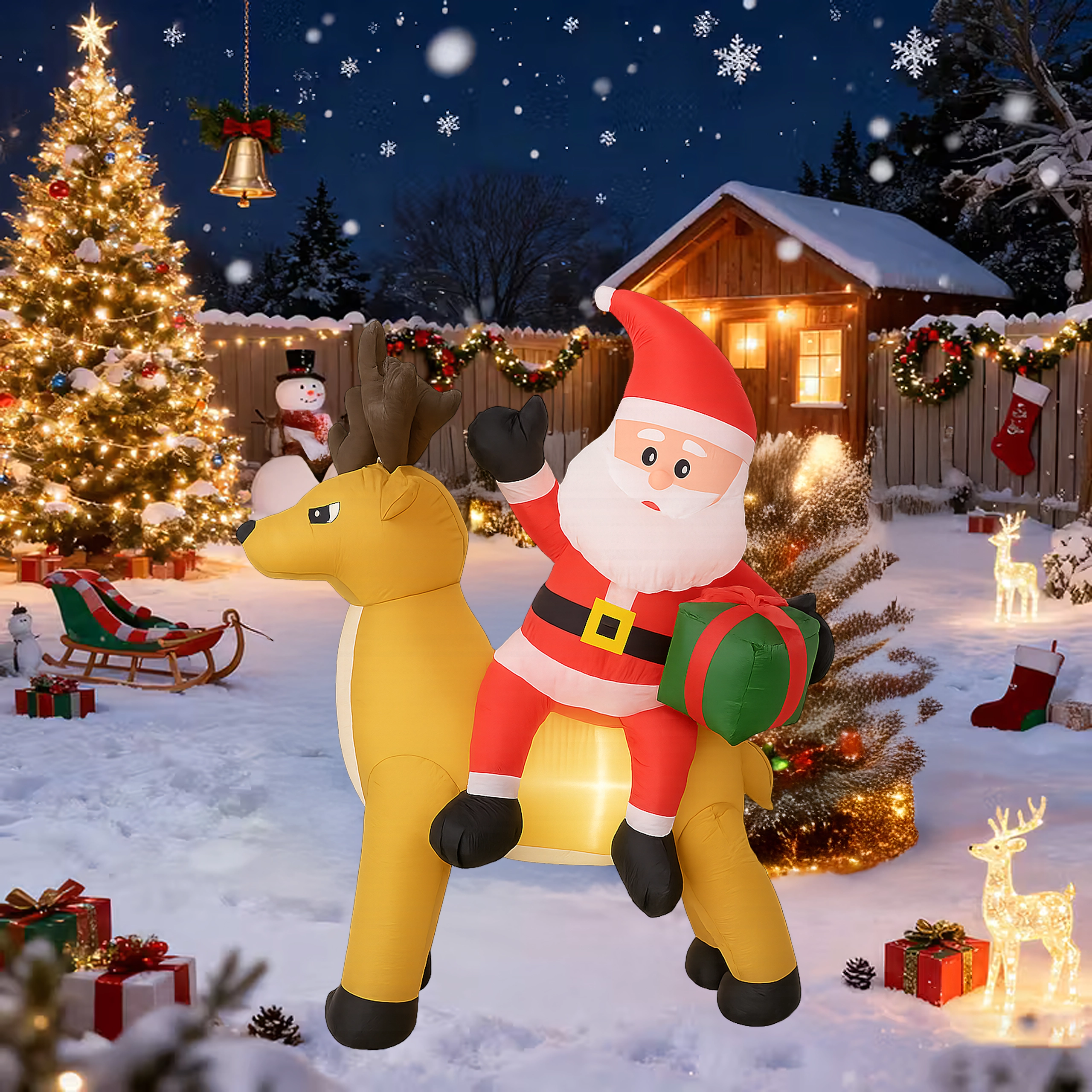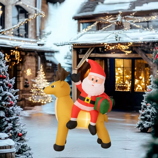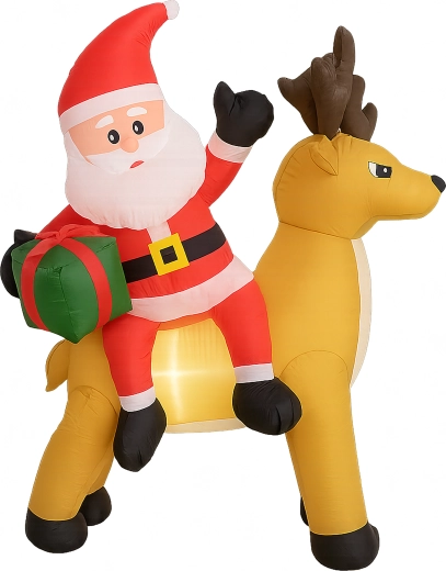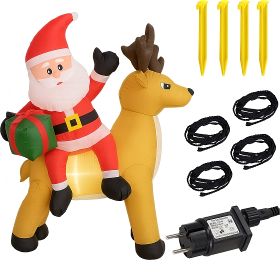 Stílusos karácsonyi dísz, amely felkelti a gyerekek és felnőttek figyelmét. A felfújható Mikulás rénszarvassal lenyűgöző látványt teremt a bejáratnál, a kertben vagy a nappaliban. A LED világítás gyönyörű hatást biztosít sötétedés után, míg a csendes automatikus ventilátor néhány percen belül felfújja.