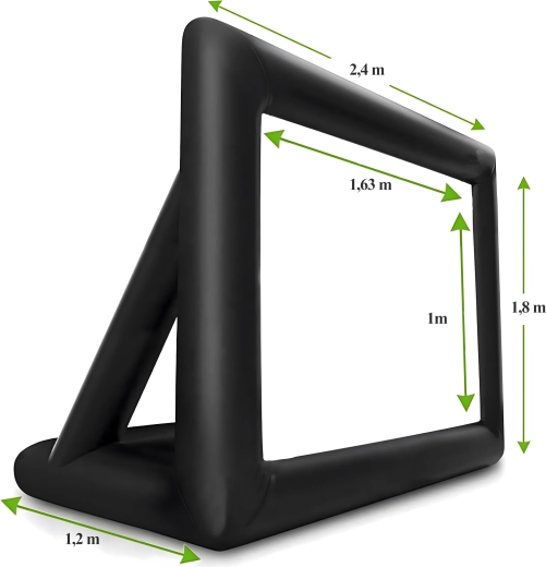 Fedezze fel a vetítés szabadságát bárhol – a kertben, a teraszon vagy a parkban. A mellékelt ventilátorral ellátott felfújható vetítővászon könnyen felállítható, stabilan áll, és nagy vetítési felületet biztosít filmekhez, sportközvetítésekhez vagy céges prezentációkhoz. Az elülső és hátsó vetítés lehetőségének köszönhetően rugalmasan helyezheti el a projektort.
