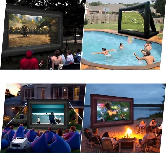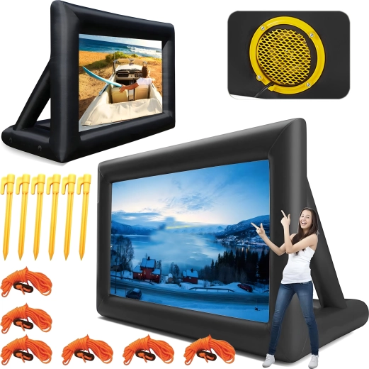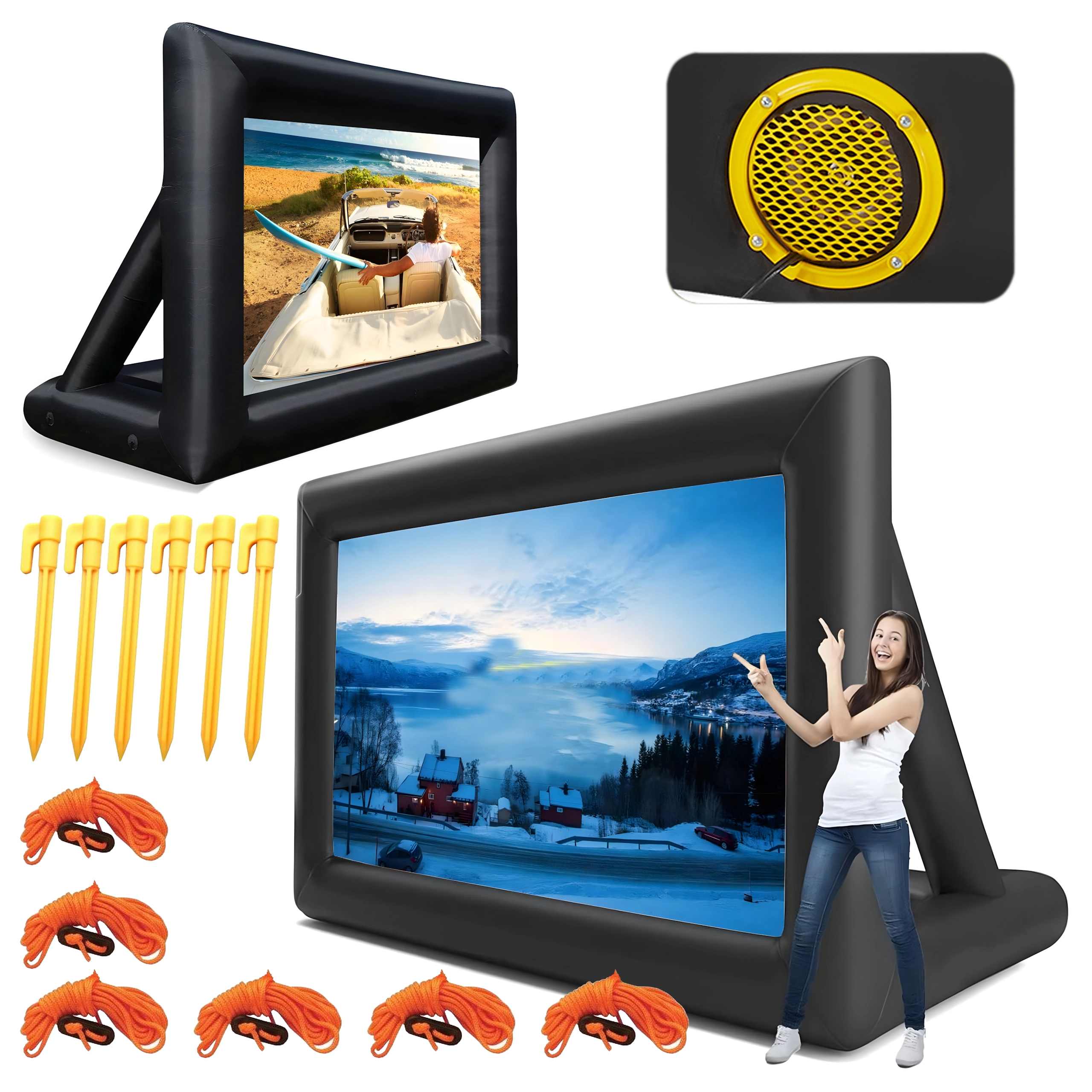 Élvezze a filmestéket a szabad ég alatt ezzel a nagy felfújható vetítővászonnal. Ideális kültéri mozihoz, bulikhoz, prezentációkhoz és nyilvános rendezvényekhez. Kínál elülső és hátsó vetítést, gyors és egyszerű telepítést, és tartós anyagokból készült a hosszú élettartam és a kényelmes szállítás érdekében.
