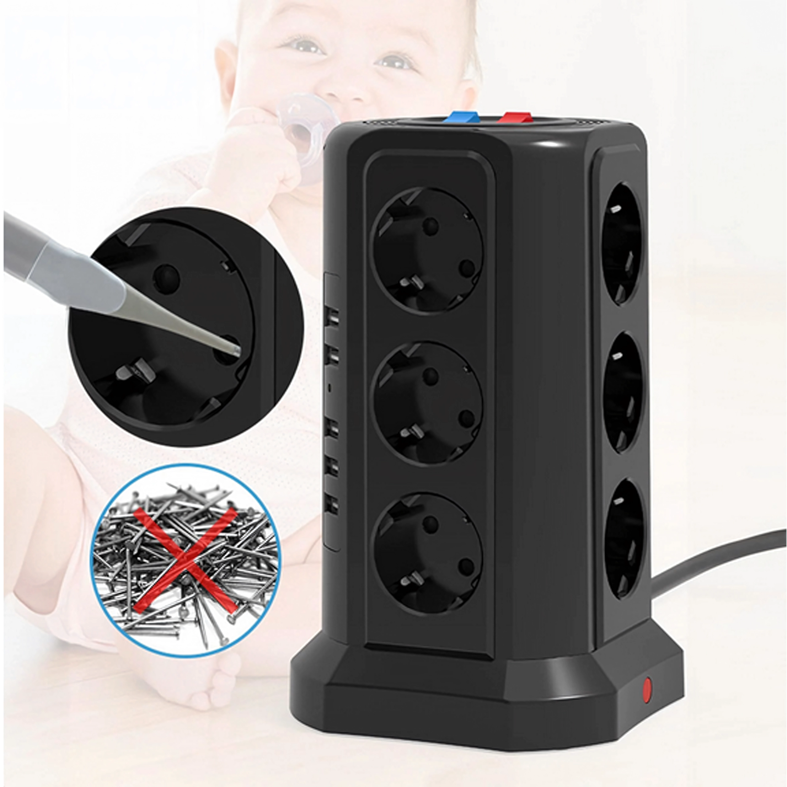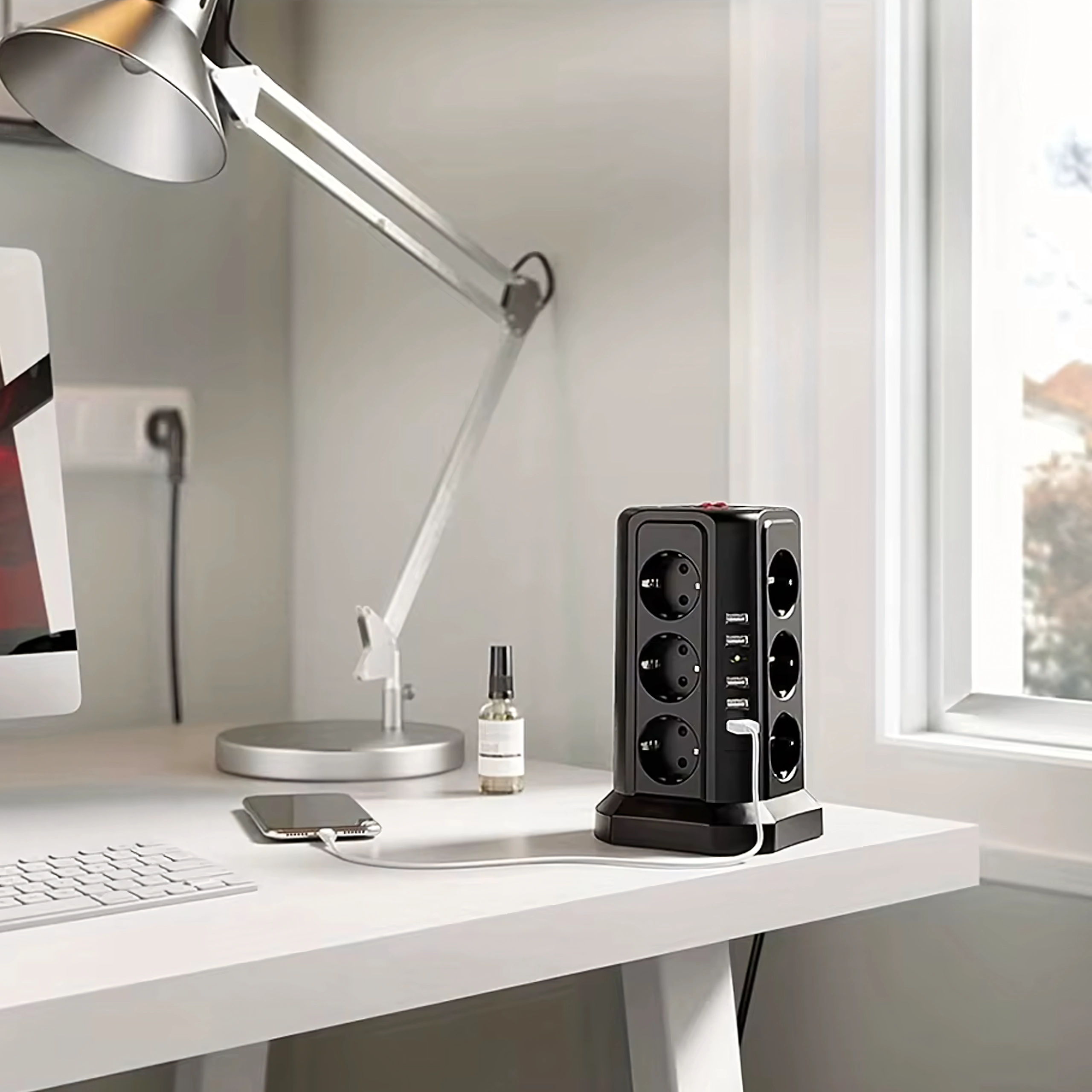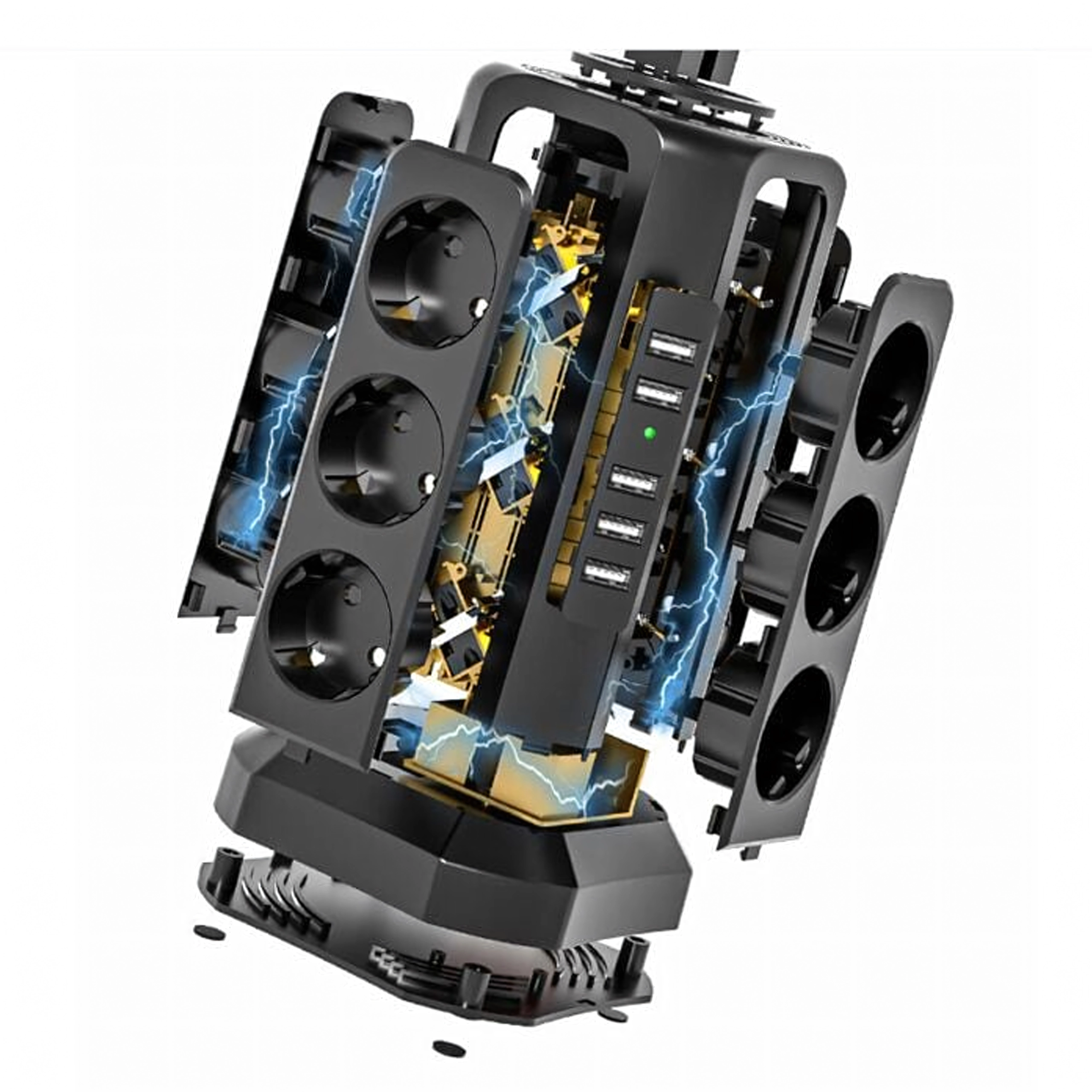 Ez az álló elosztó a nagy csatlakozási kapacitást és a biztonságot ötvözi. A vertikális kialakítás helyet takarít meg az asztalon és a padlón, és könnyű hozzáférést biztosít minden aljzathoz és USB porthoz. A túlfeszültség (védelmi) védelem megóvja az érzékeny elektronikát a hirtelen feszültségcsúcsoktól.